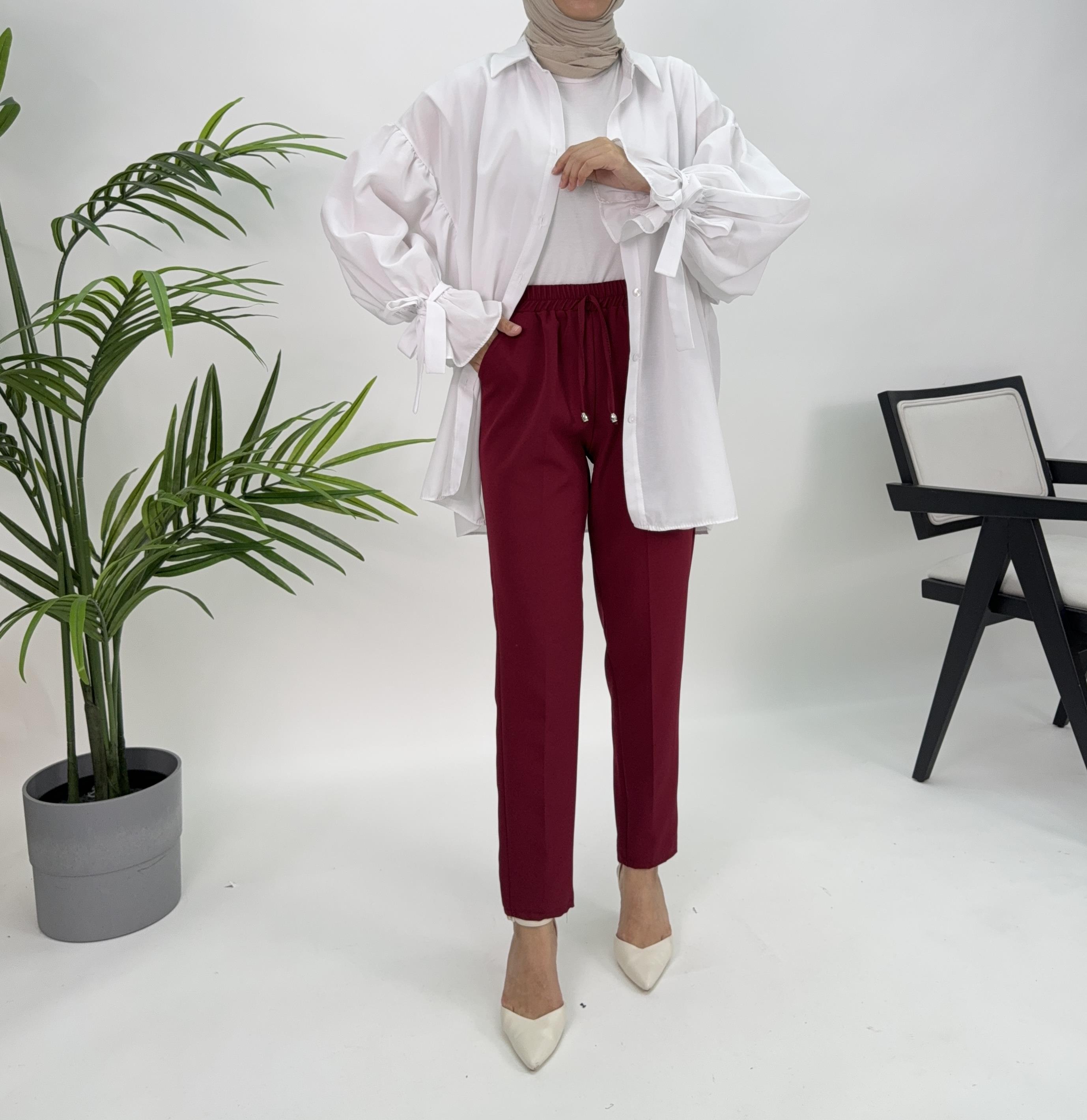 01631 G96+BELİ LASTİKLİ DABIL KUMAŞ HAVUÇ KESİM PANTOLON BORDO (001631)