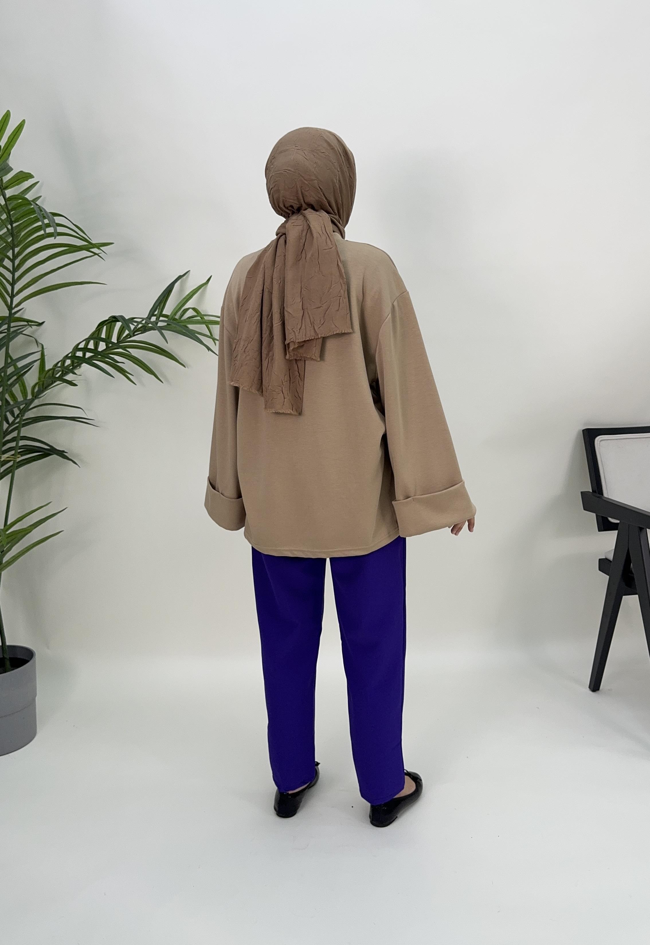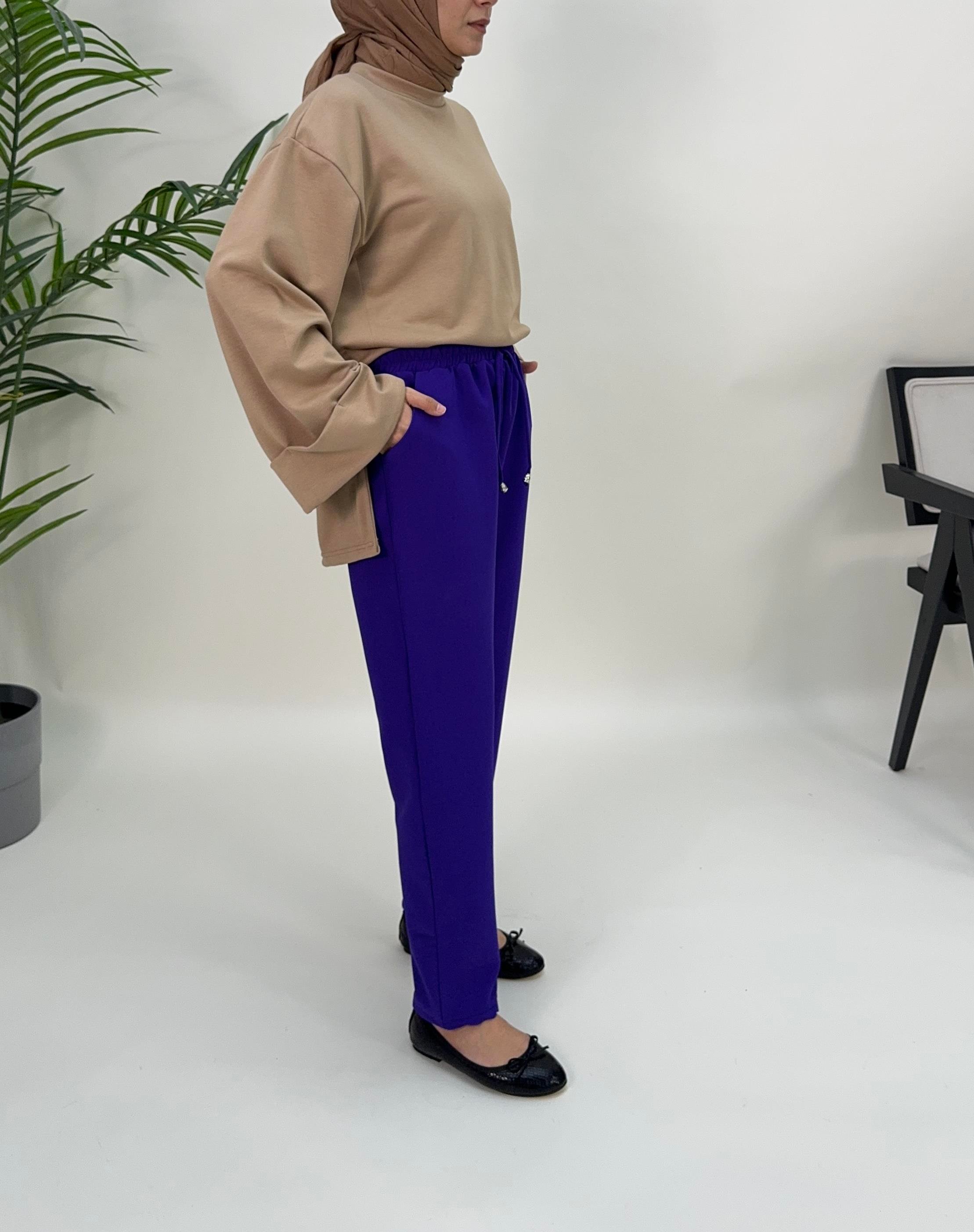 BELİ LASTİKLİ DABIL KUMAŞ HAVUÇ KESİM PANTOLON