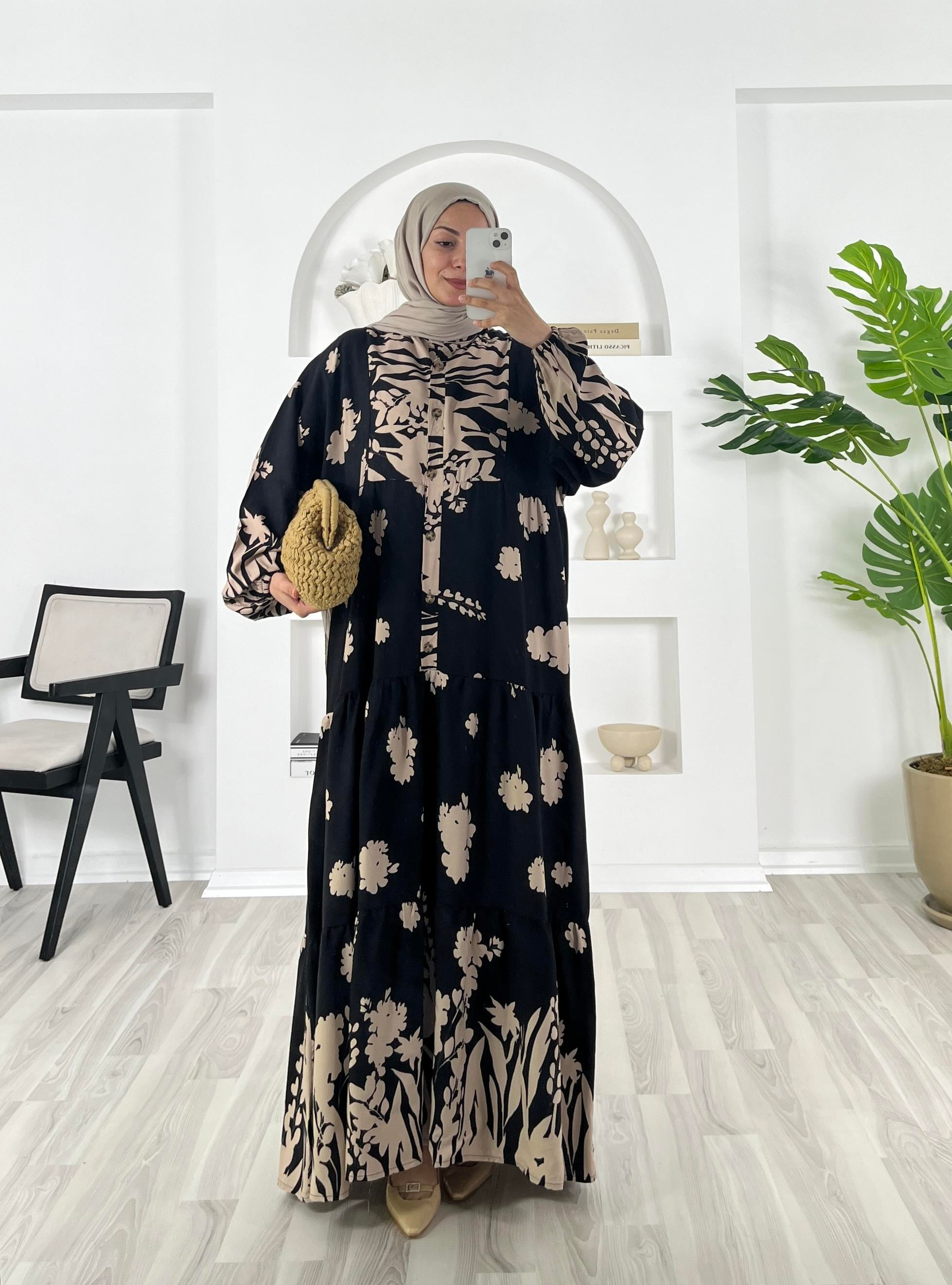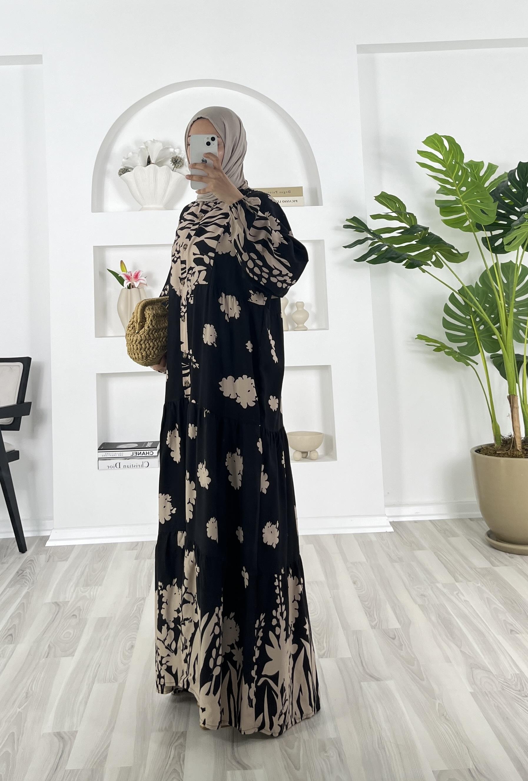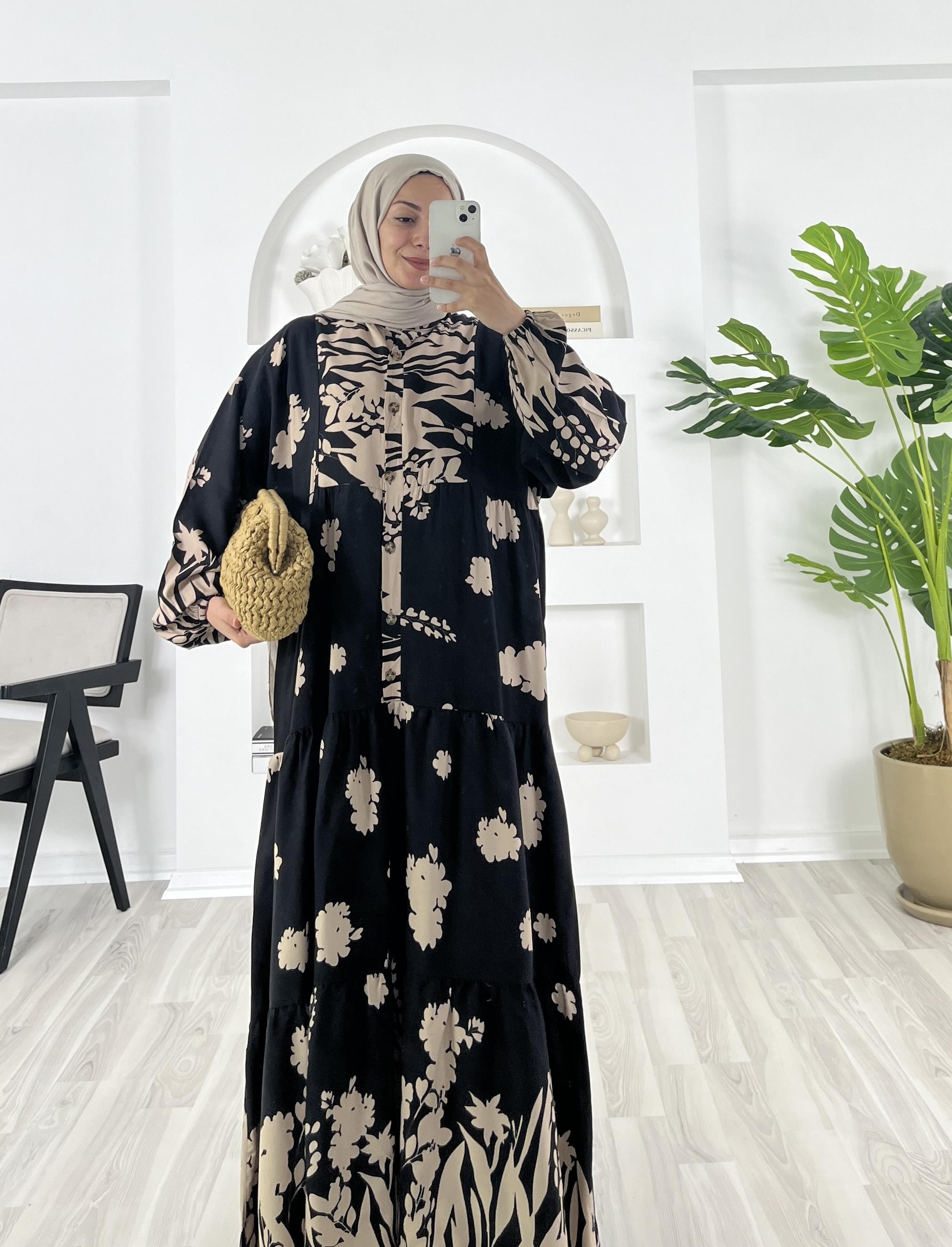 dügmeli kolları lastikli elbise