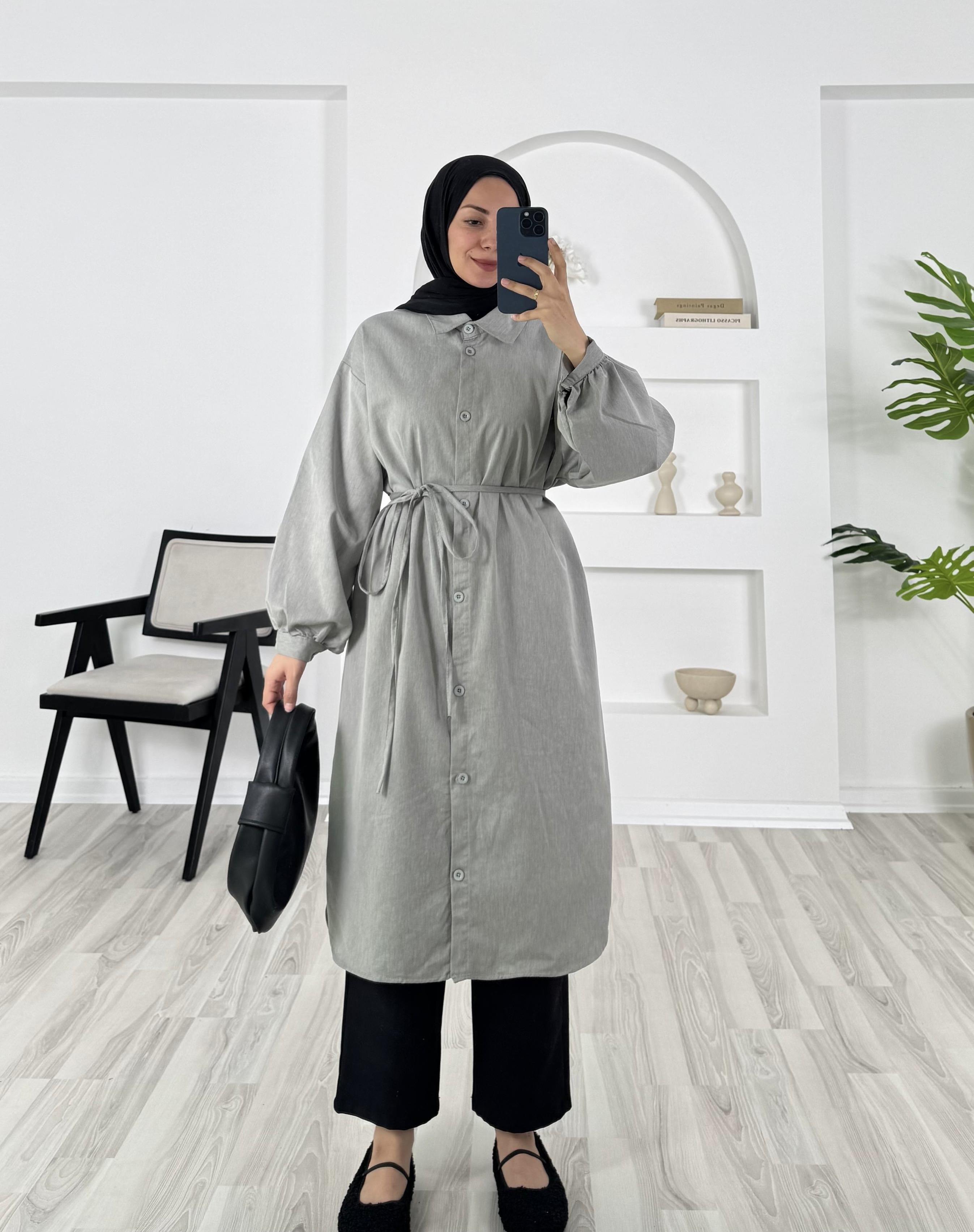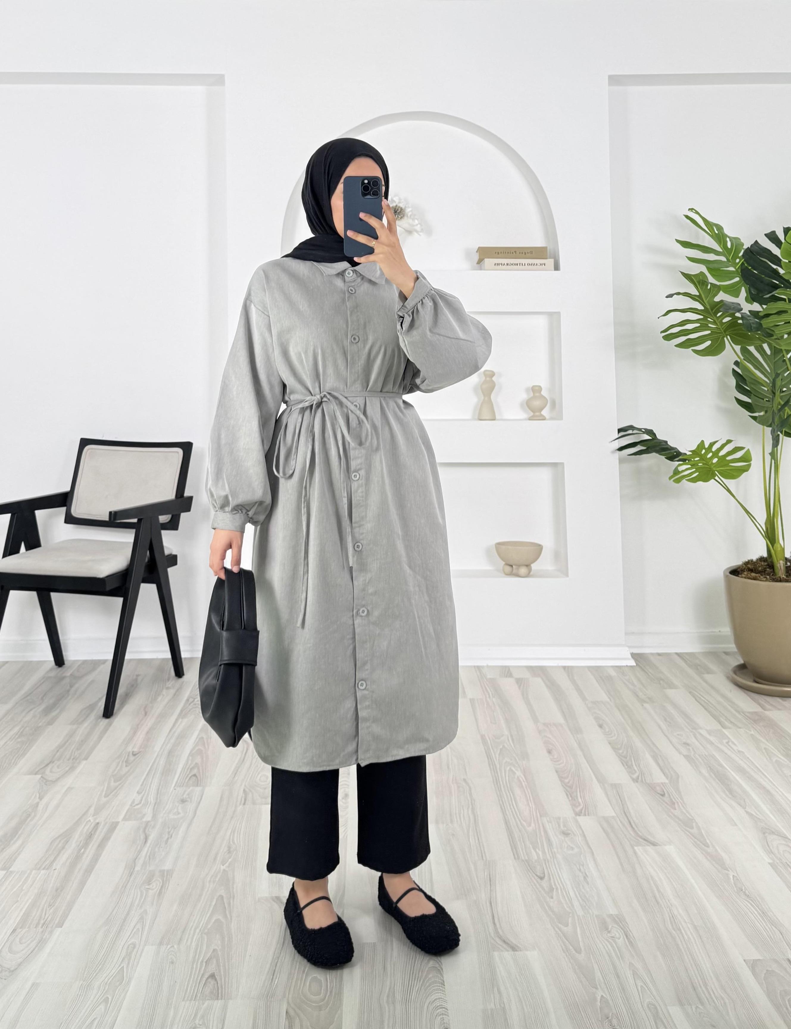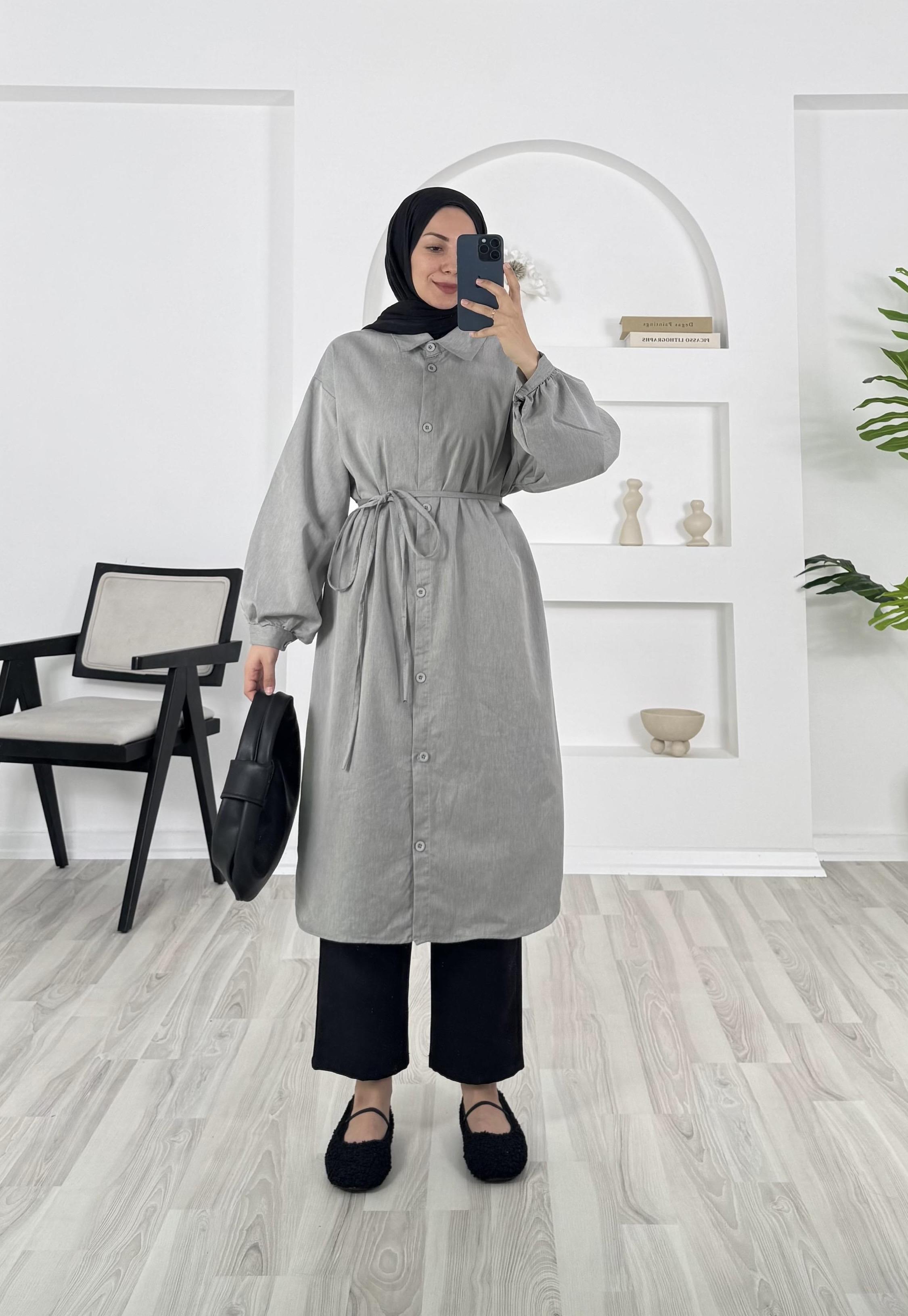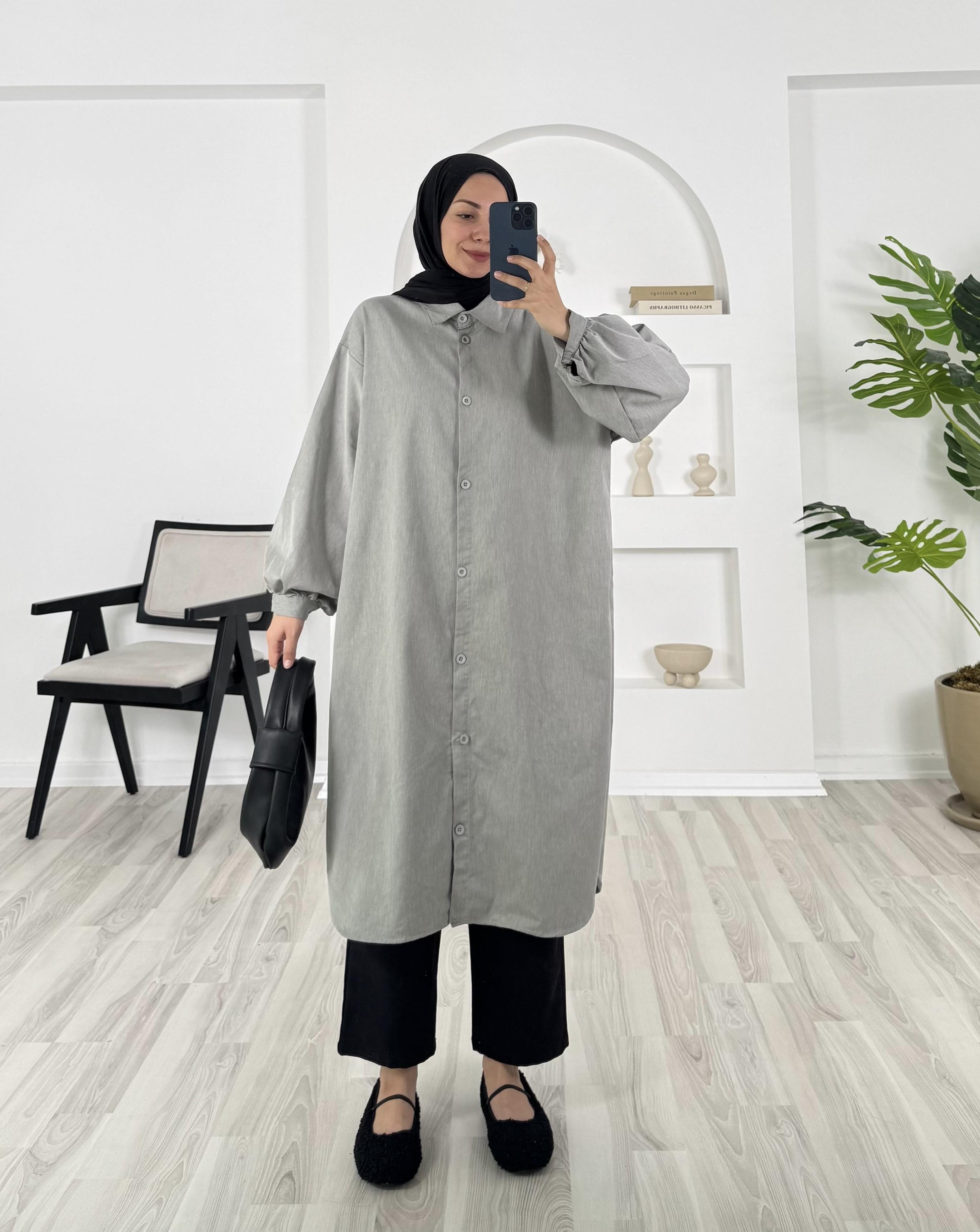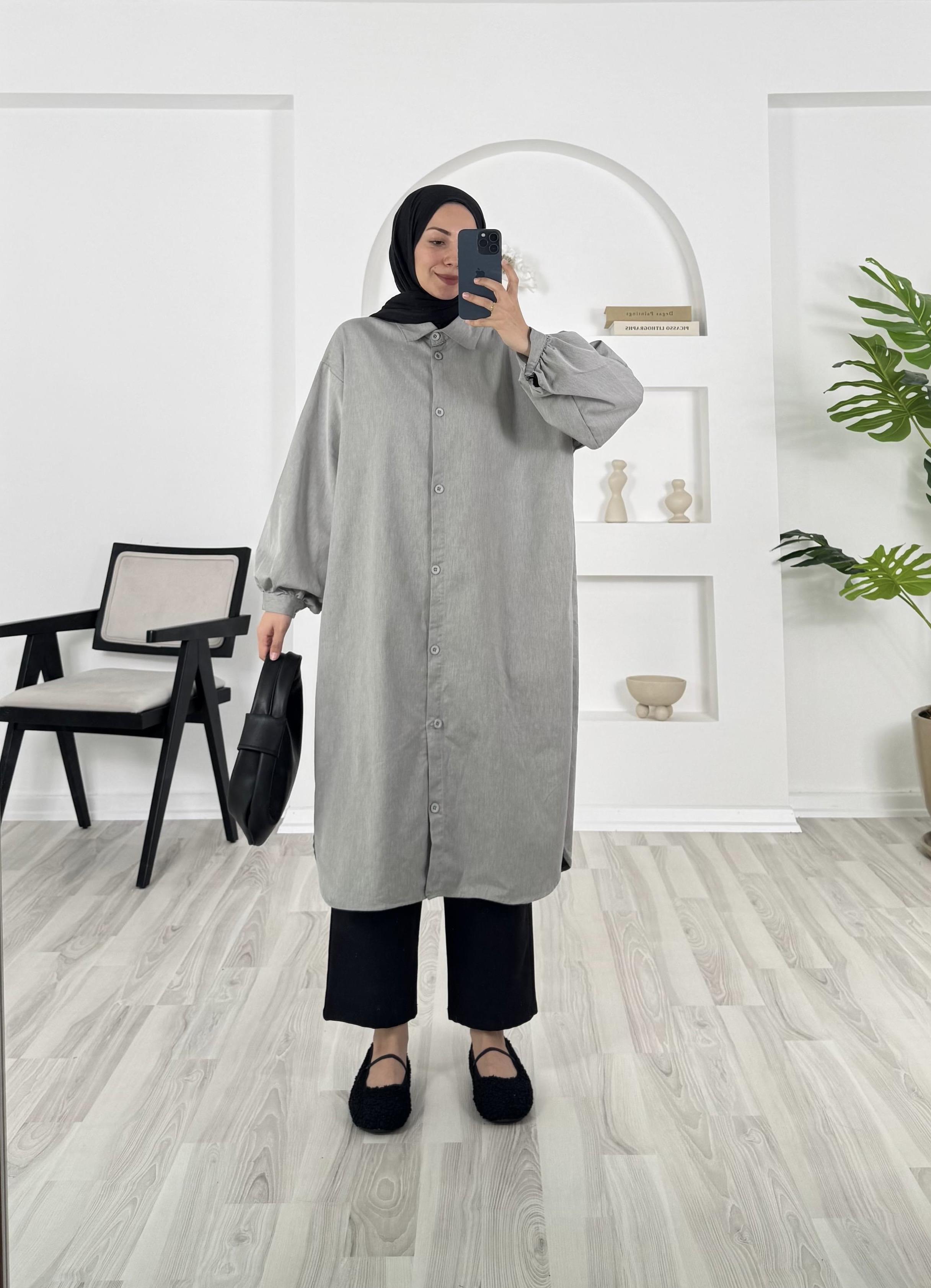 0279 - kot kumaş yanları yırtmaçlı gömlek -gri (0279)