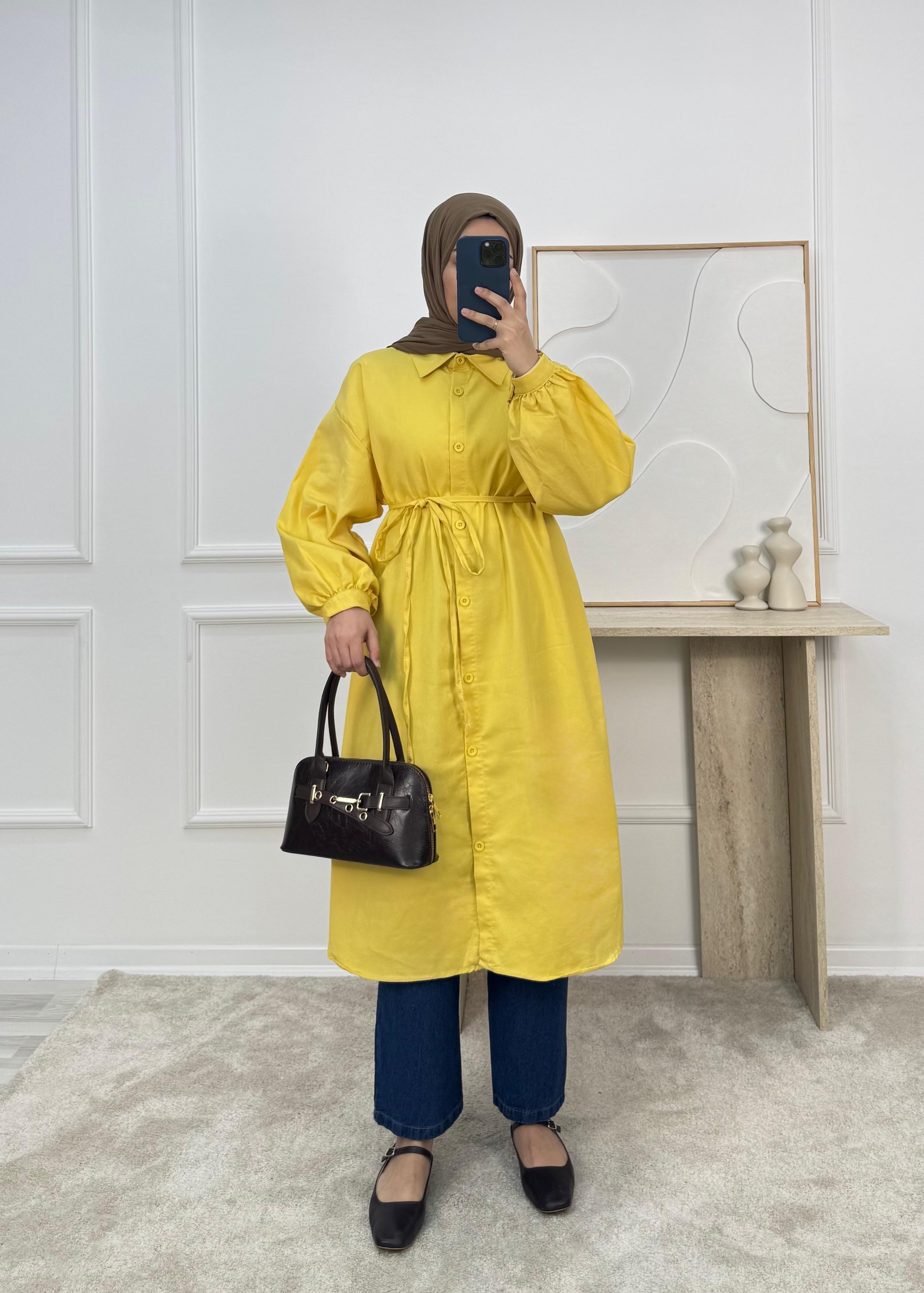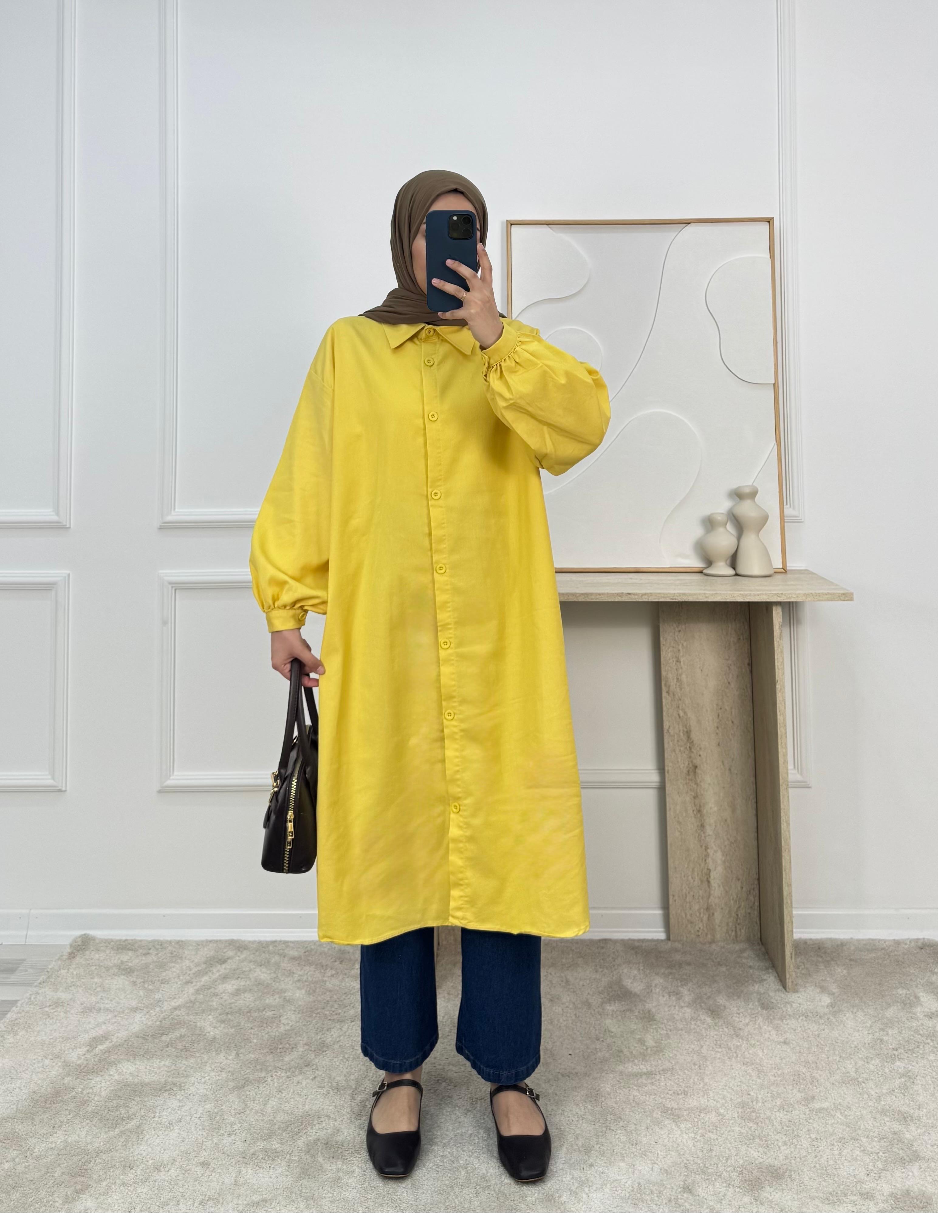 0279 - kot kumaş yanları yırtmaçlı gömlek sarı (0279)