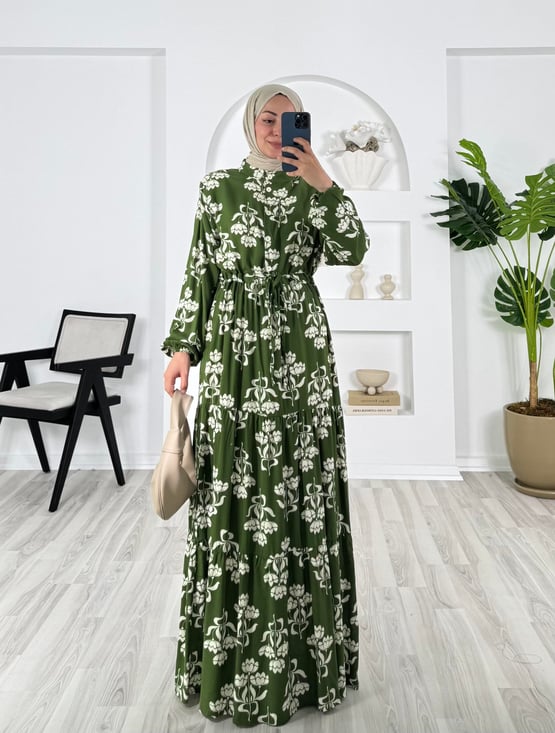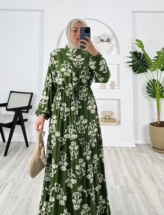 çiçek desenli belden büzülebilir elbise