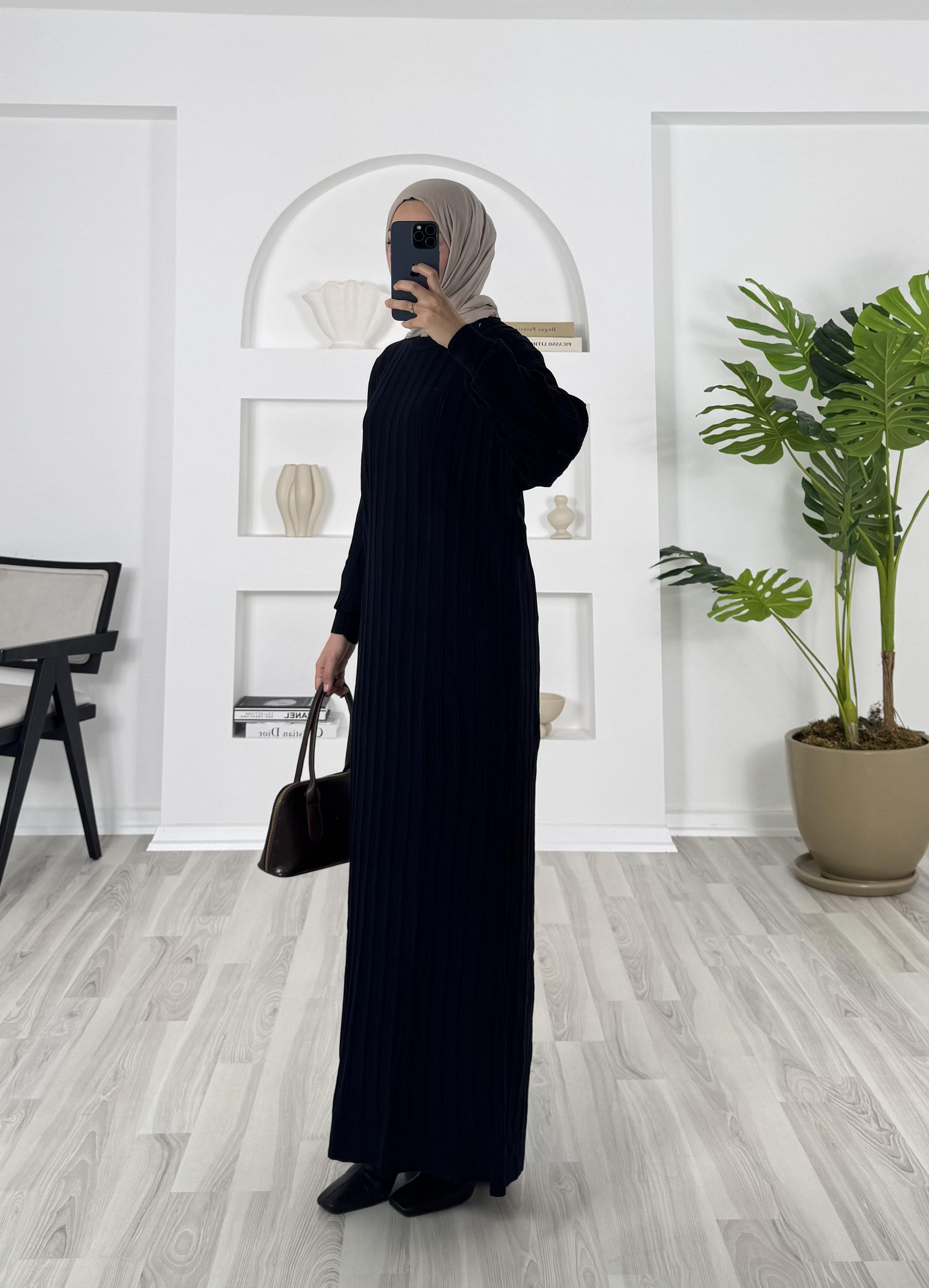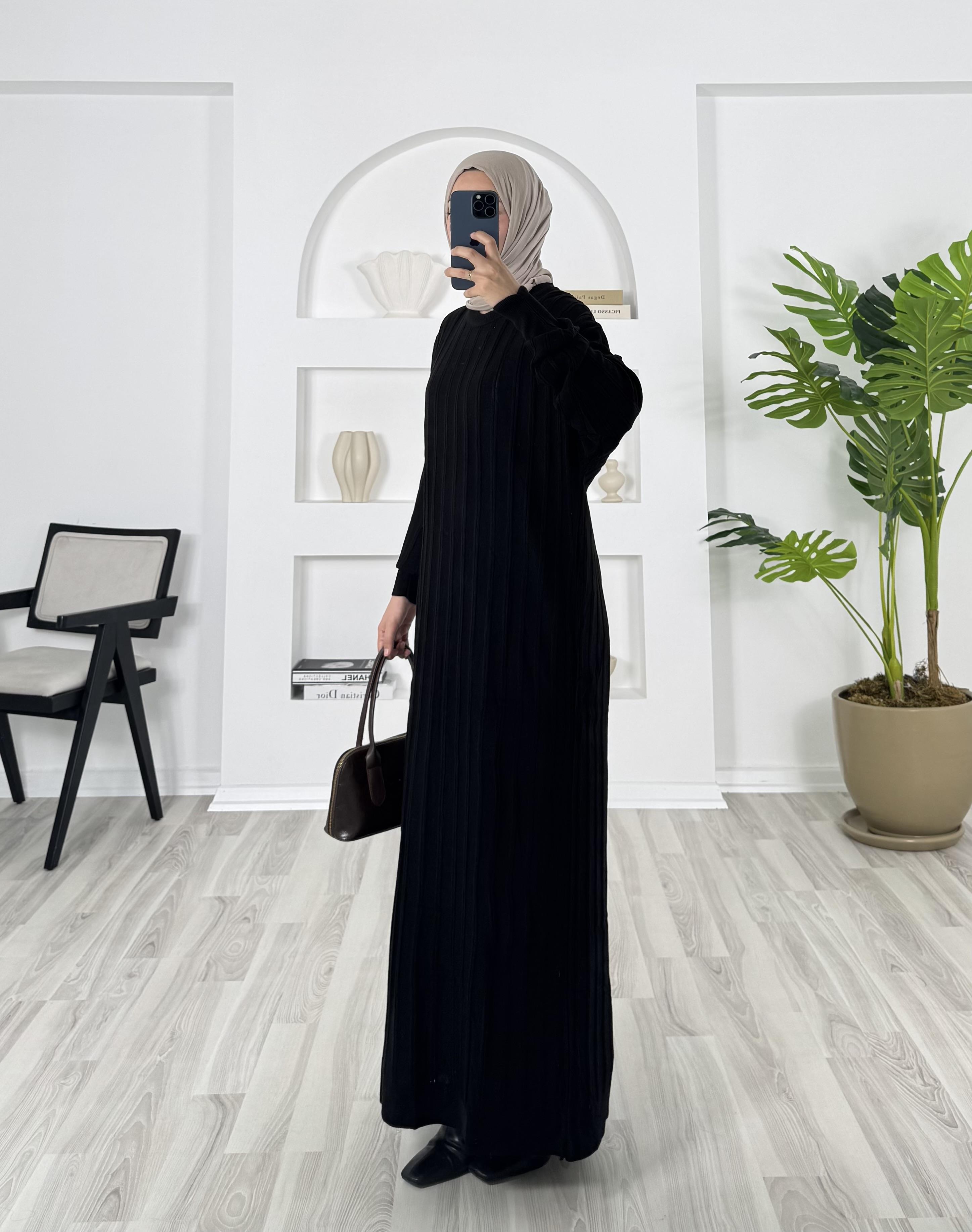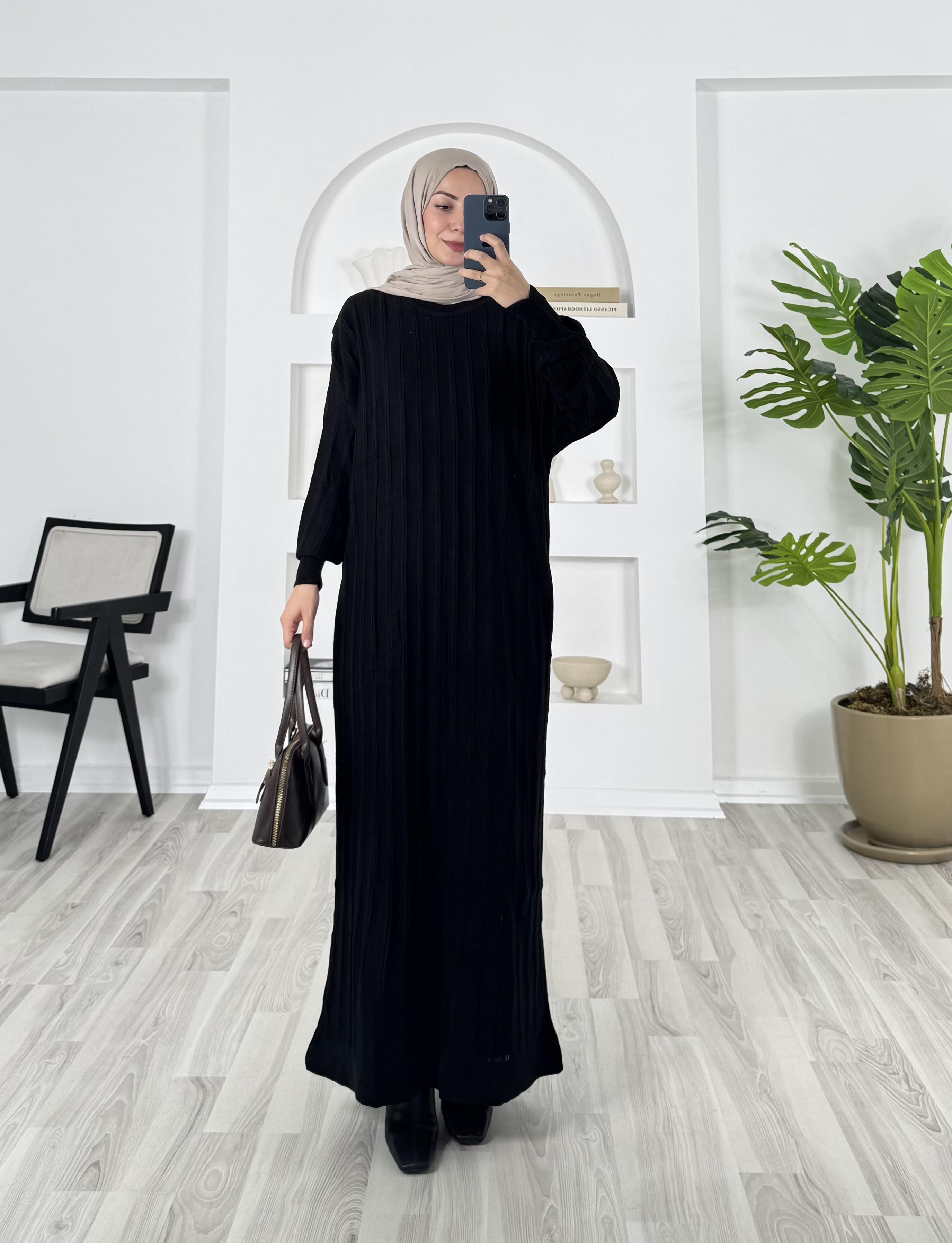 0442- triko elbise - siyah (0442)