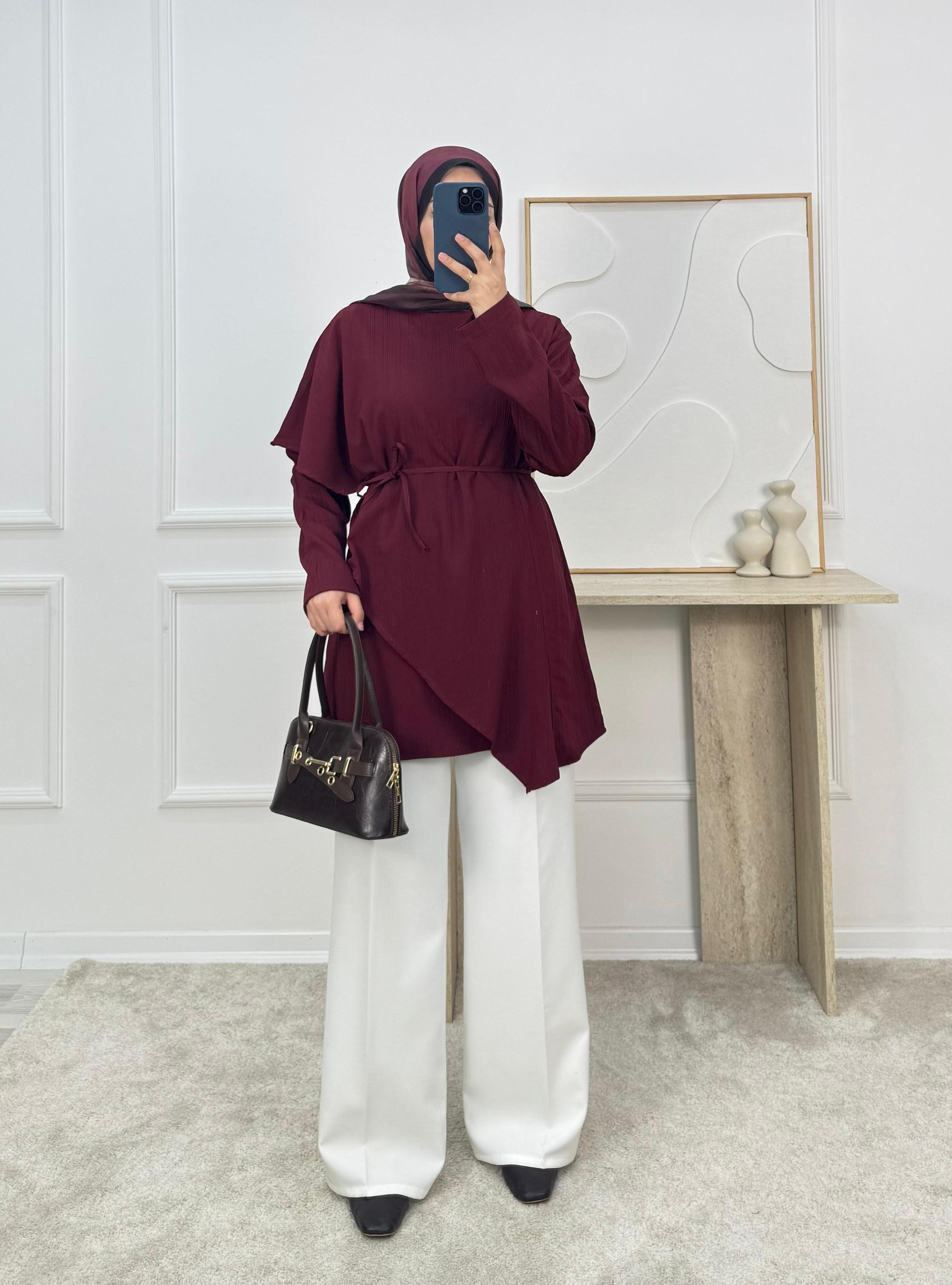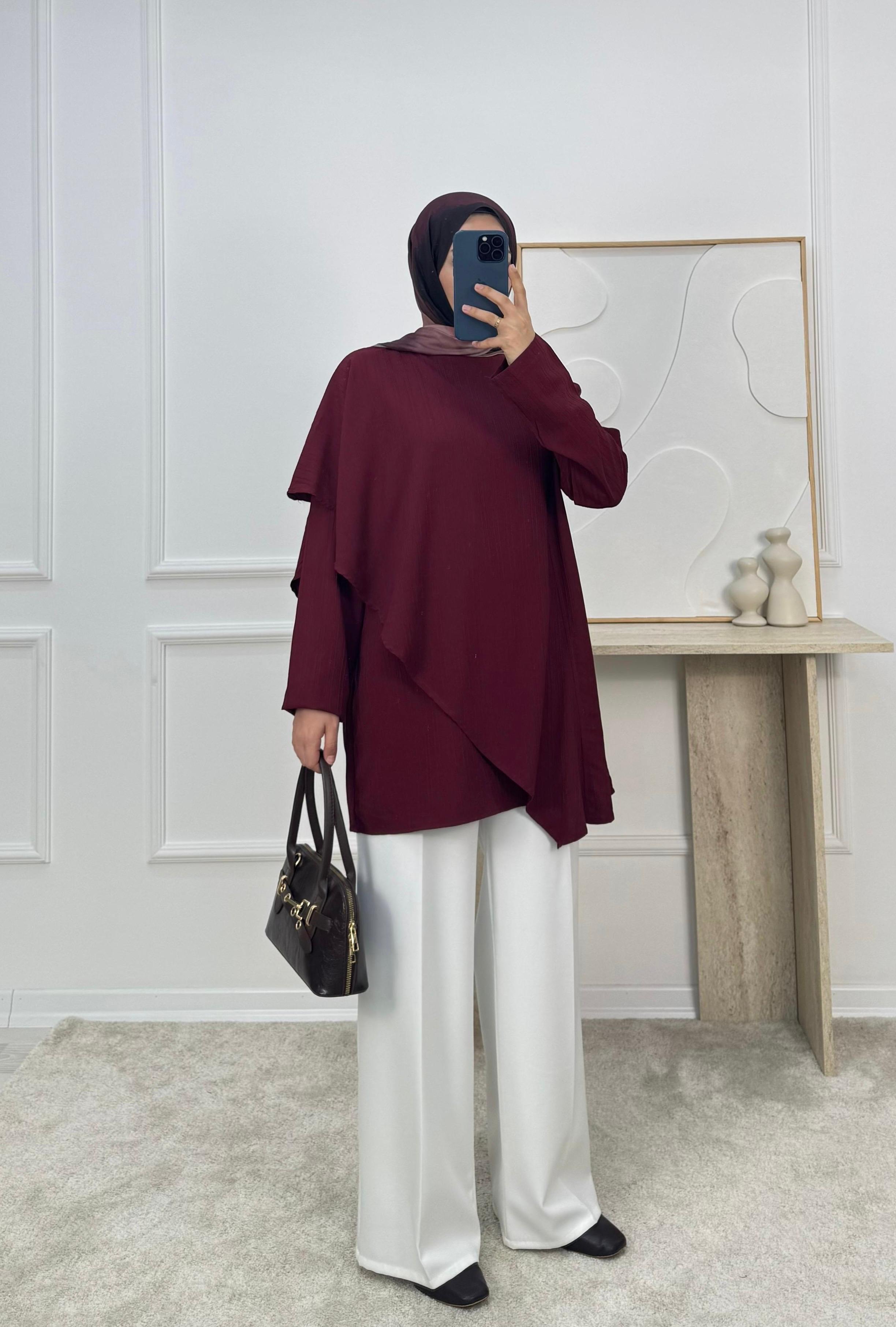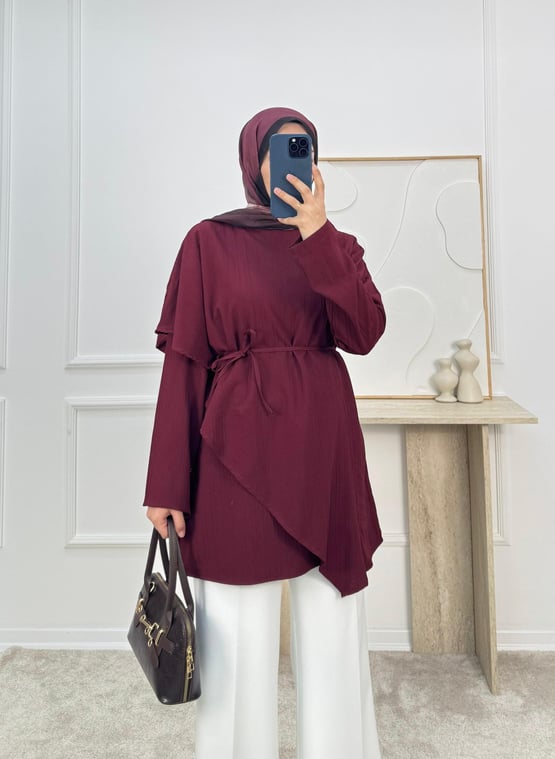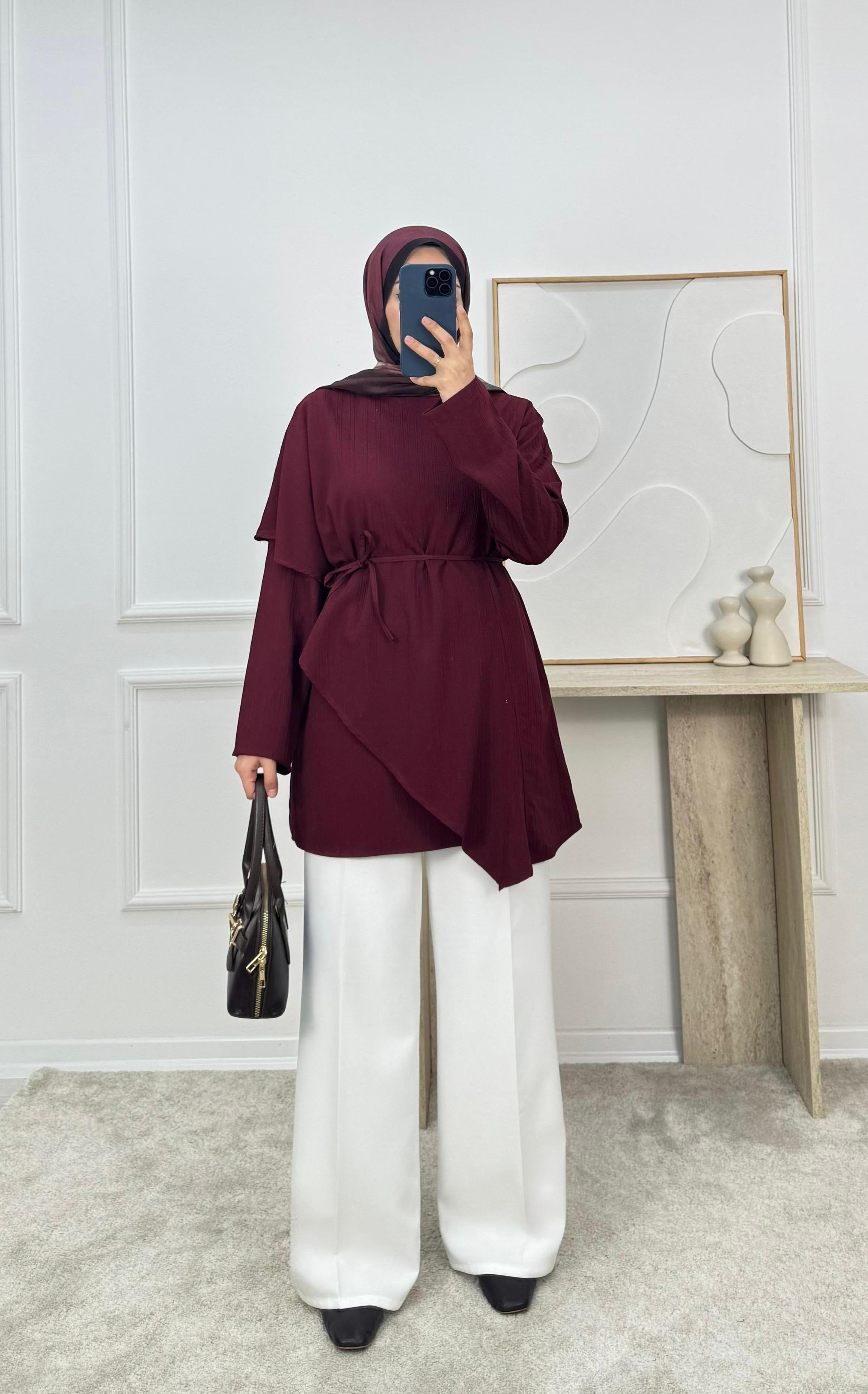 0745- nada kumaş pelerinli gömlek-bordo (0745)