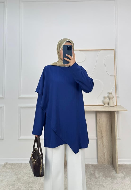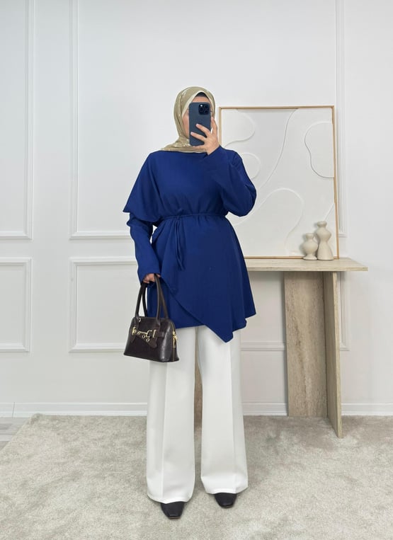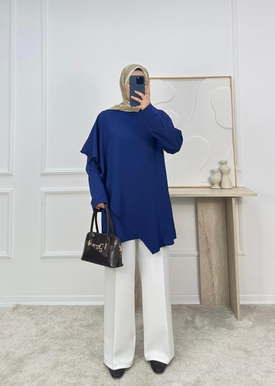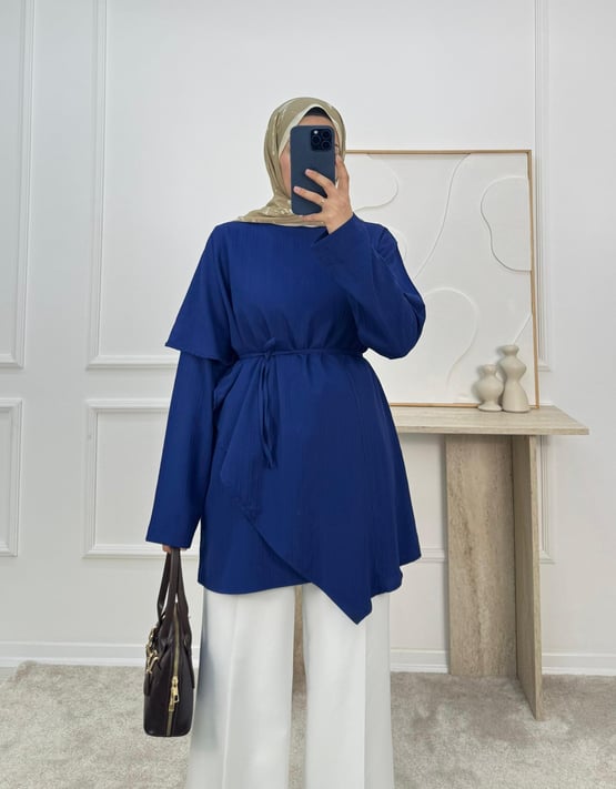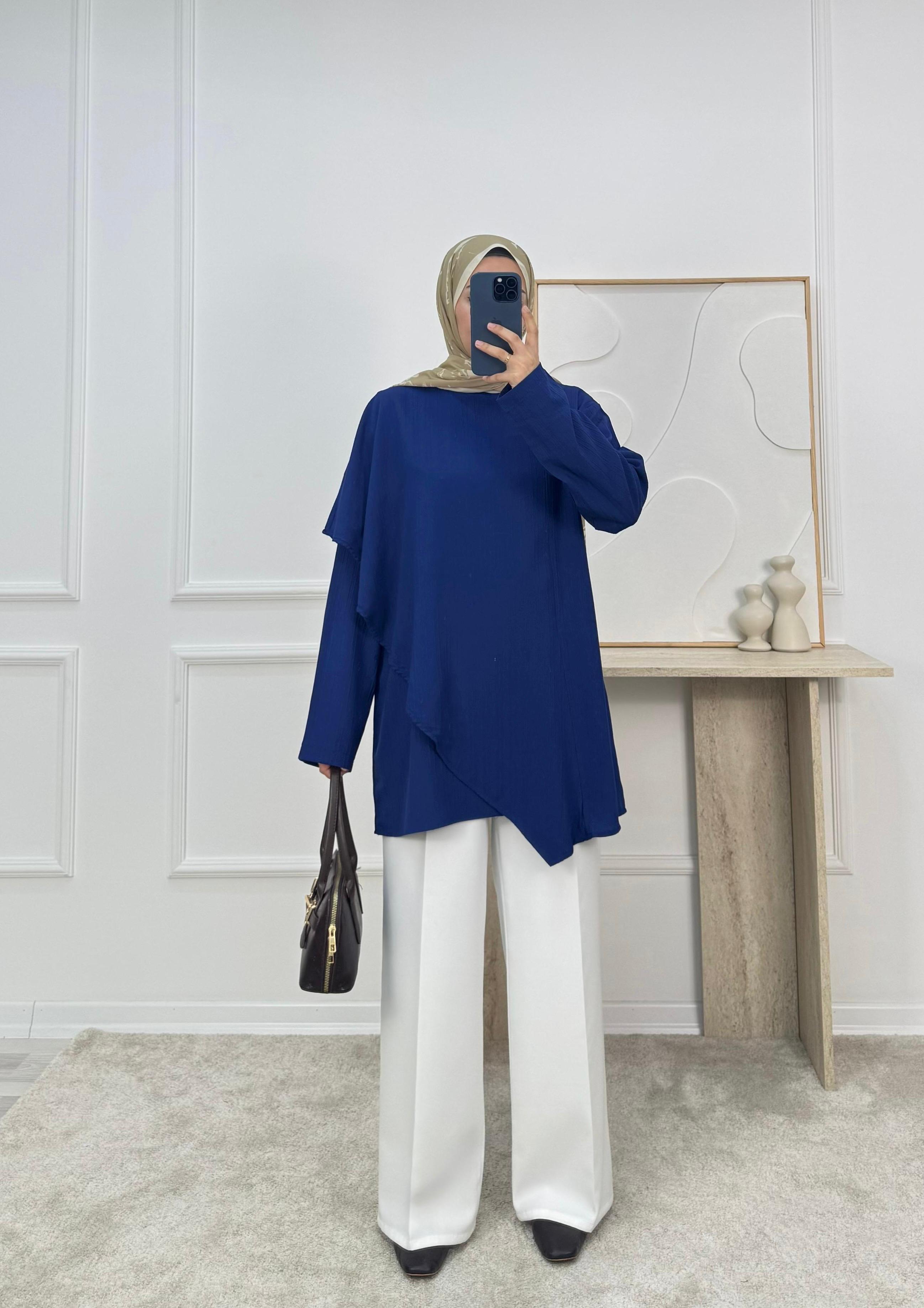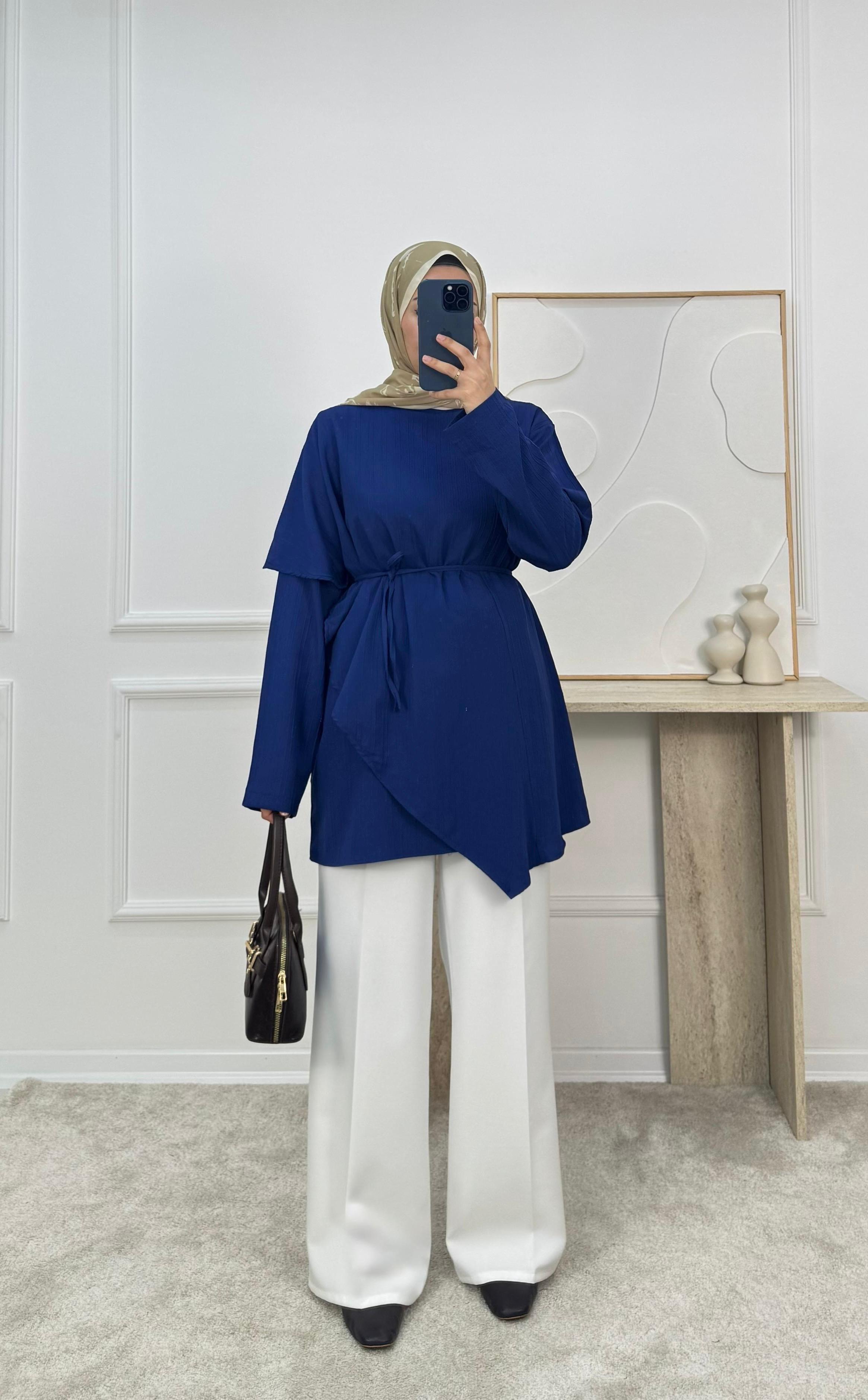 0745- nada kumaş pelerinli gömlek-lacivert (0745)