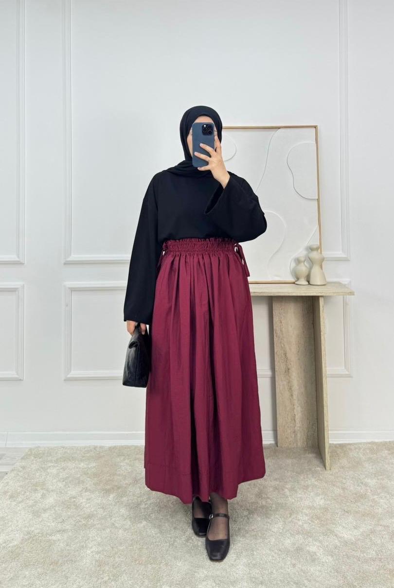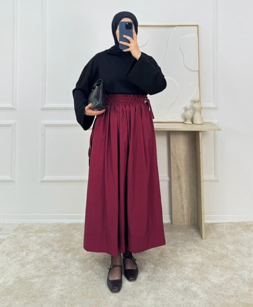 paraşüt kumaş belden büzgülü etek