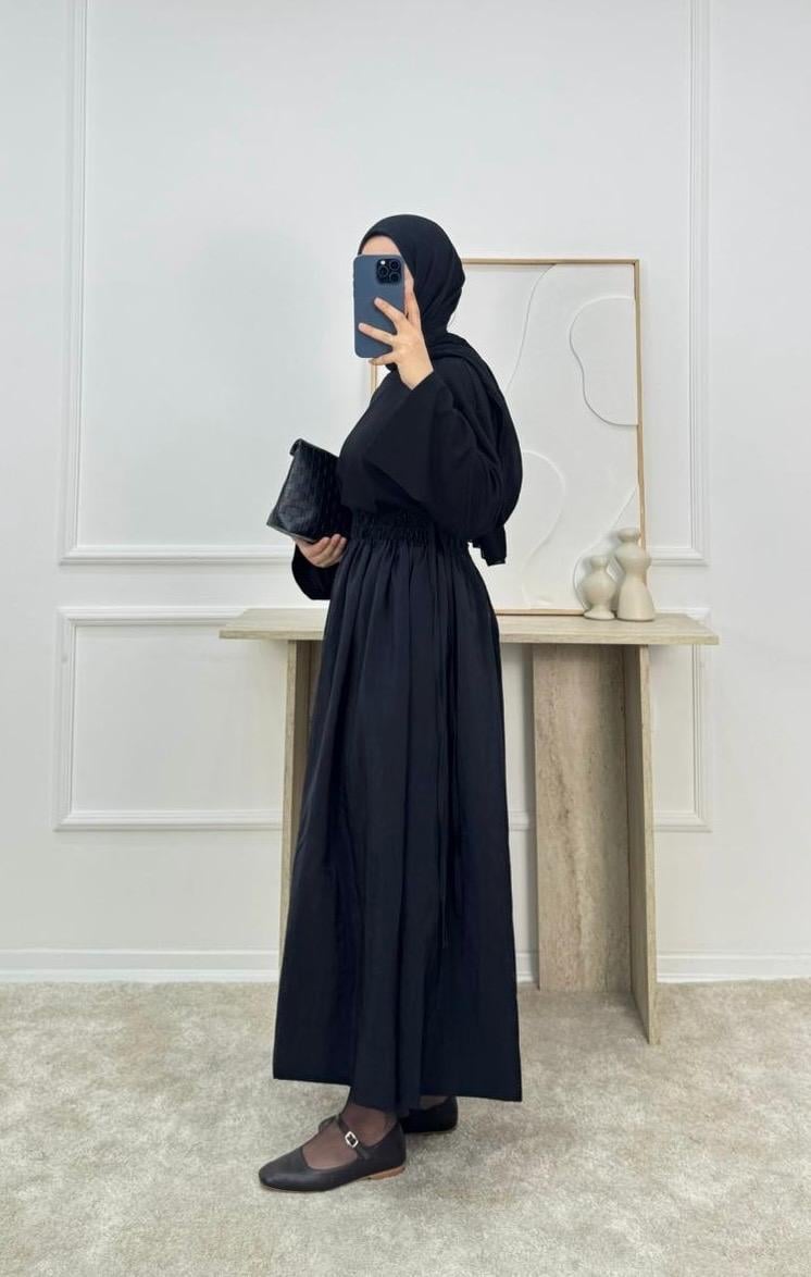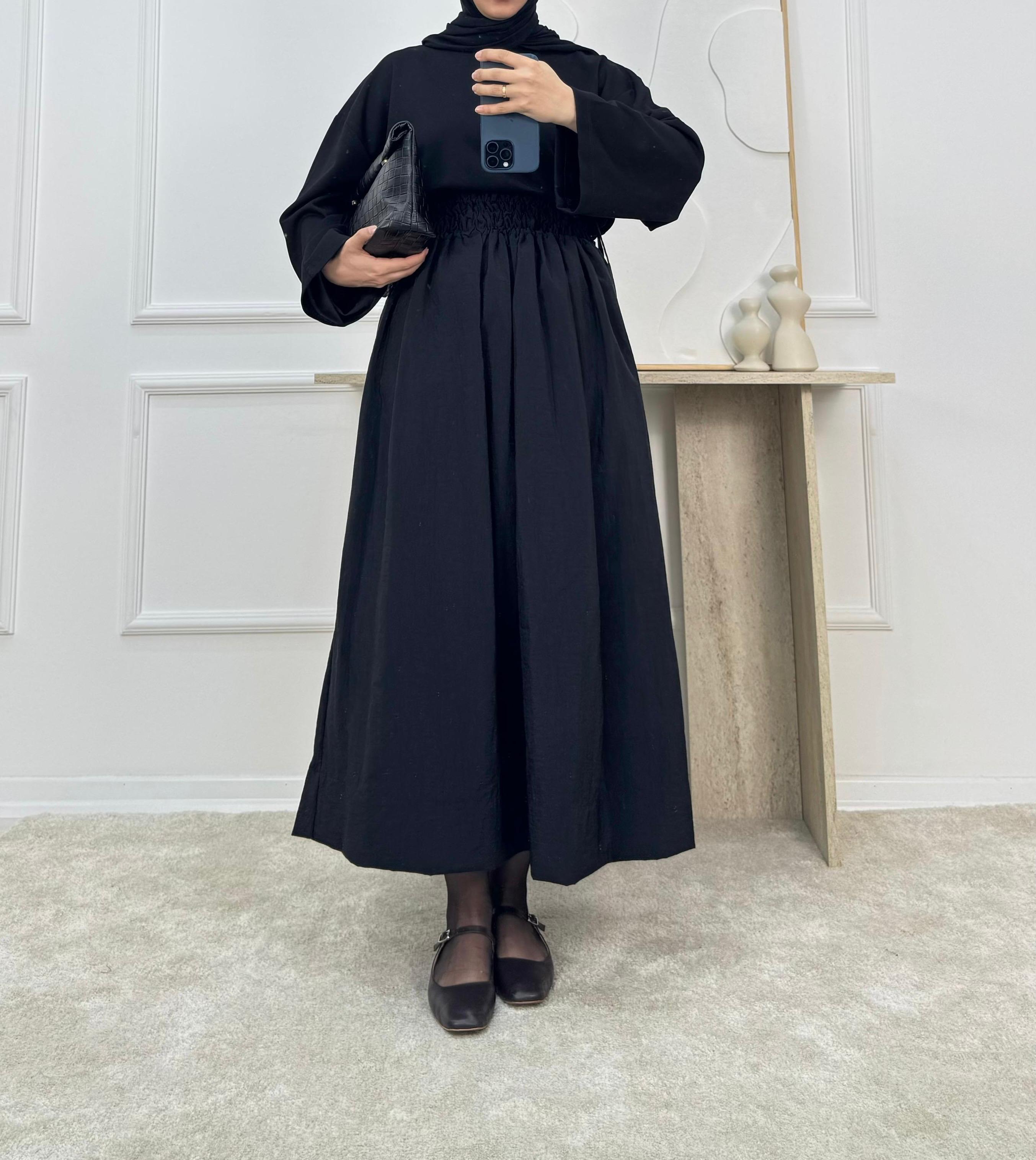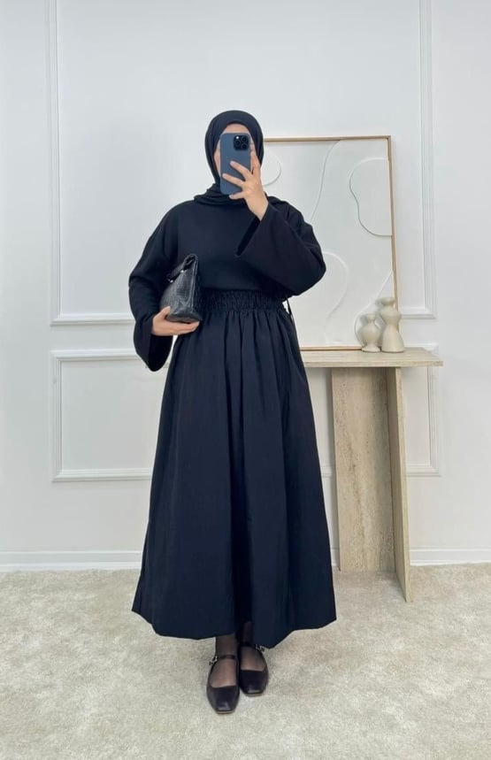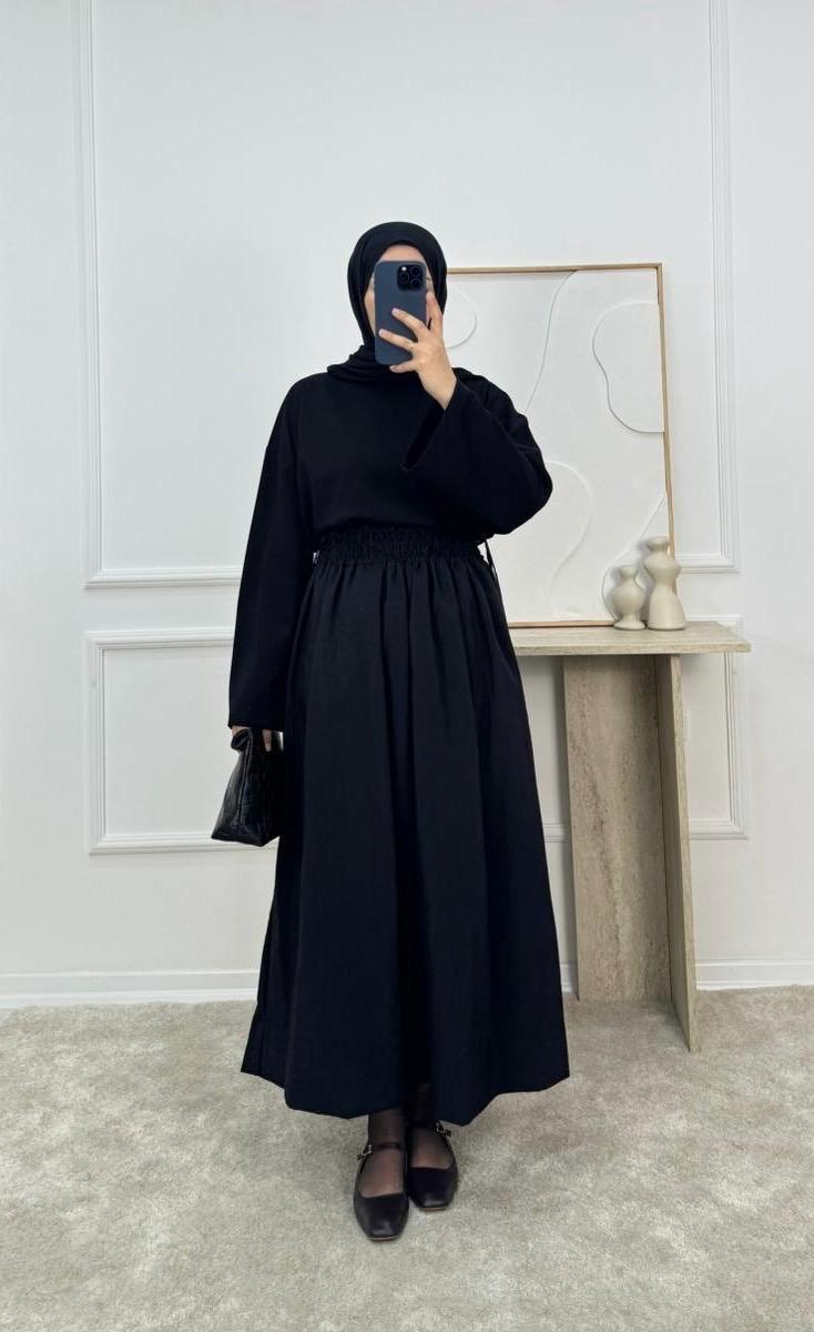0777-paraşüt kumaş belden büzgülü etek-siyah (0777)