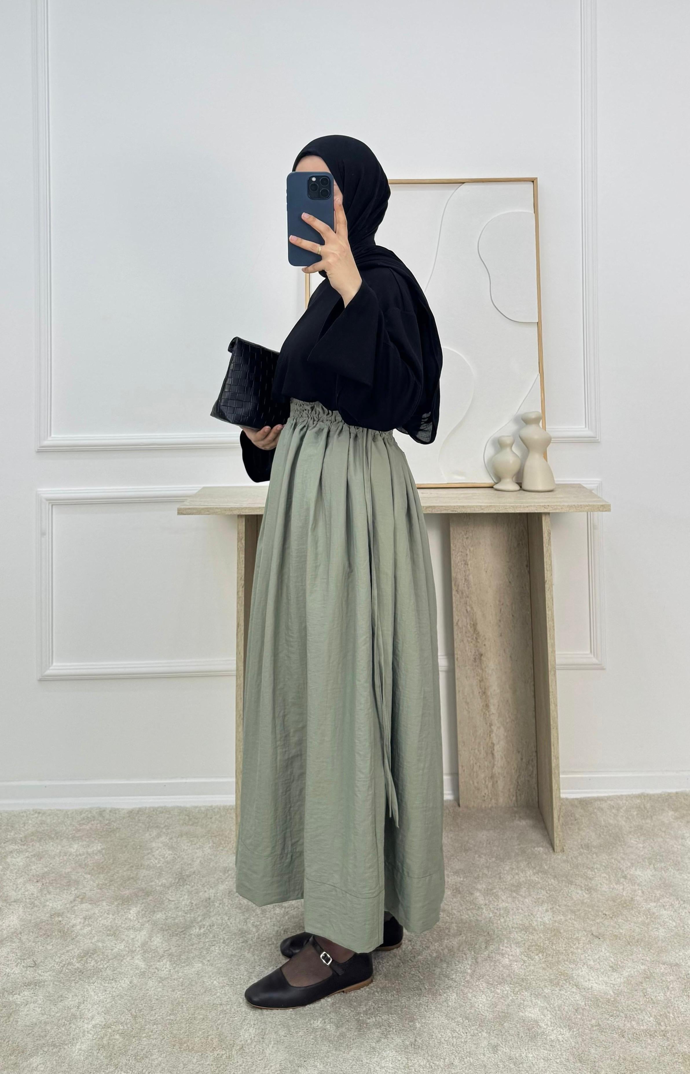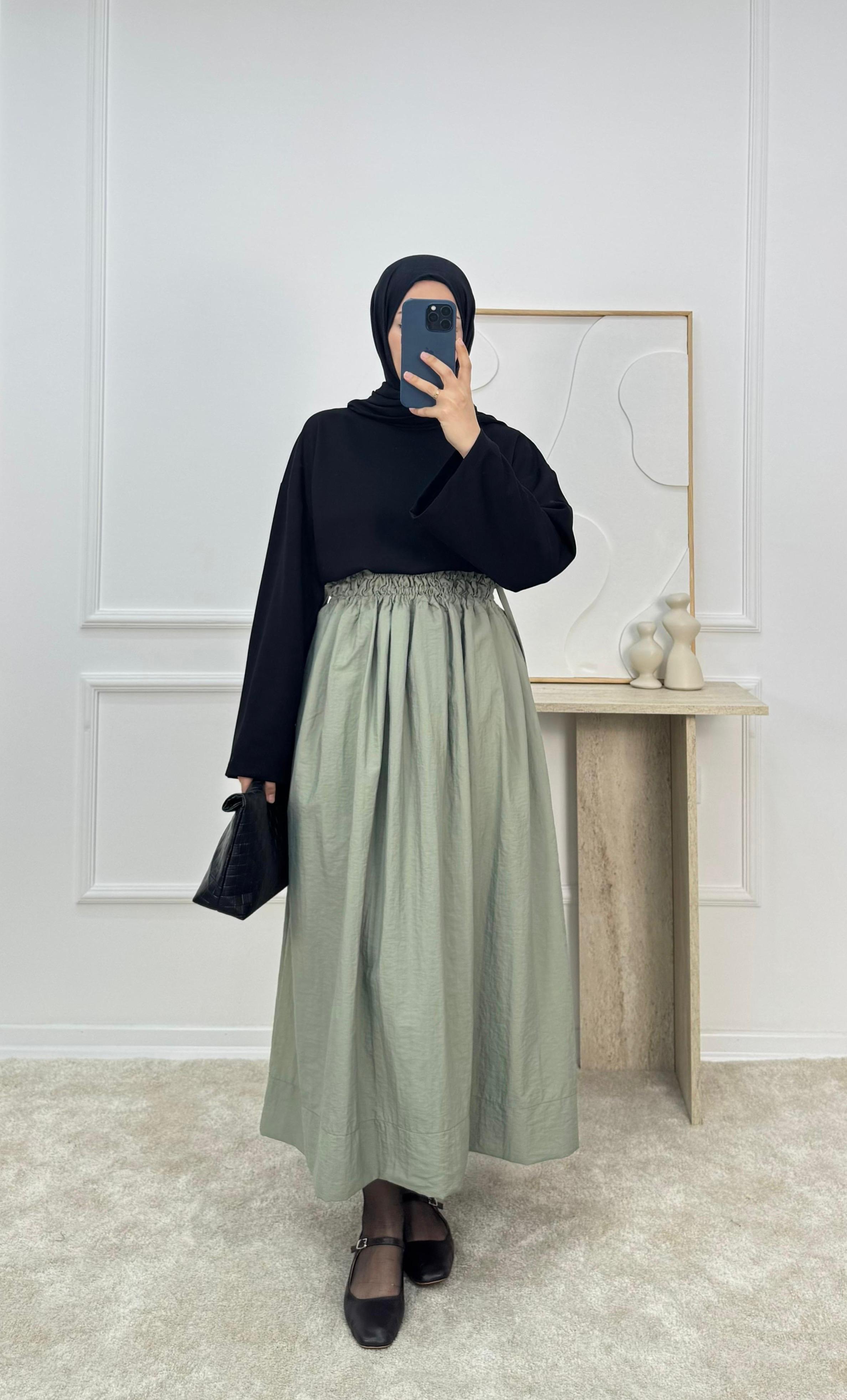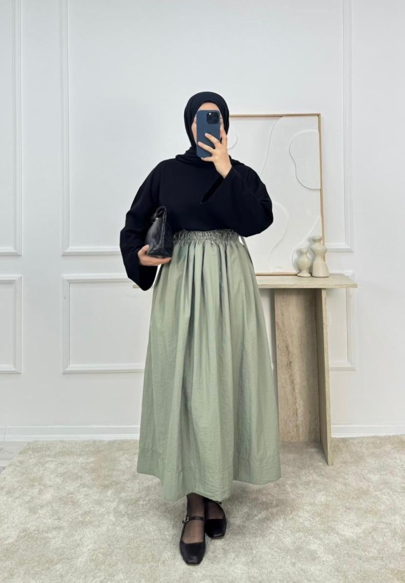 paraşüt kumaş belden büzgülü etek