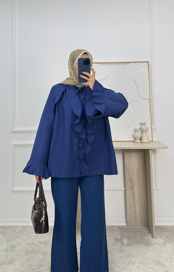 0831 terikoton kumaş volkanlı gömlek-lacivert (0831)