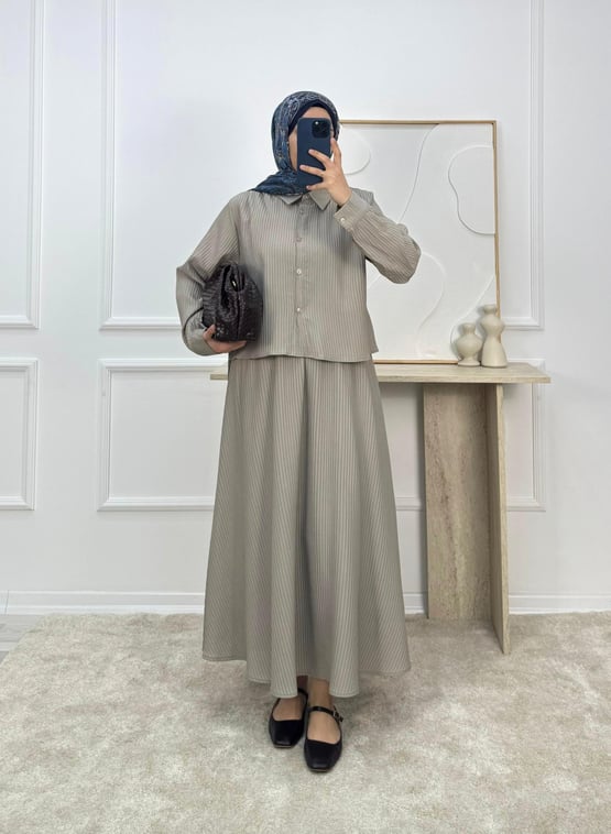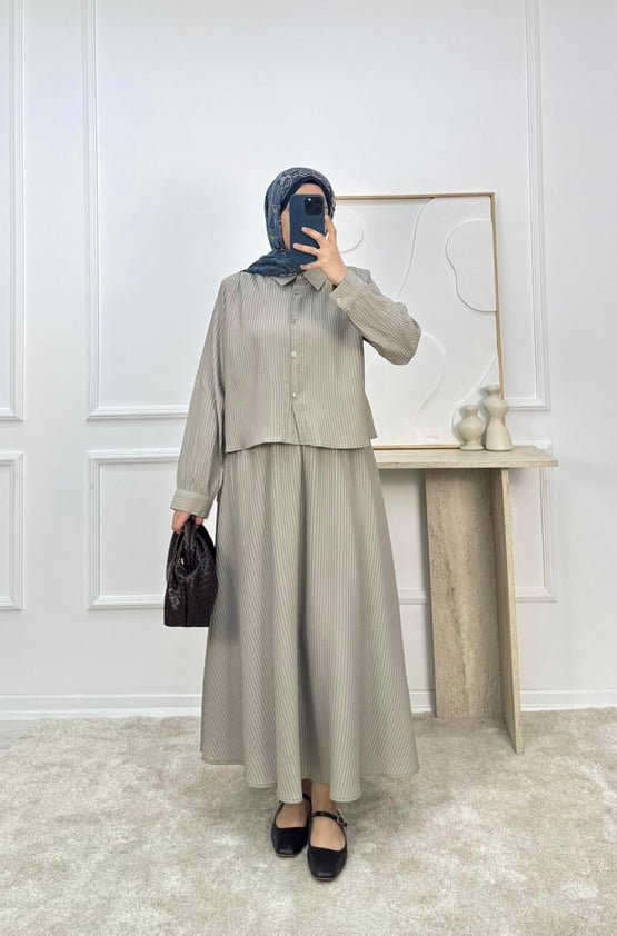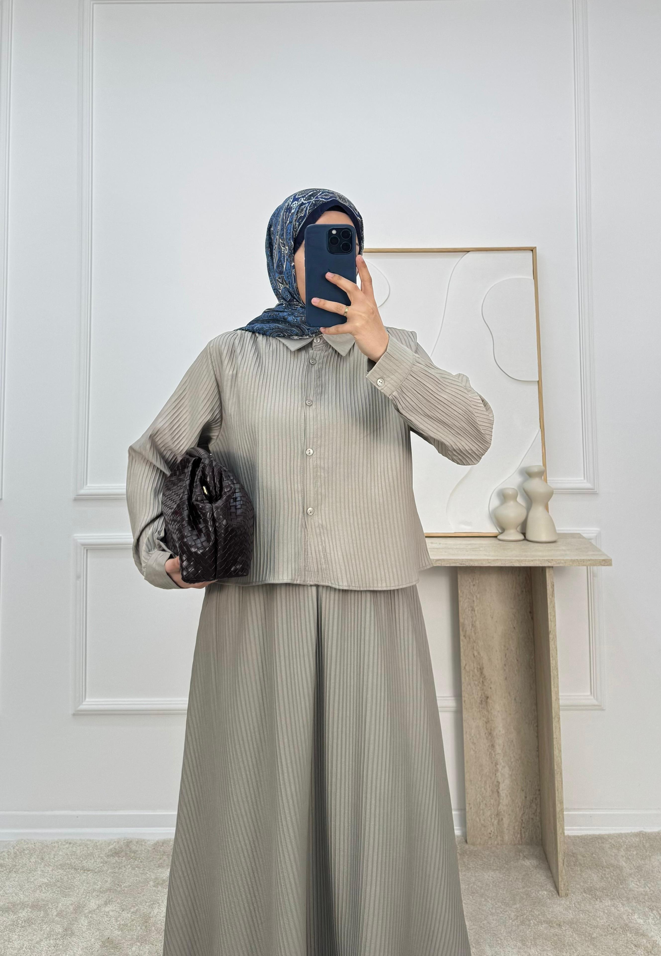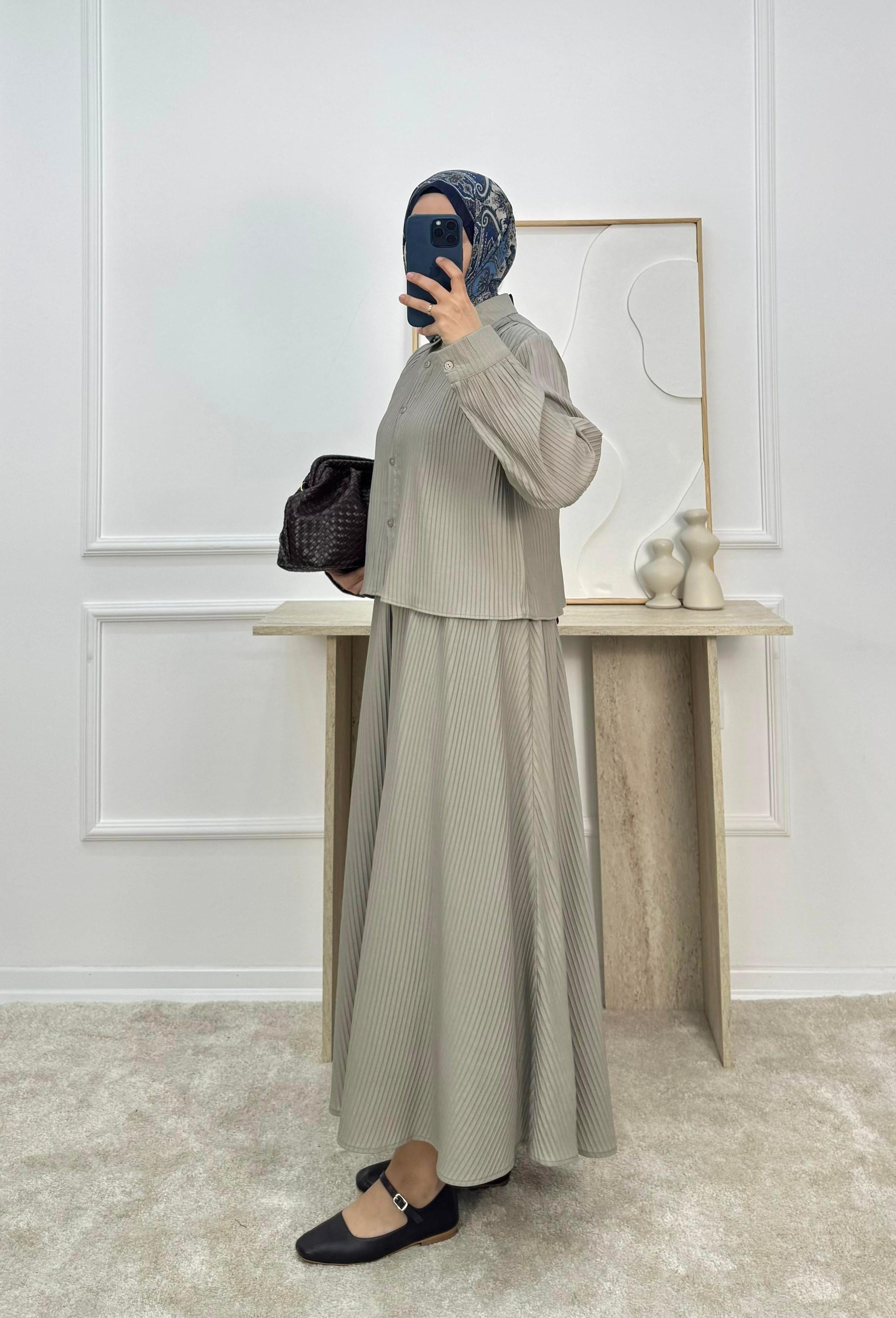 bella kumaş omuz pile detay  etekli takım