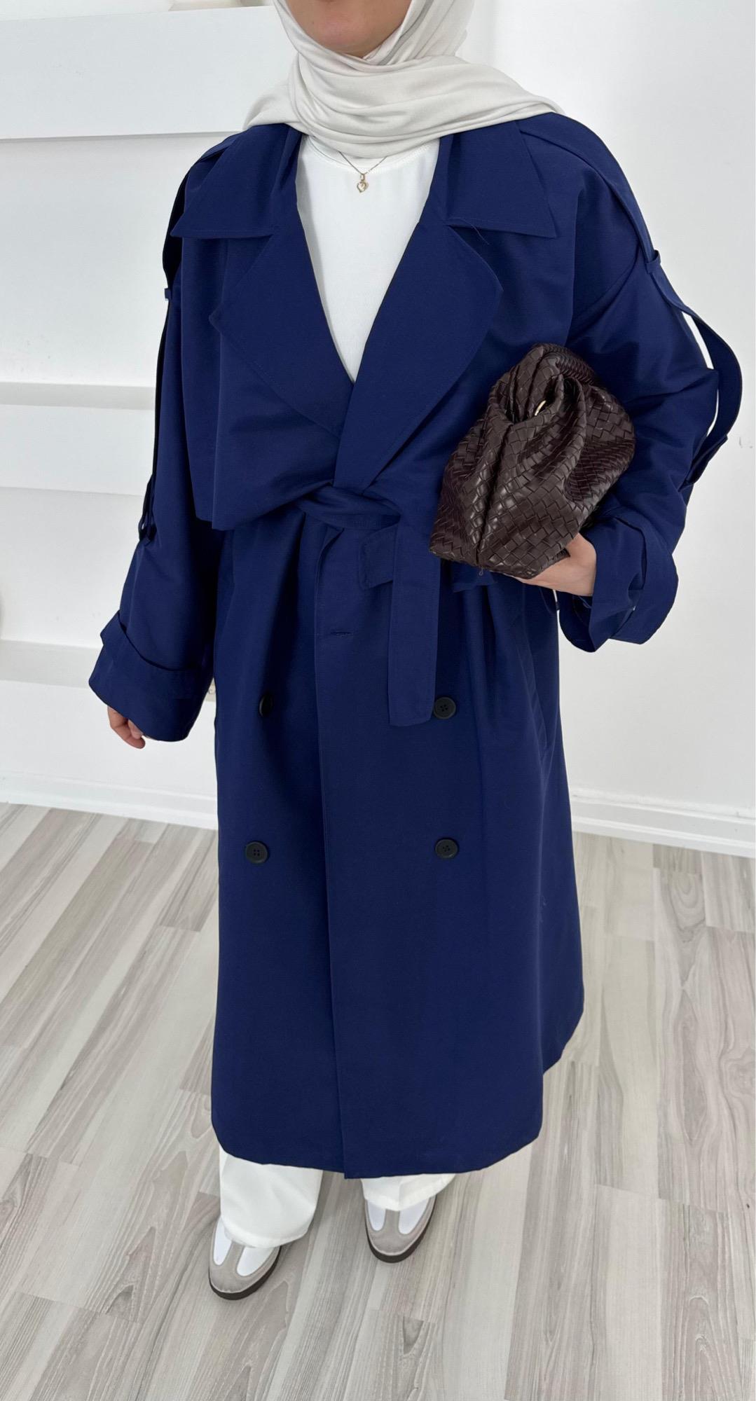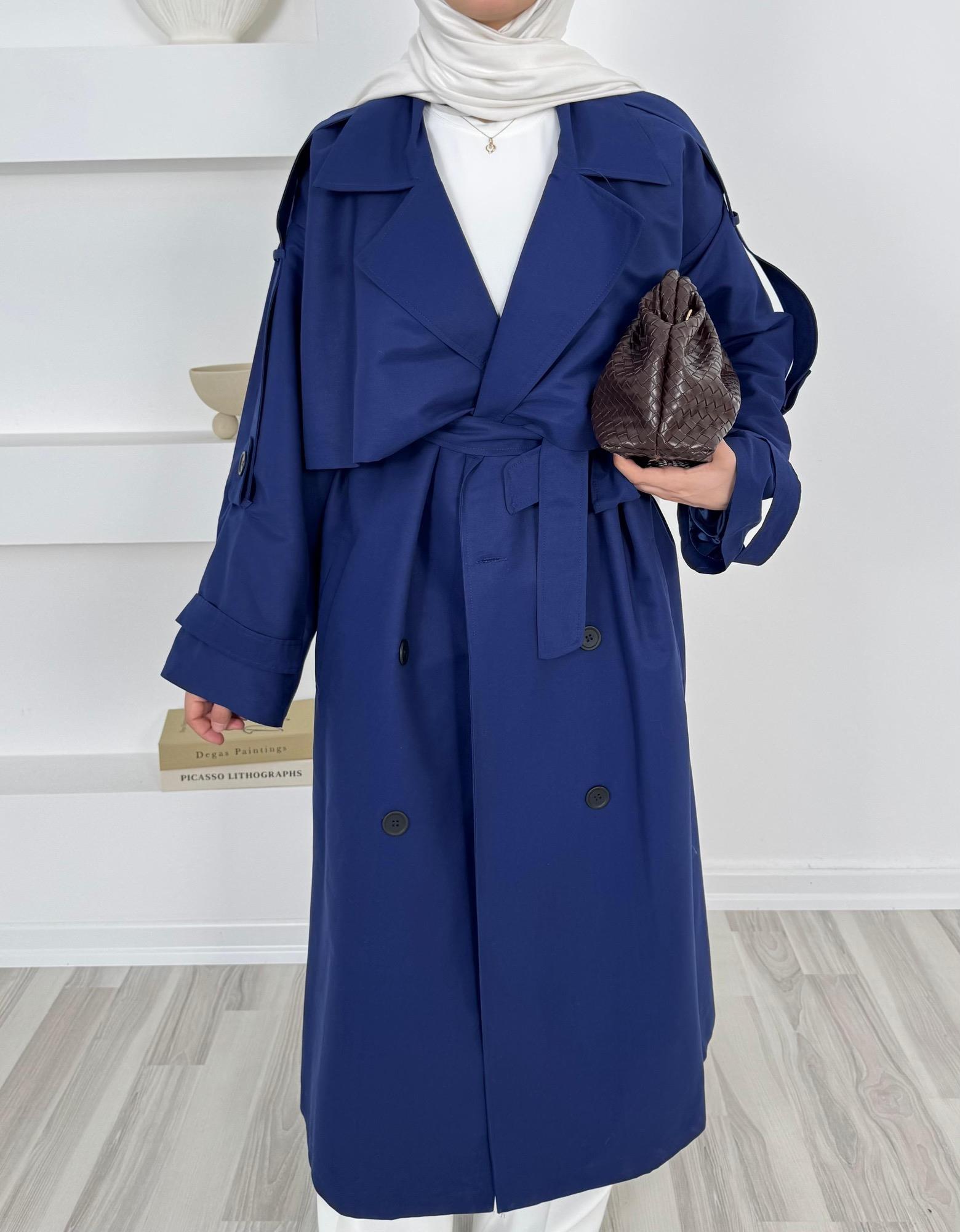 1037-astarlı uzun trençkot -lacivert (1037)