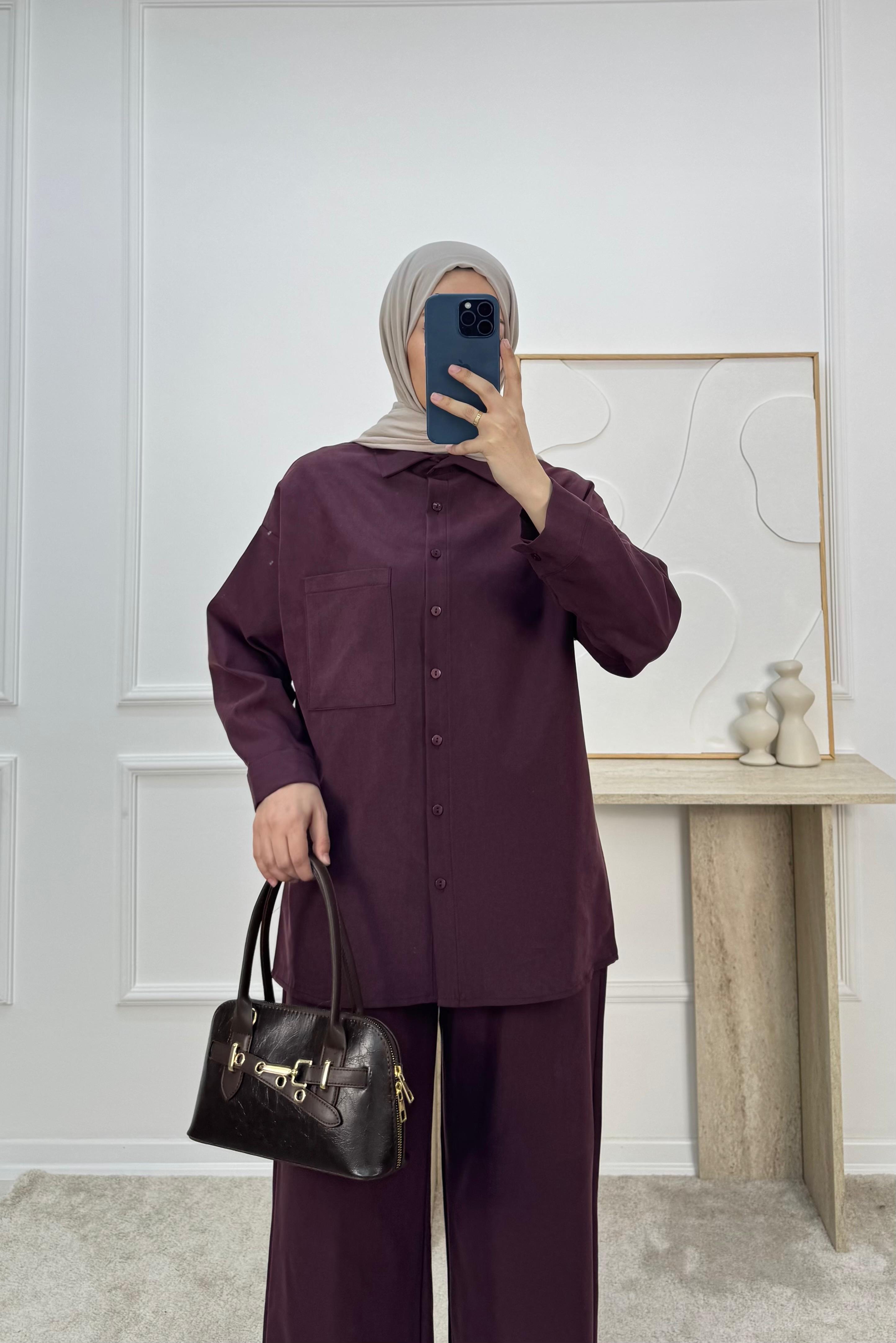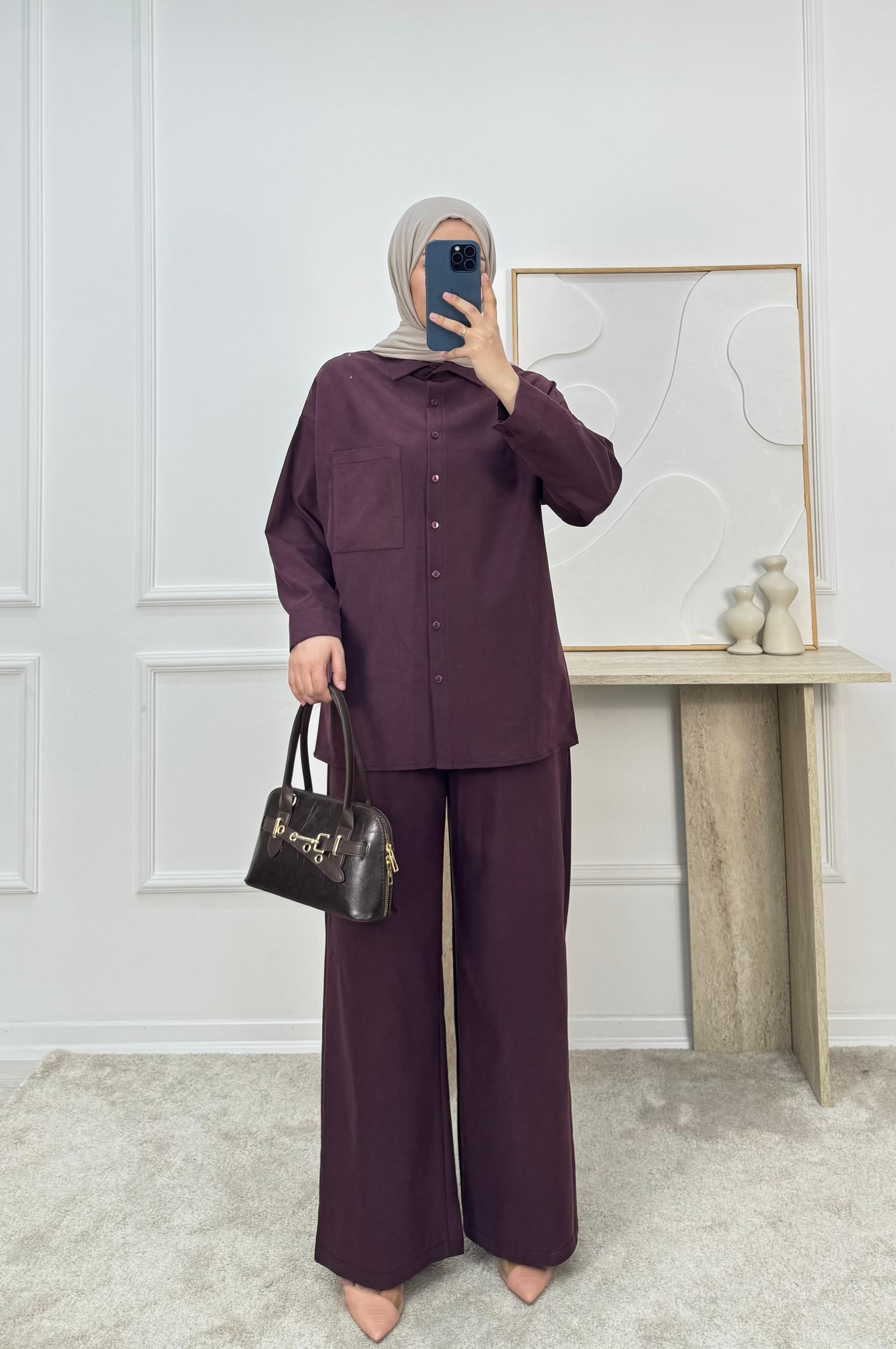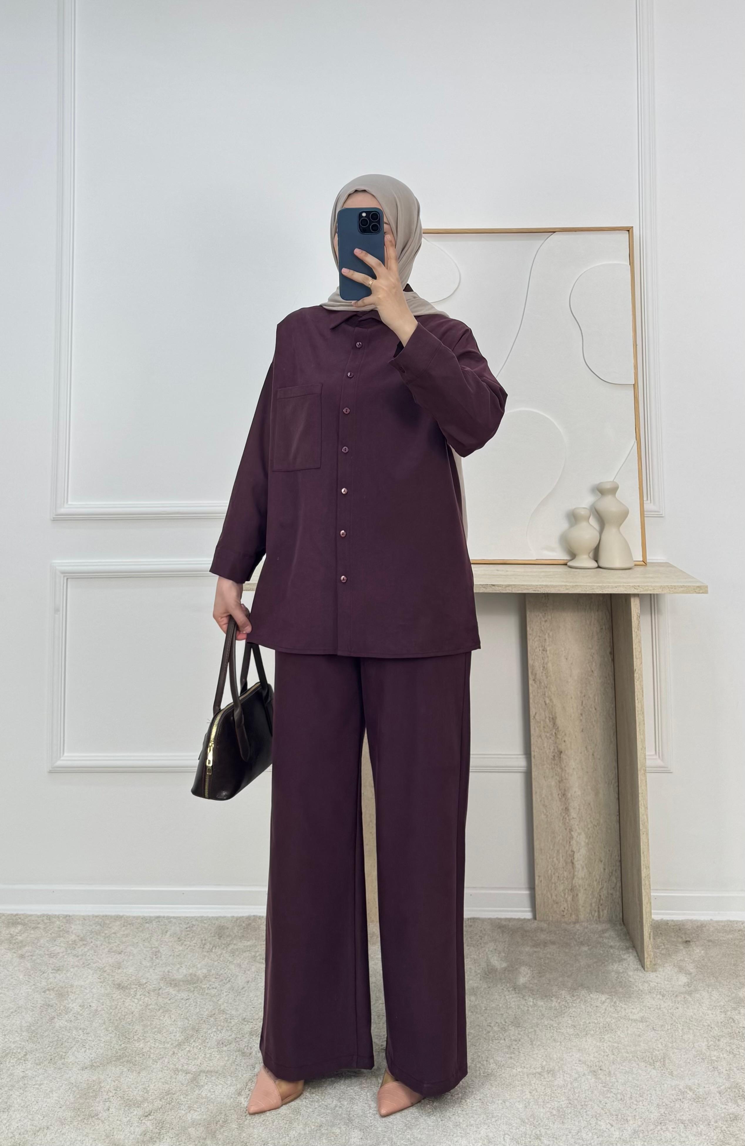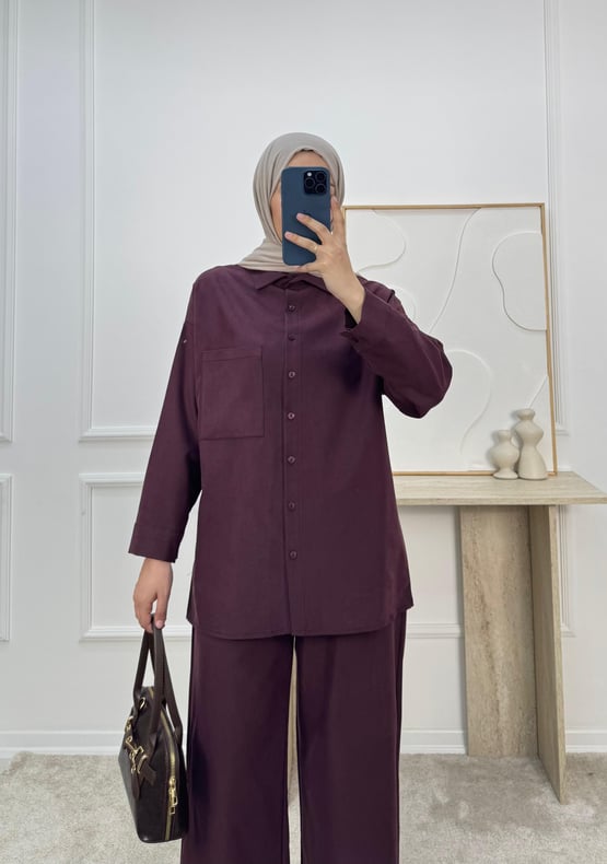1039-diogonel cupra kumaş pantolonlu takım-bordo (1039)