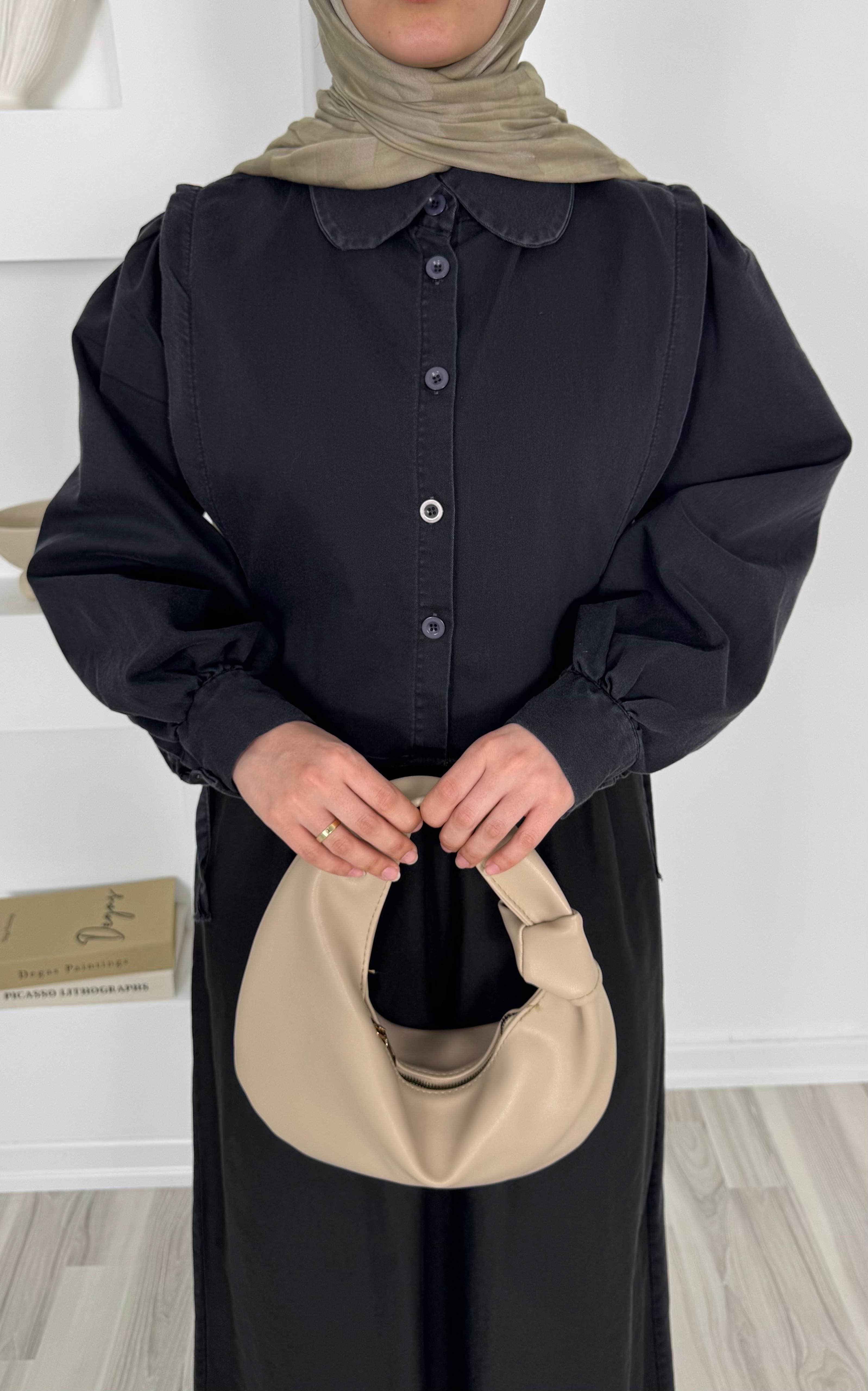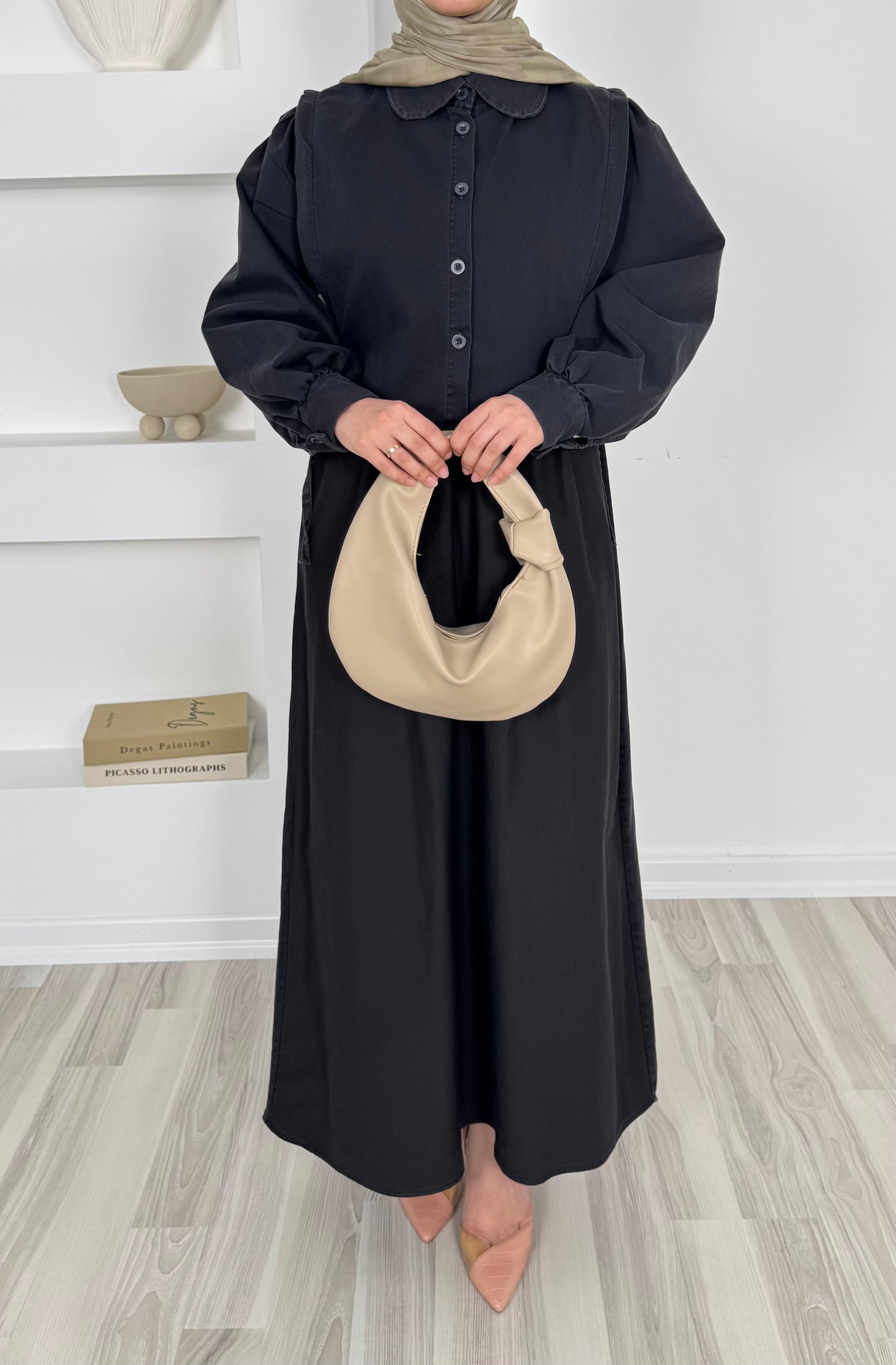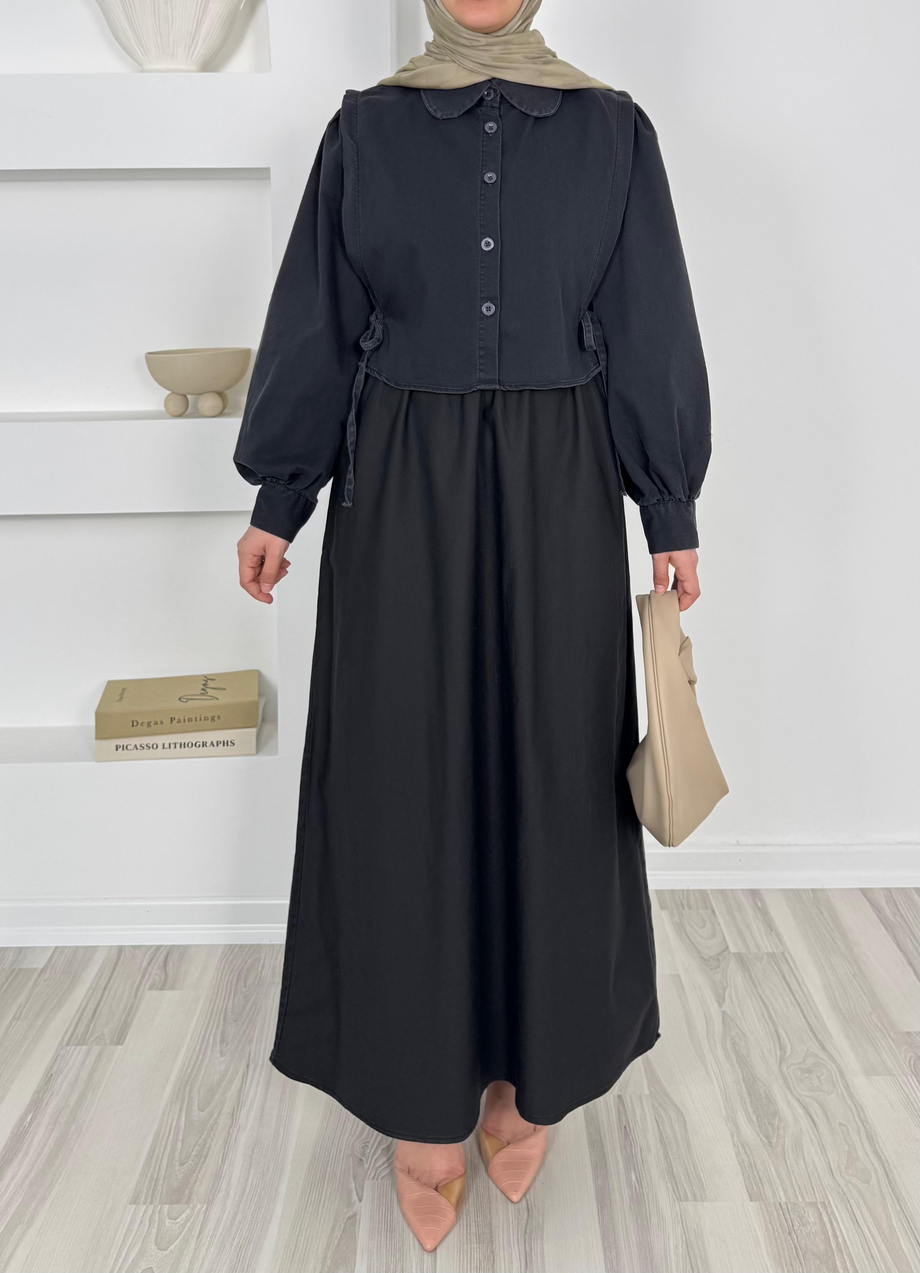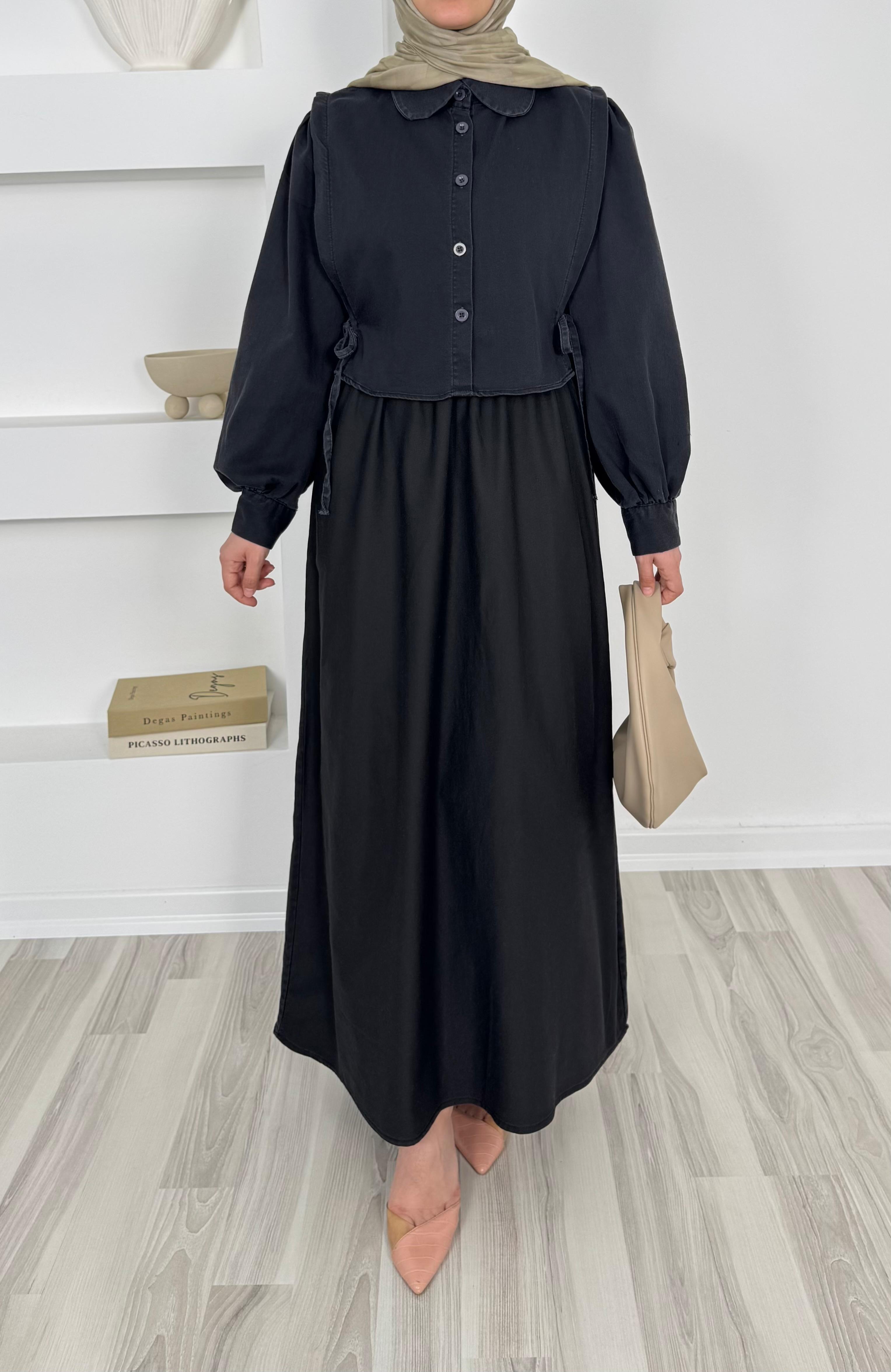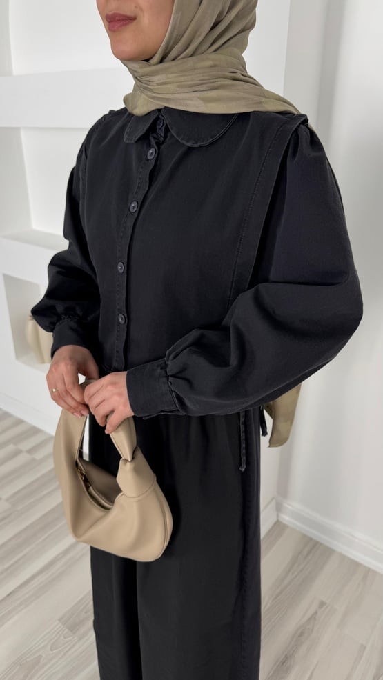 1114 -ince kot kumaş yandan bağlamalı elbise - siyah (1114)