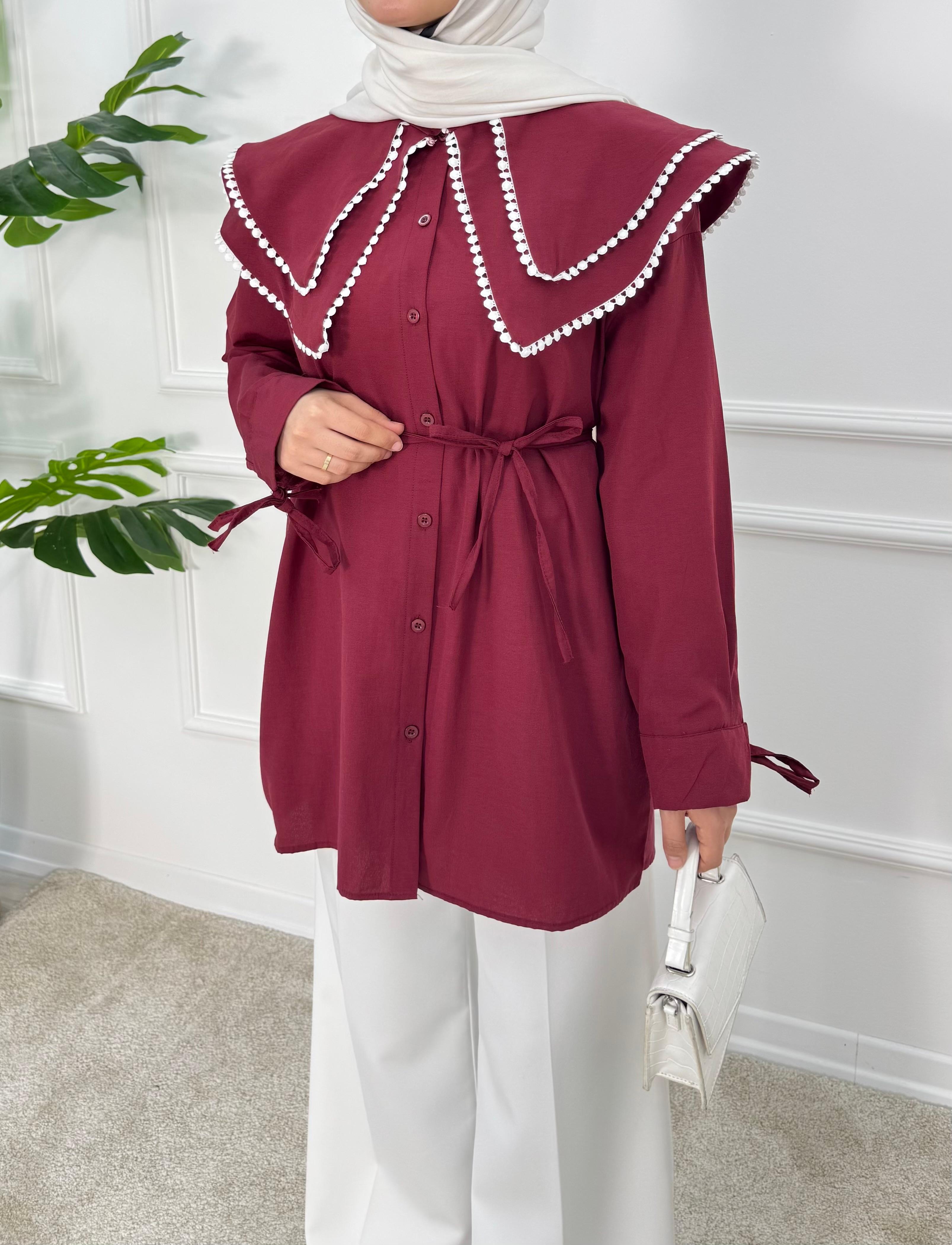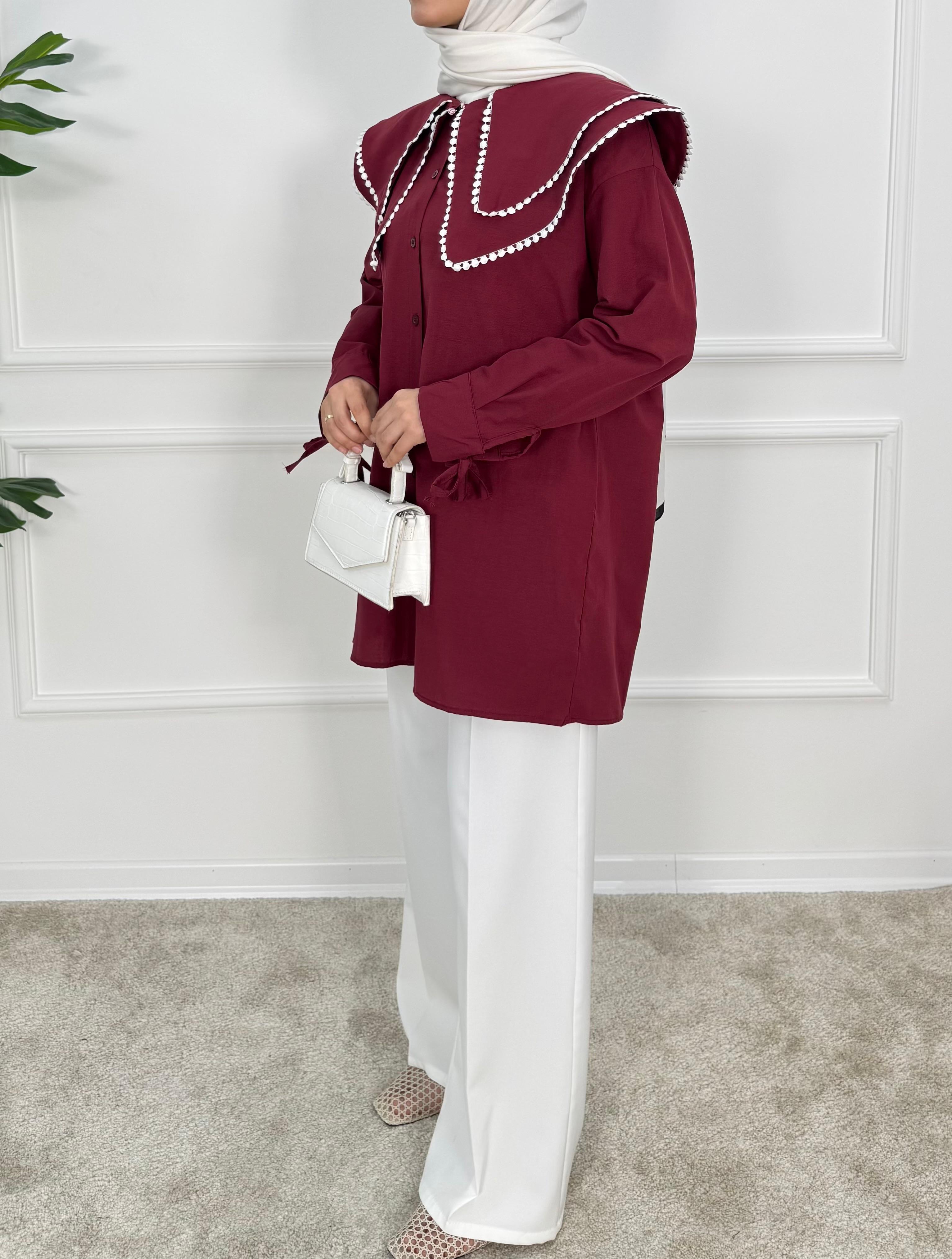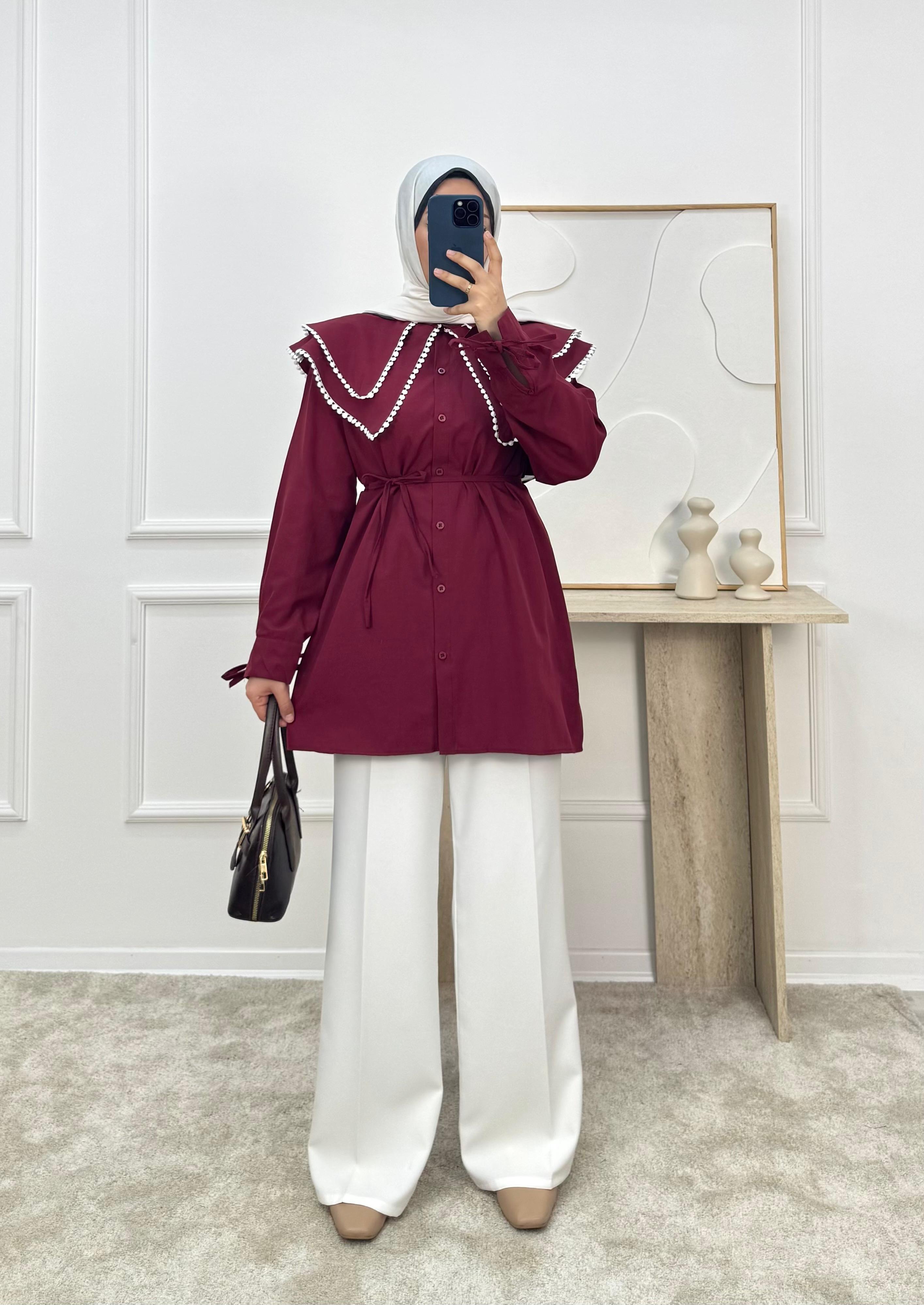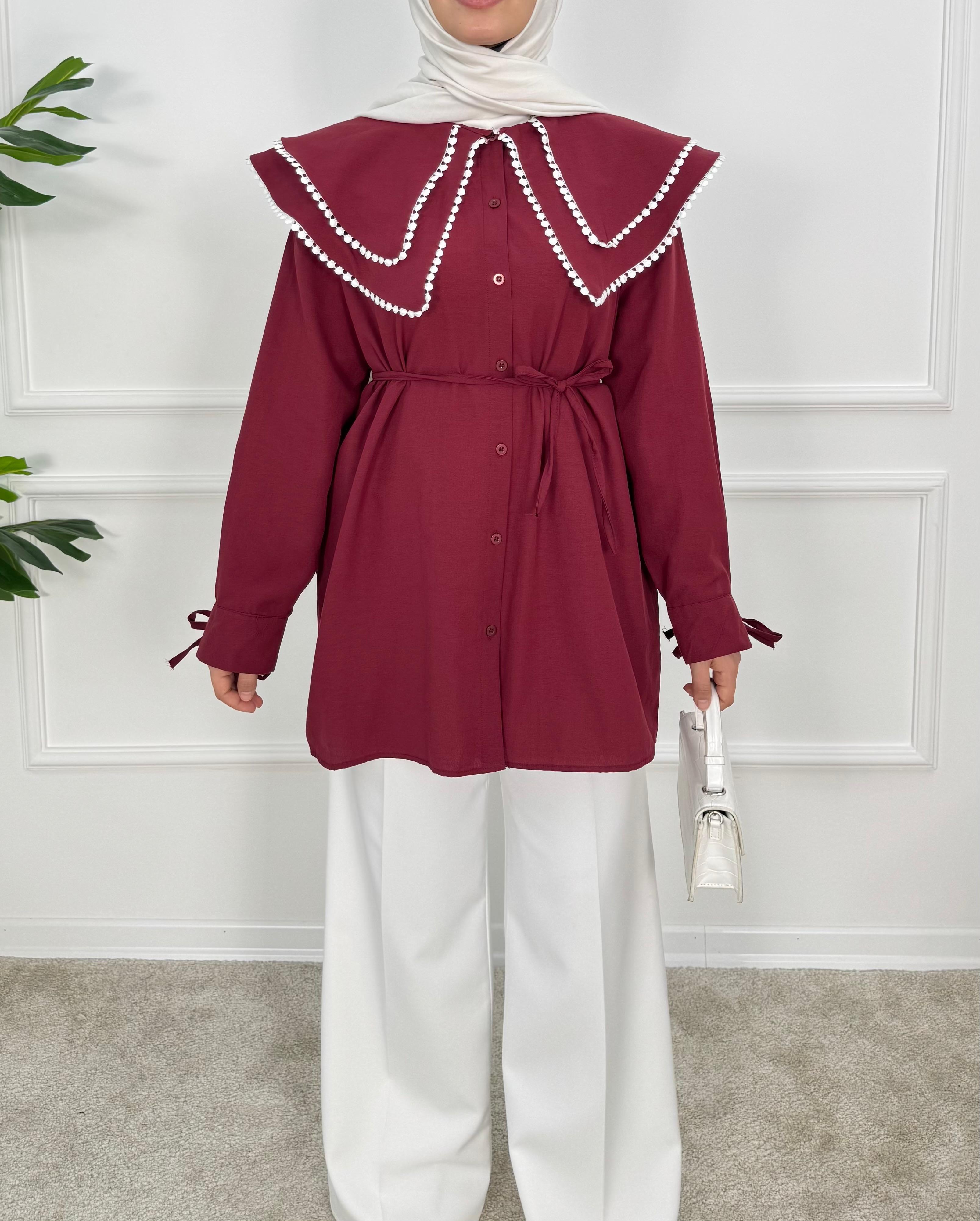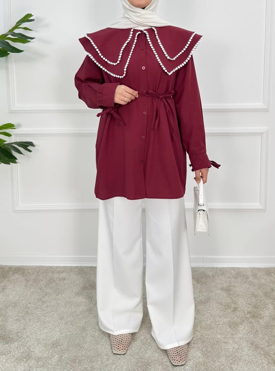 1158- terikoton kumaş bebe yaka tunik-bordo (1158)