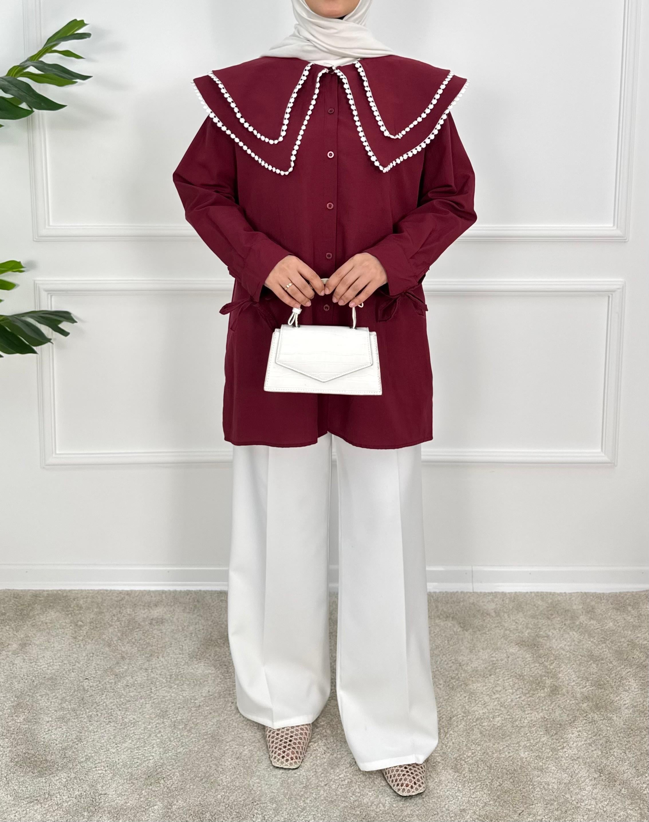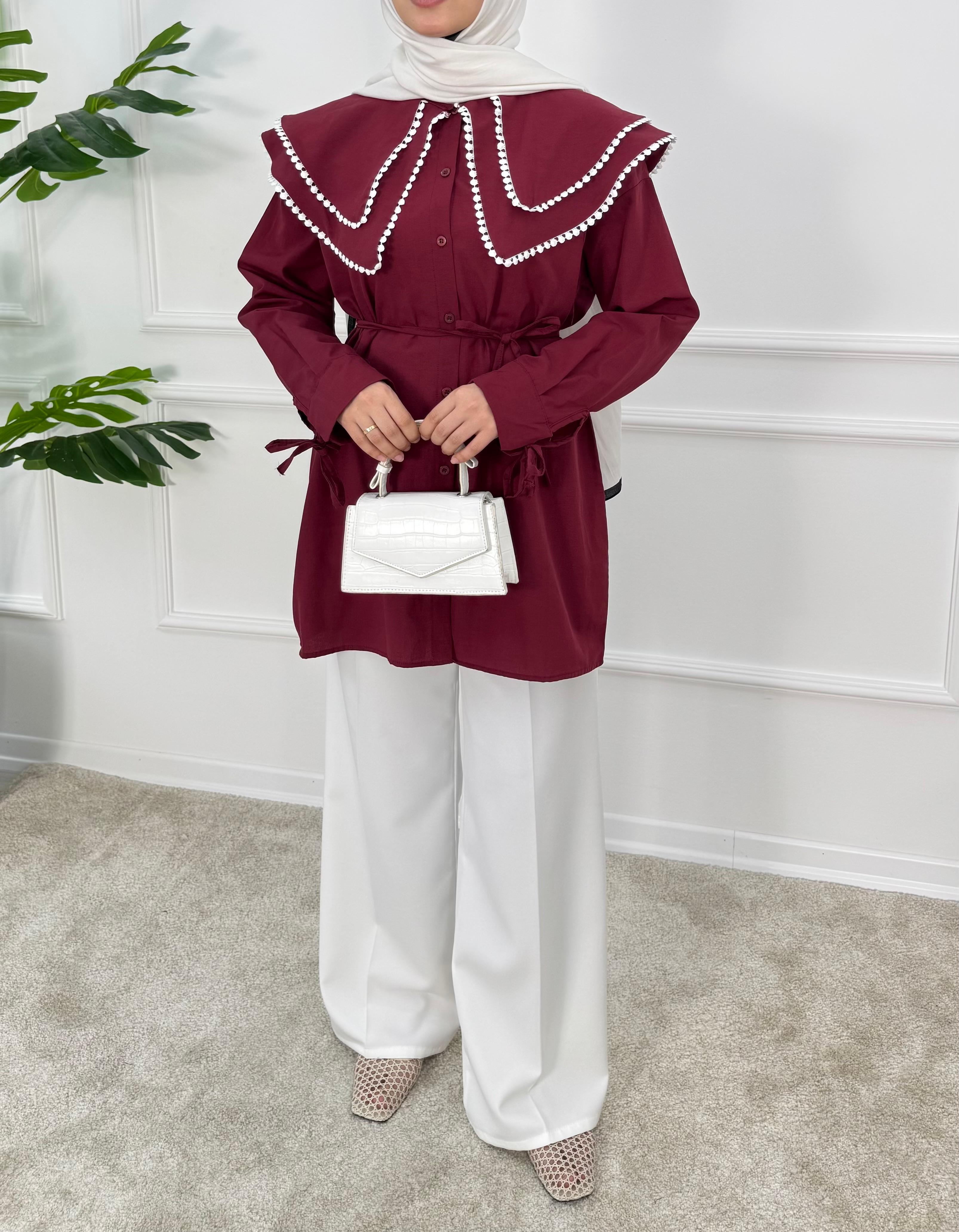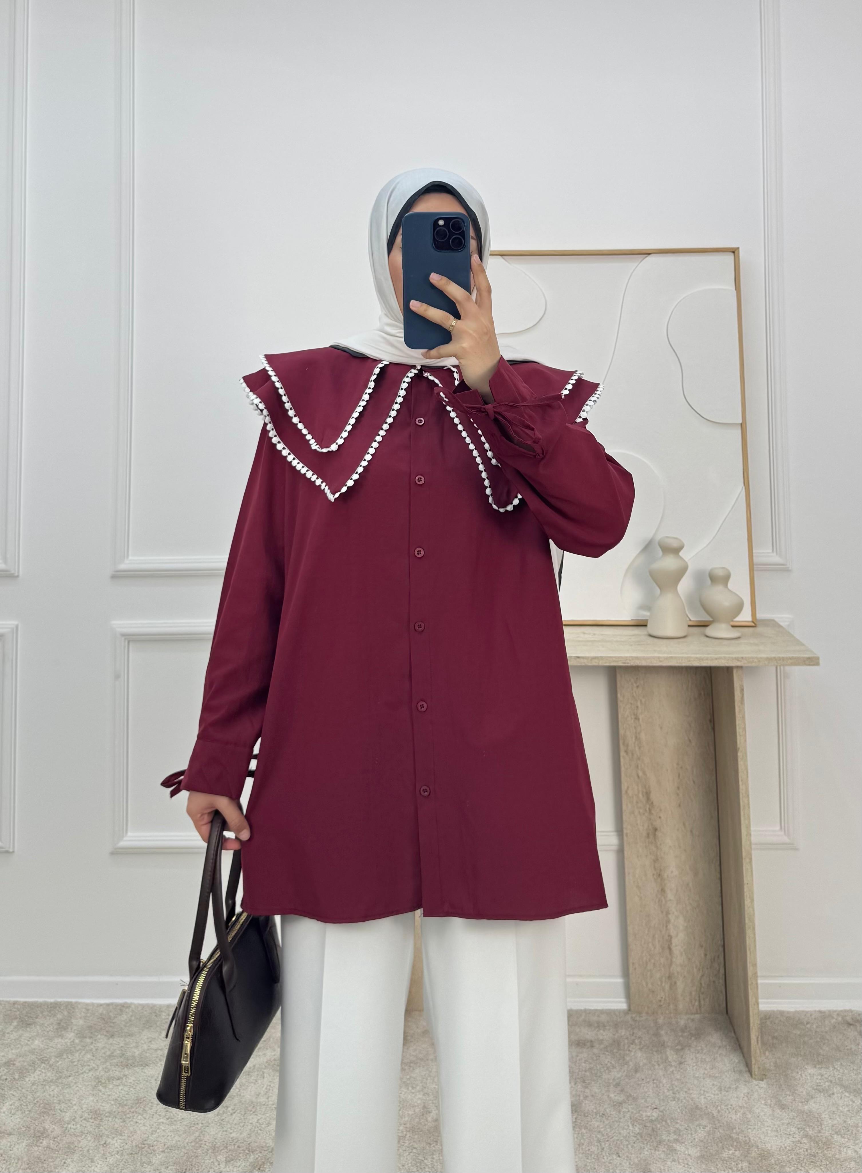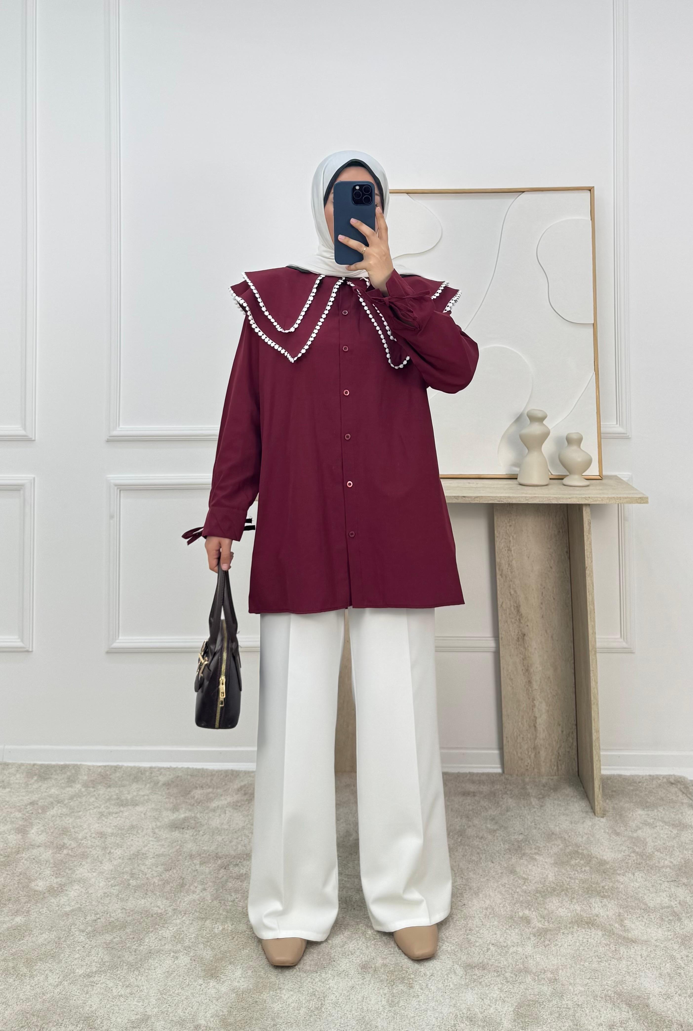 1158- terikoton kumaş bebe yaka tunik-bordo (1158)
