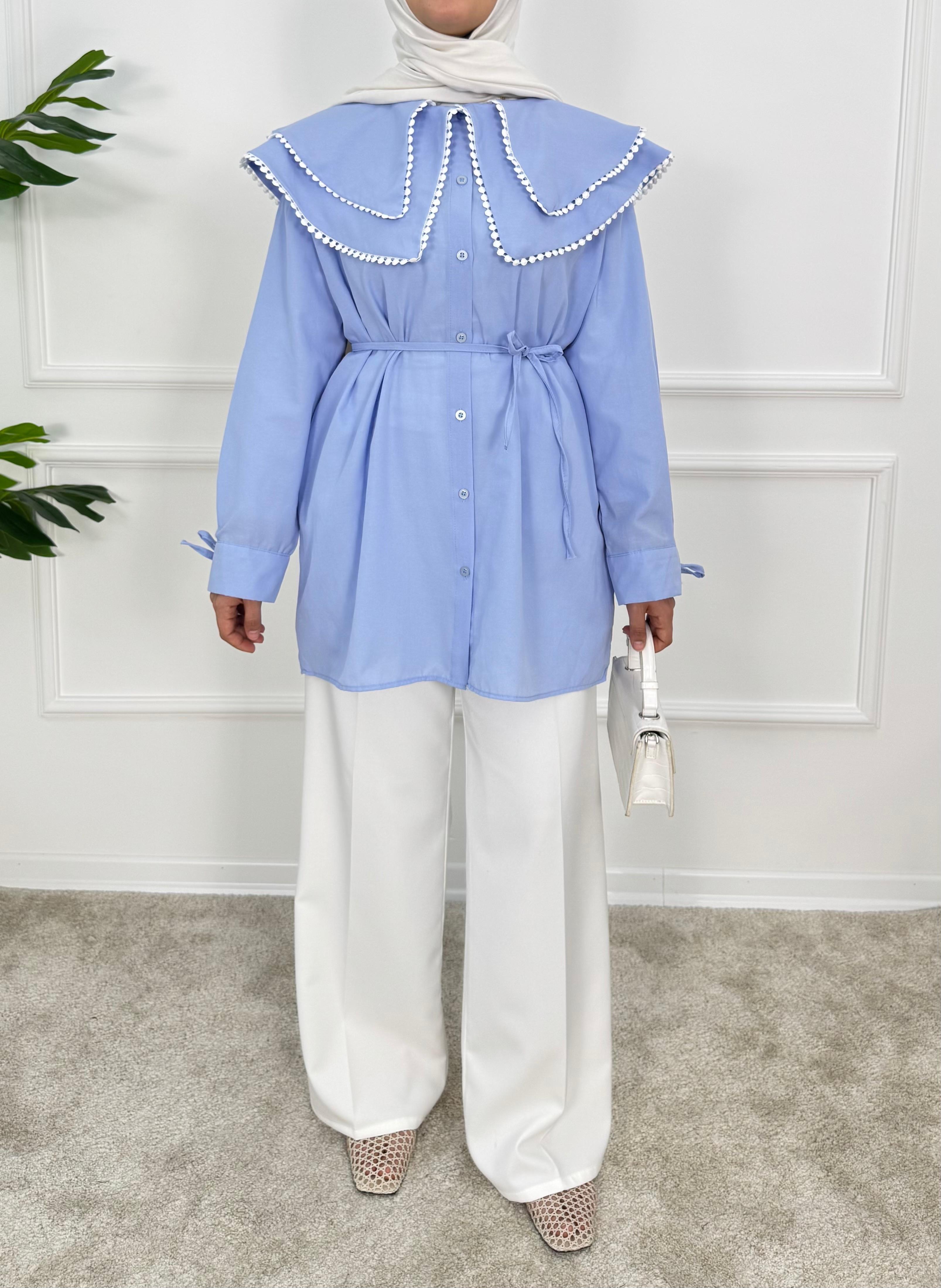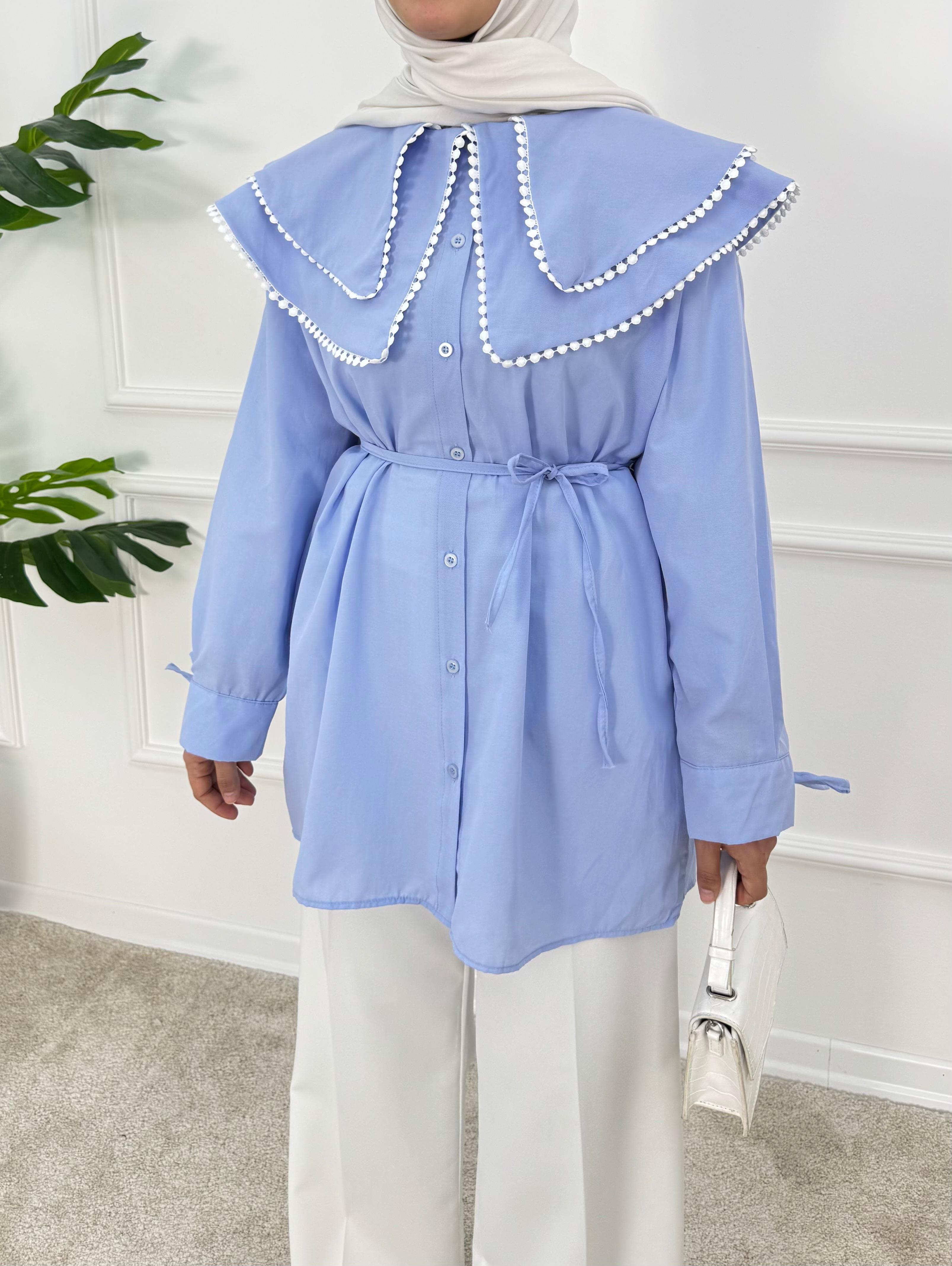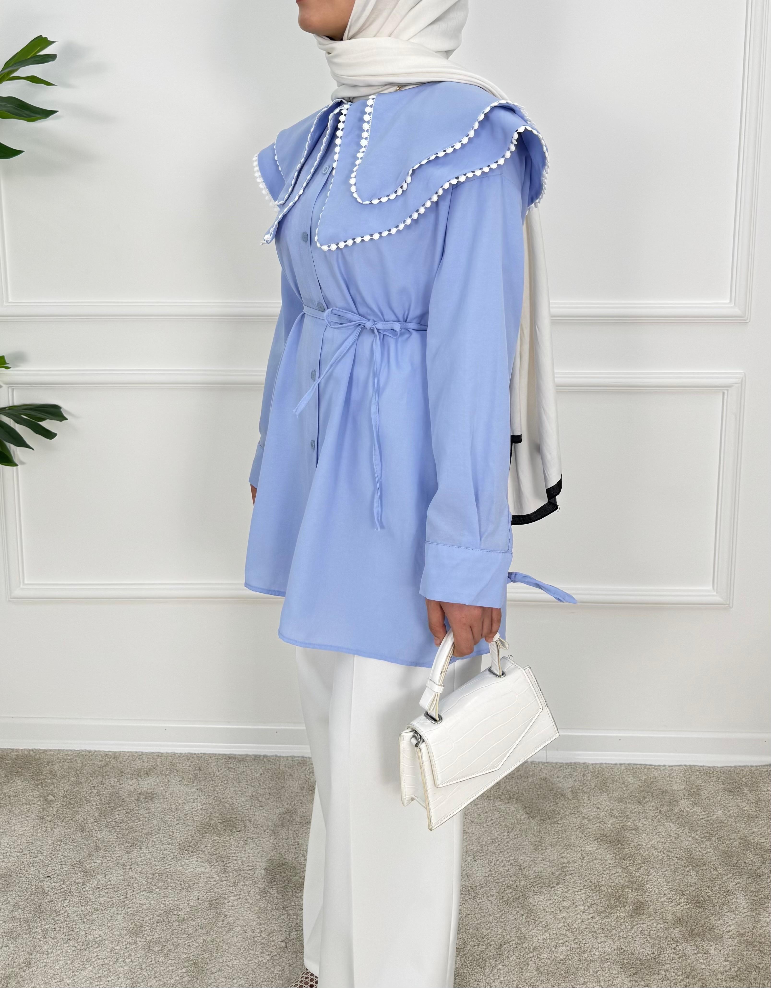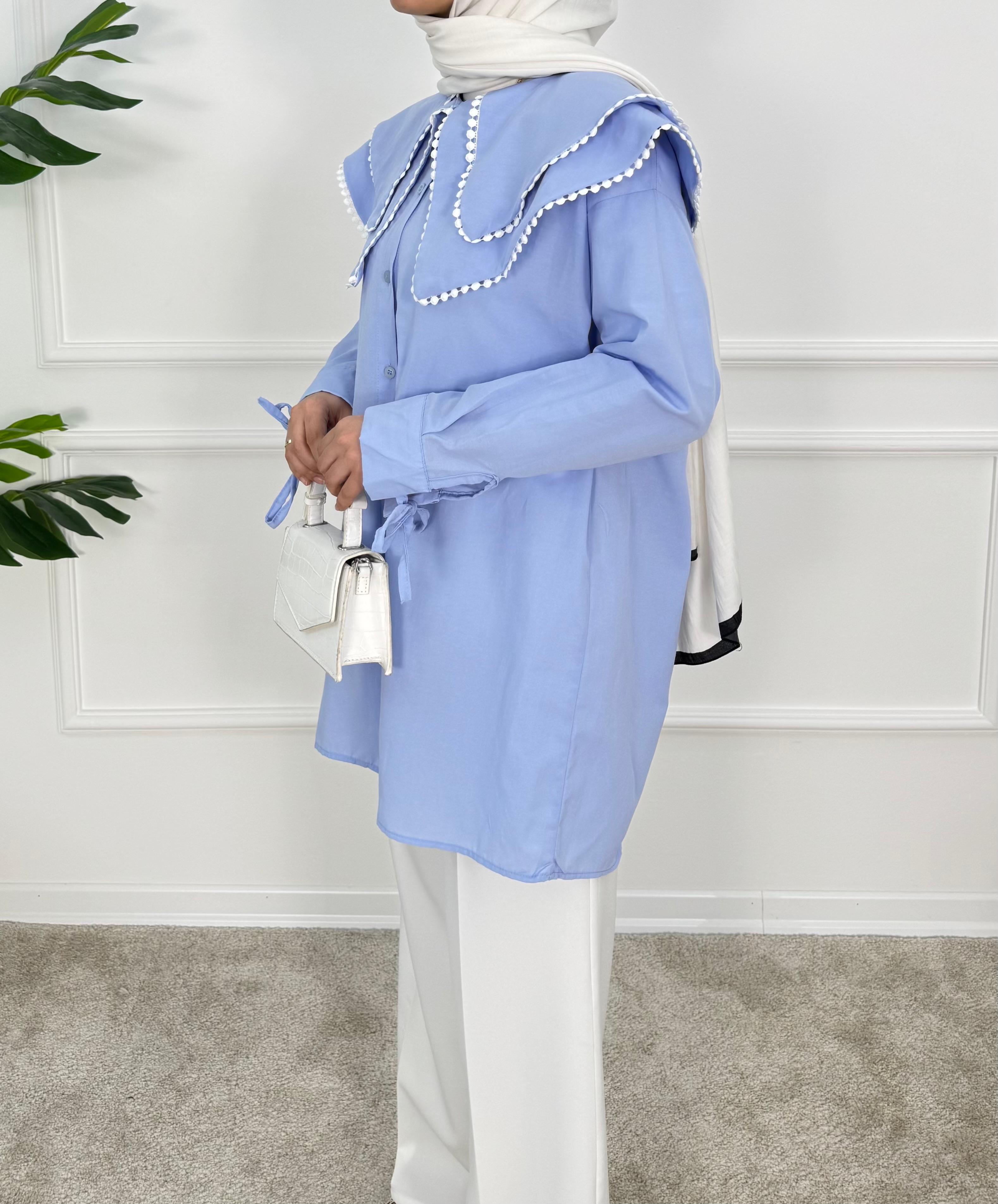 1158- terikoton kumaş bebe yaka tunik-mavi (1158)