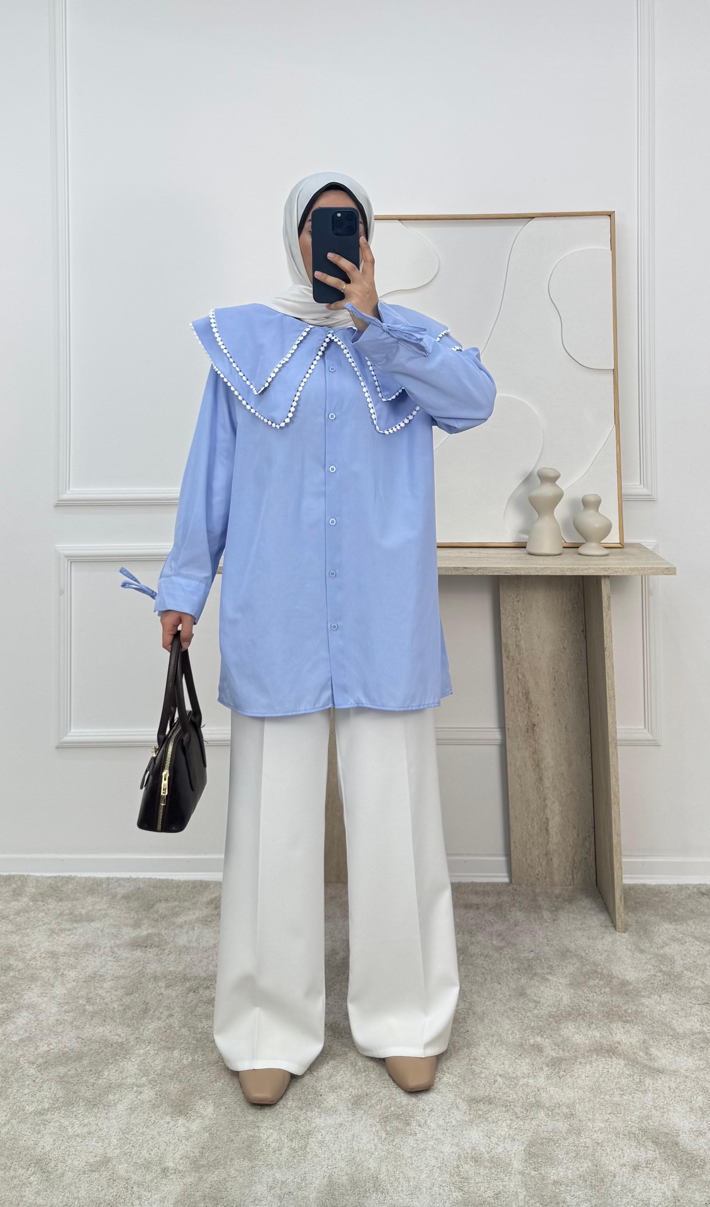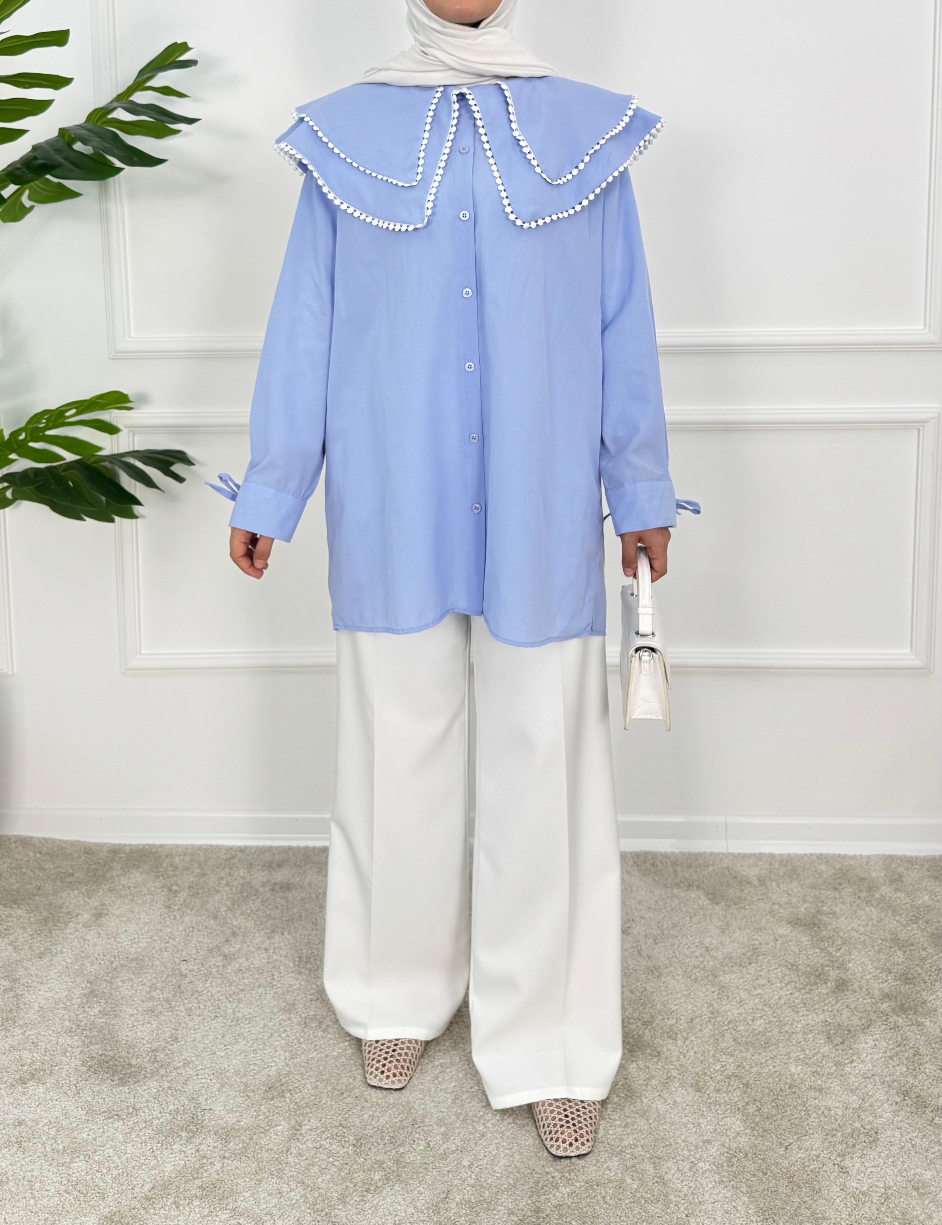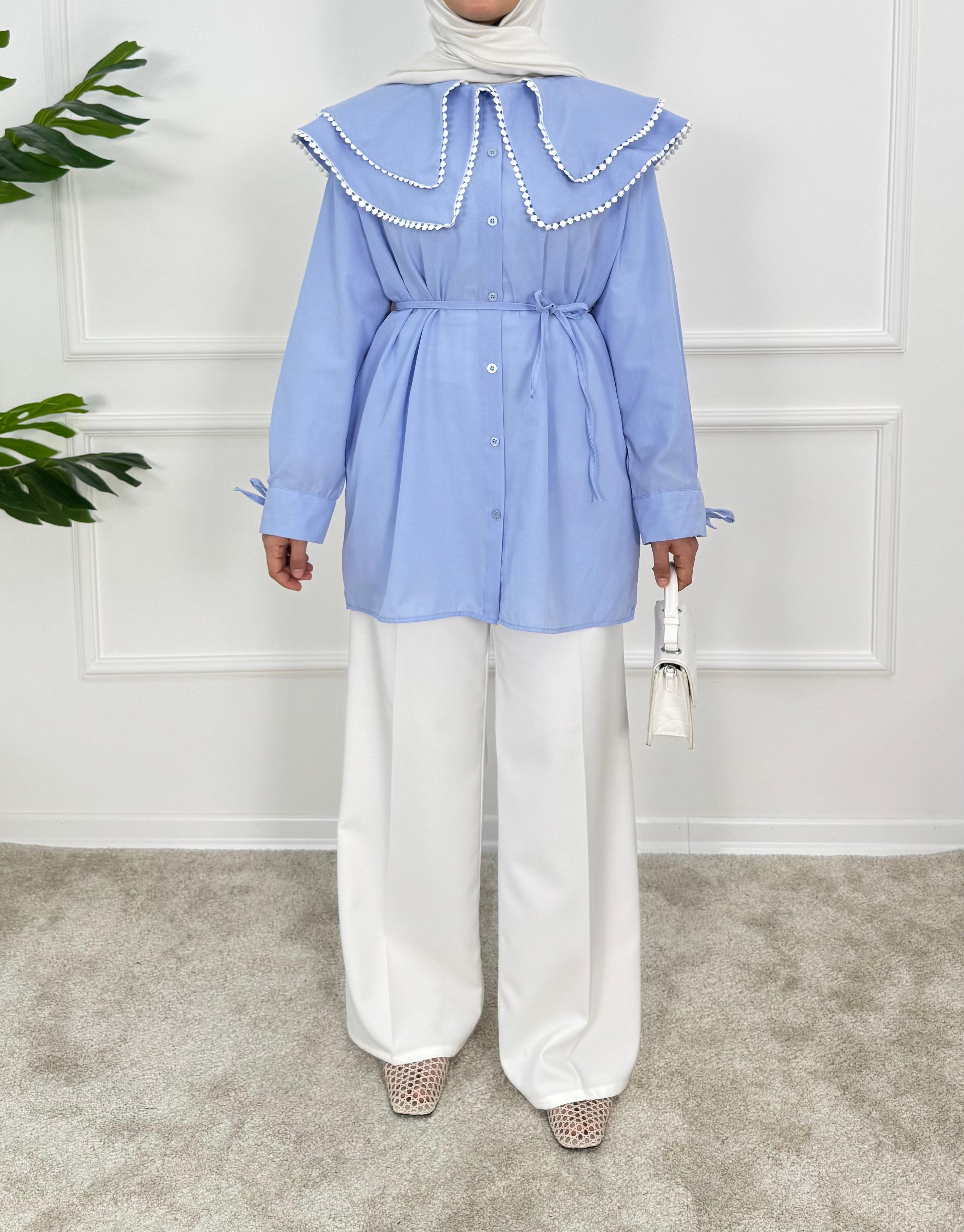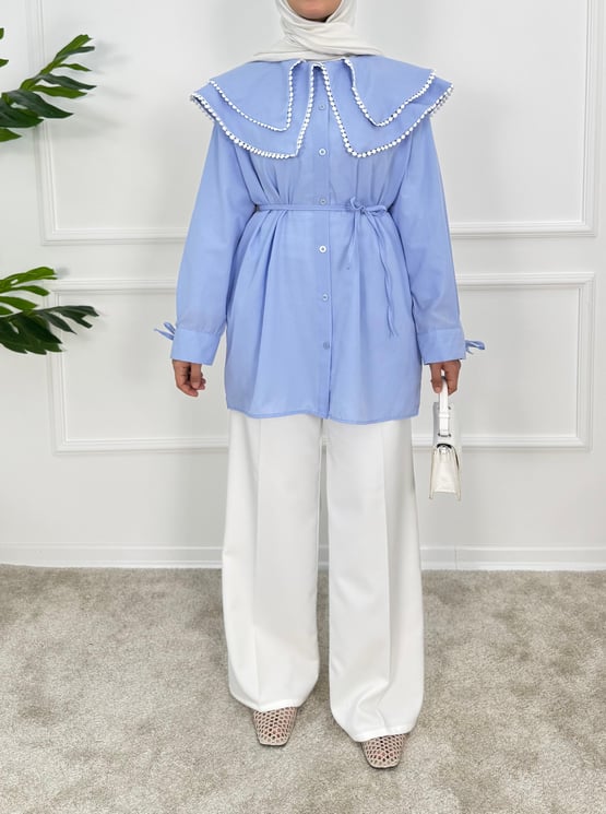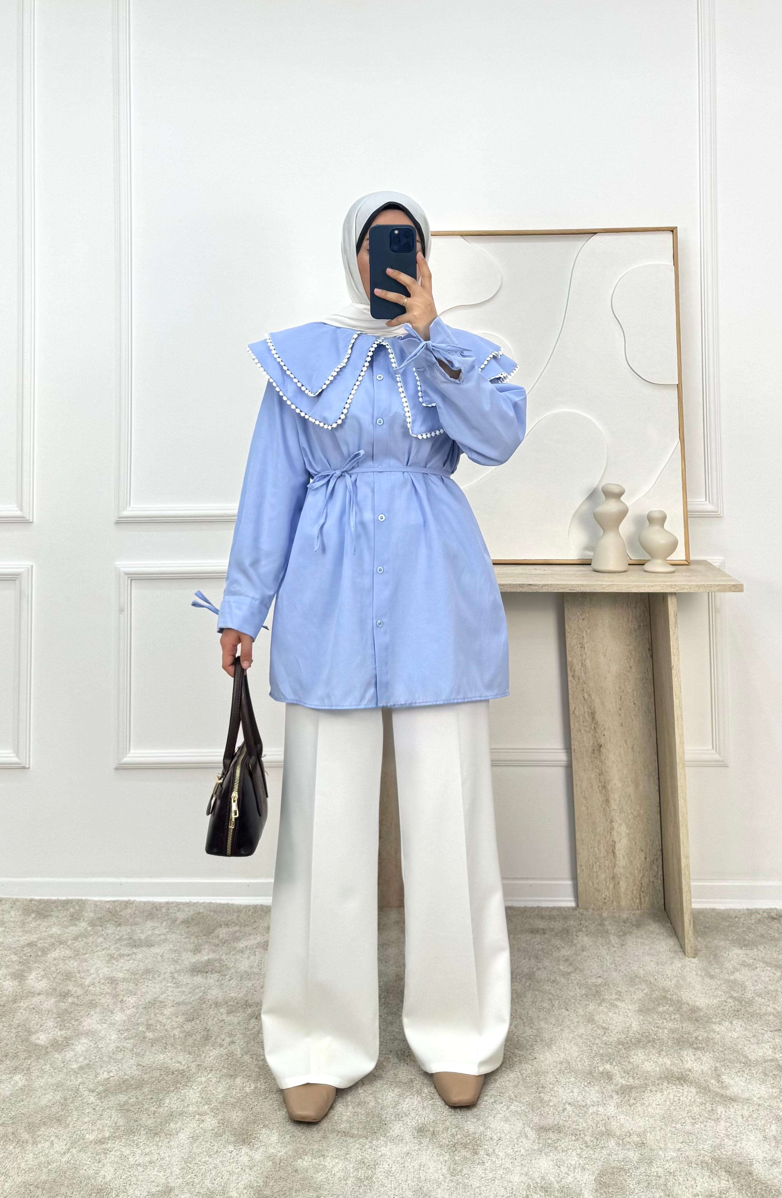 1158- terikoton kumaş bebe yaka tunik-mavi (1158)