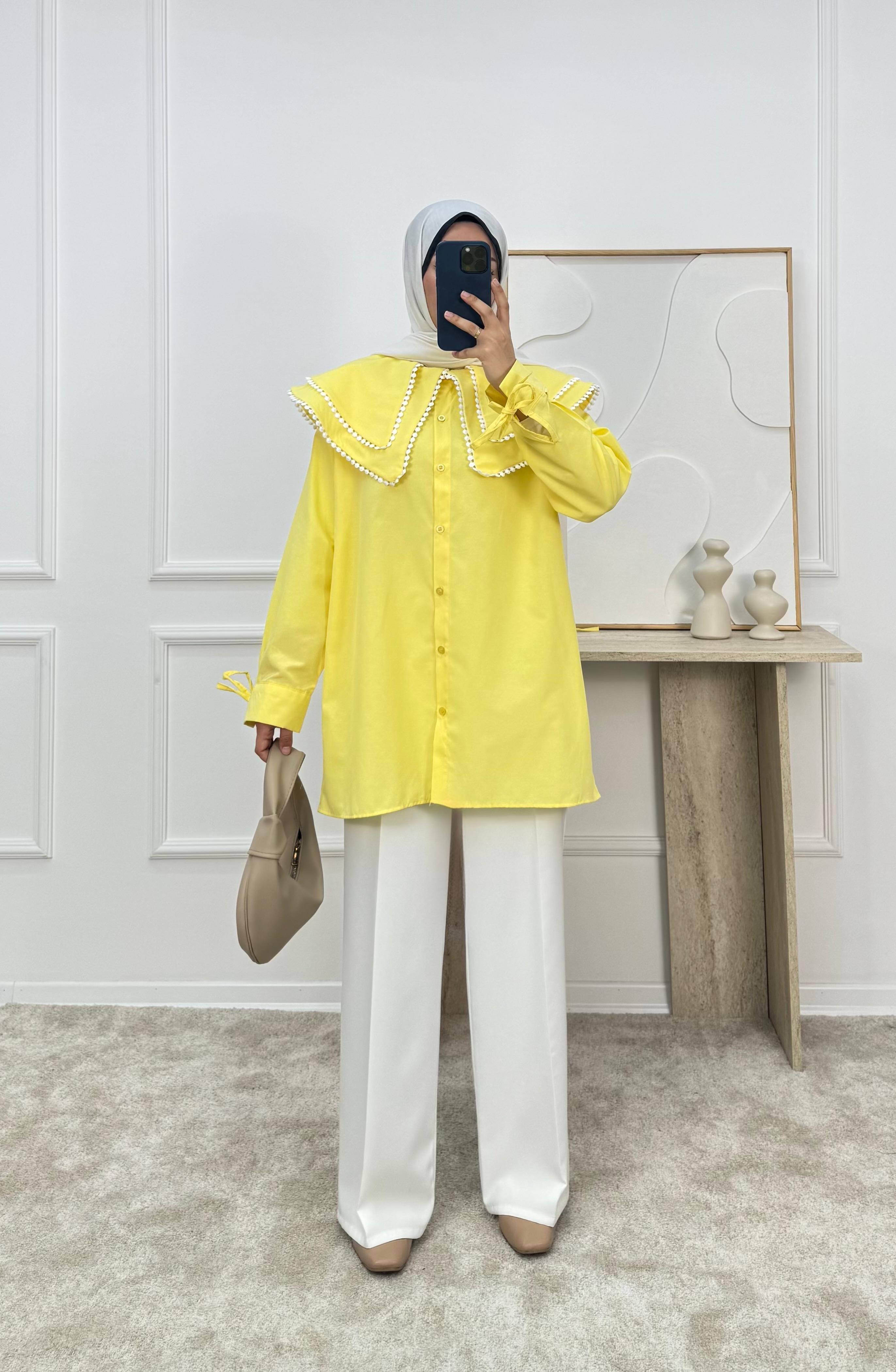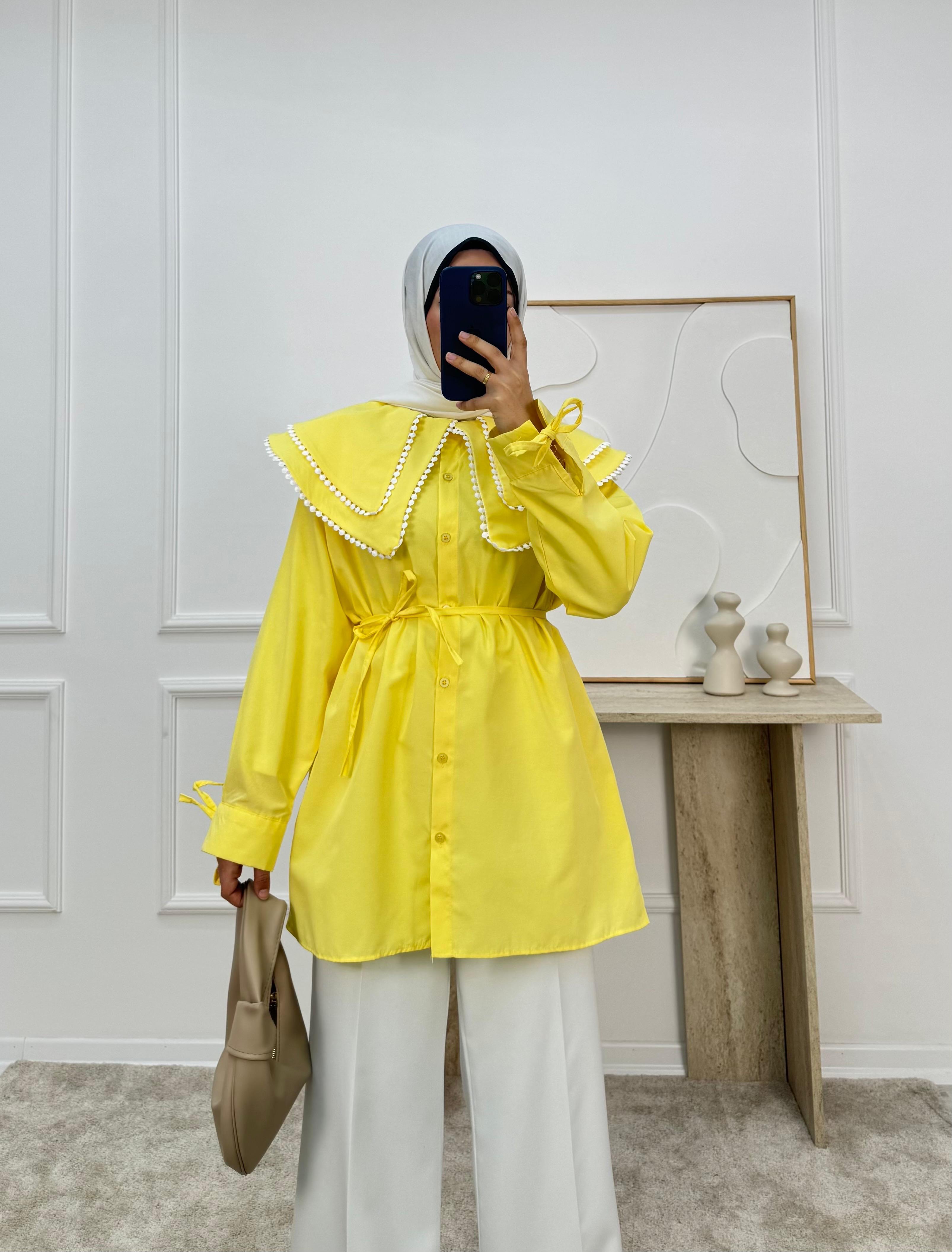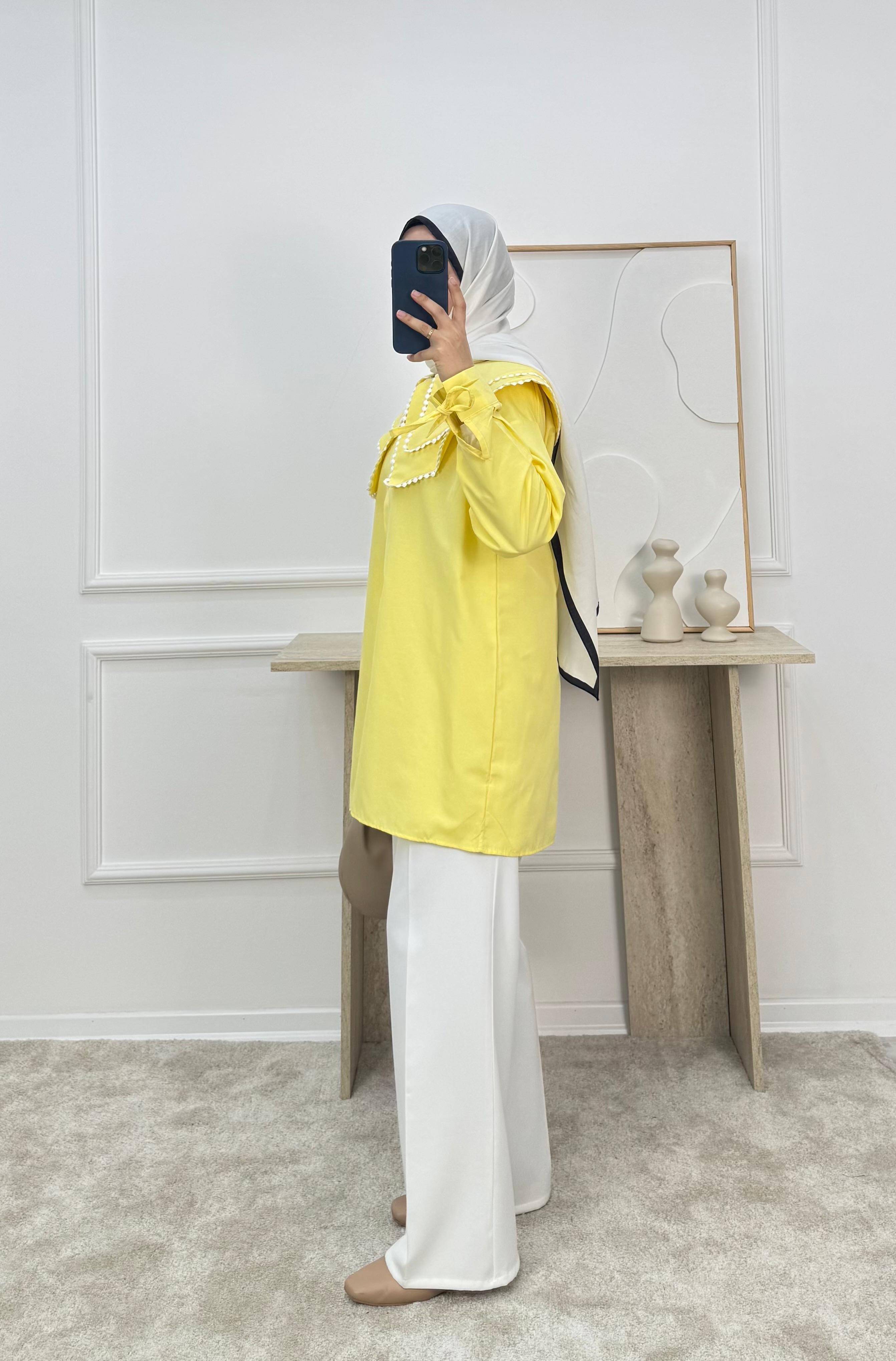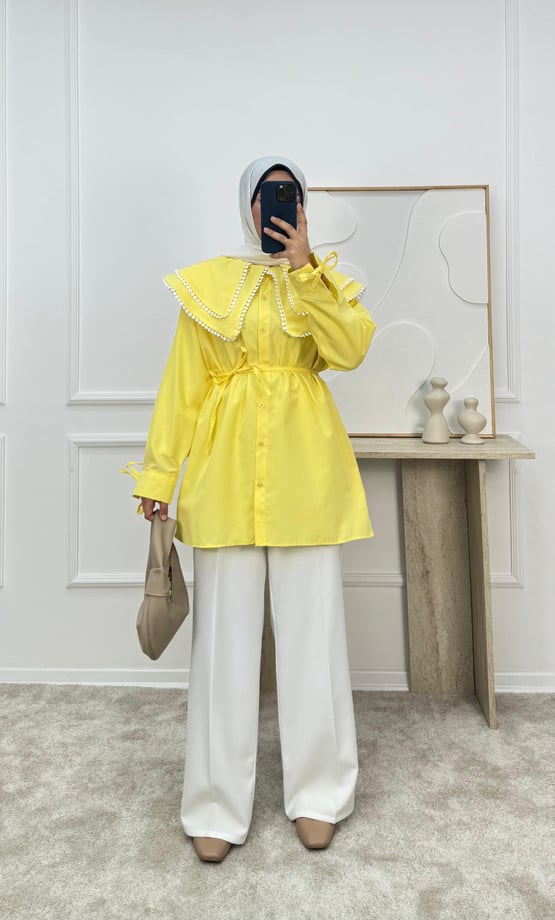 1158- terikoton kumaş bebe yaka tunik-sarı (1158)