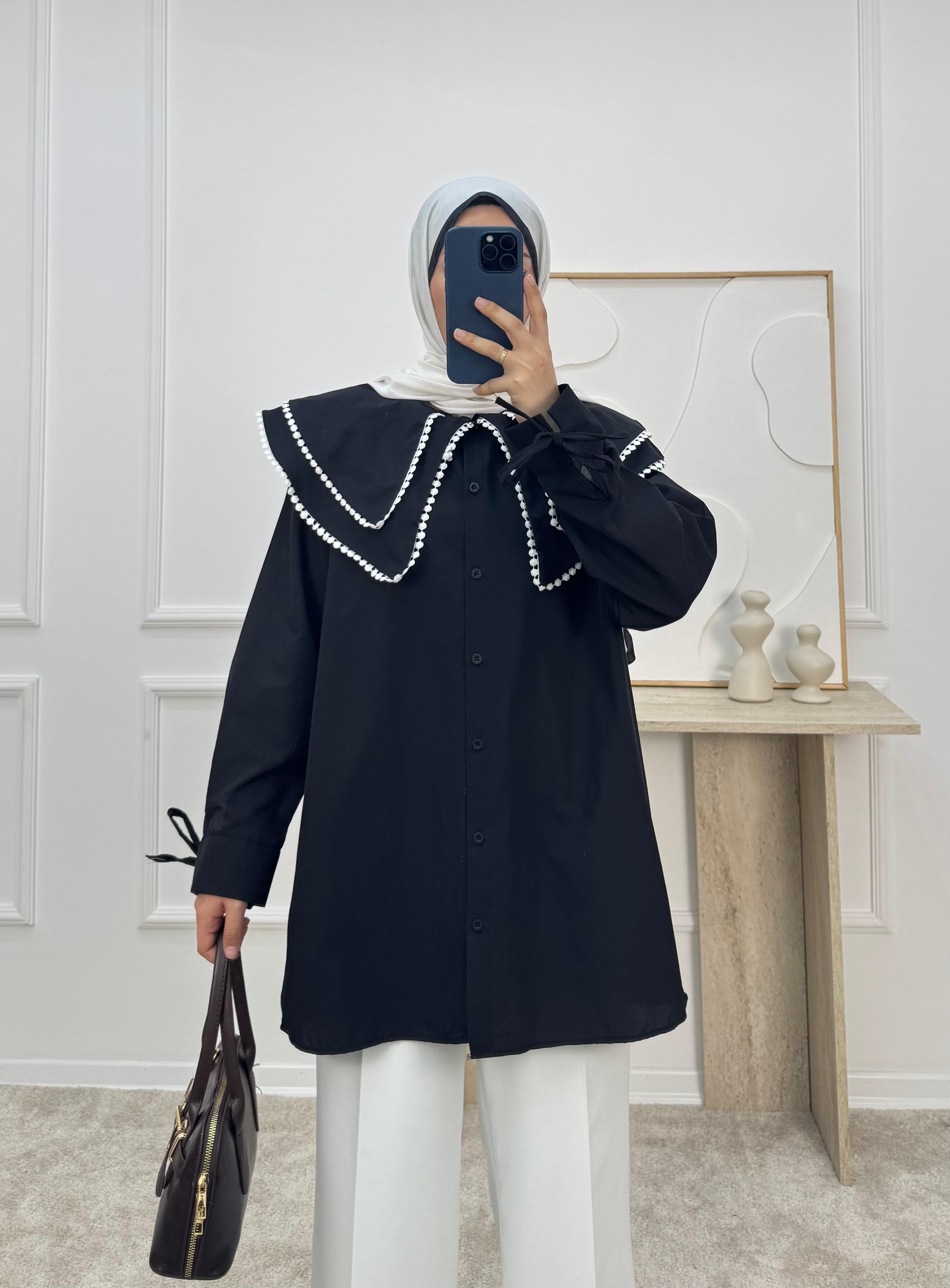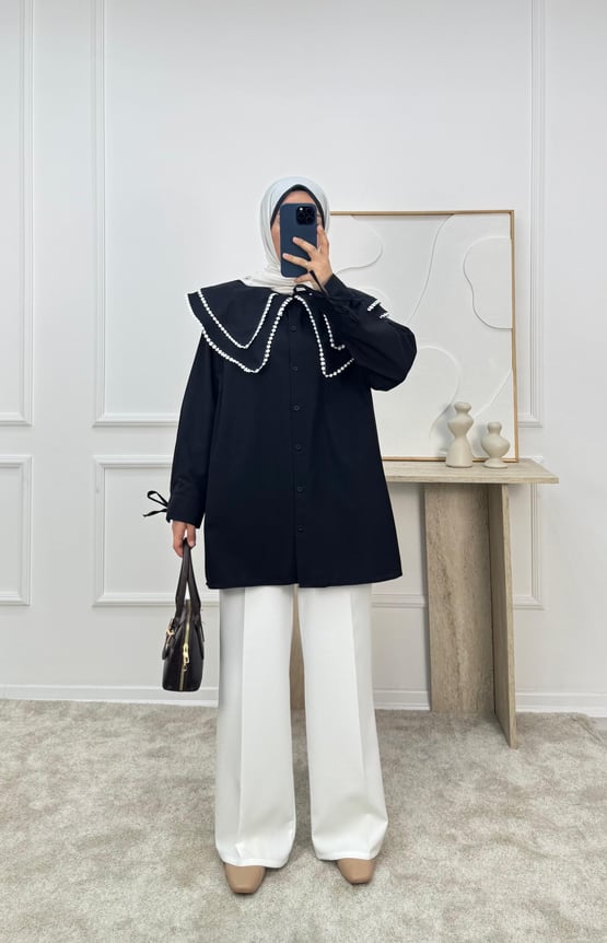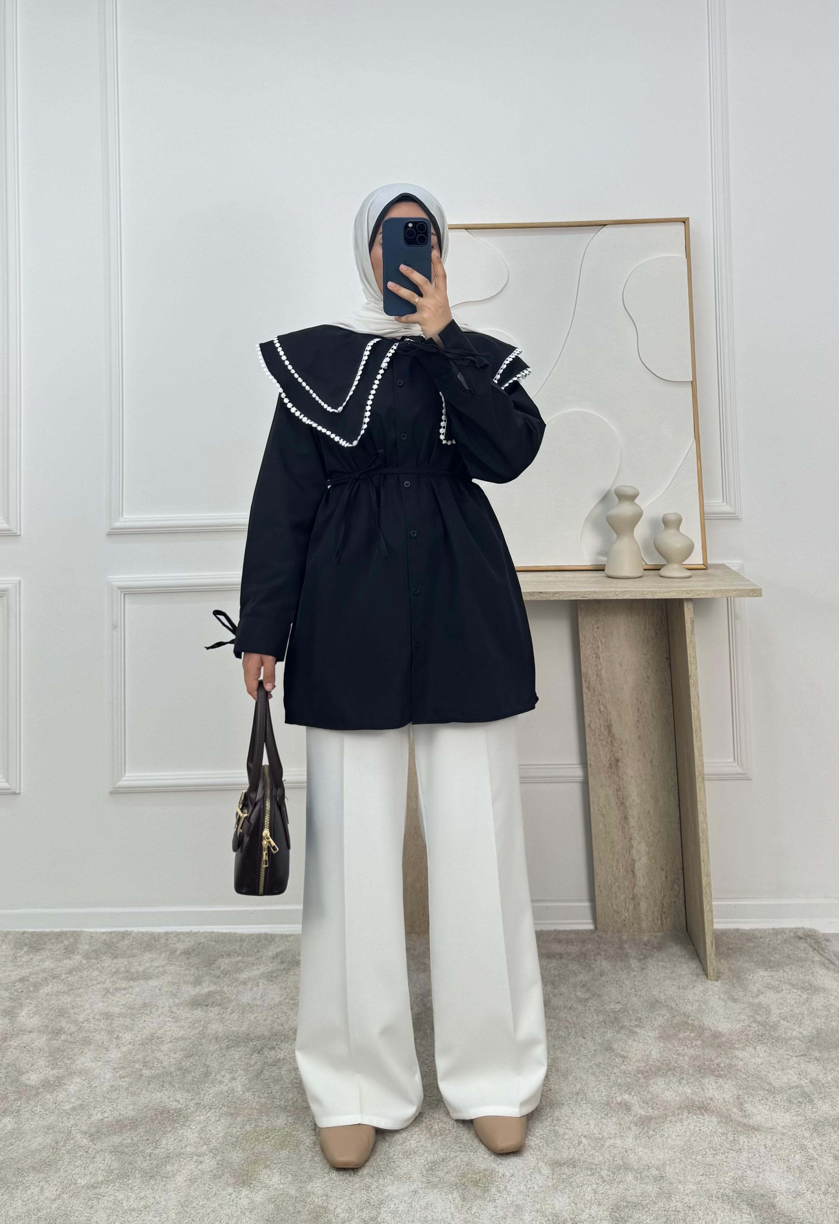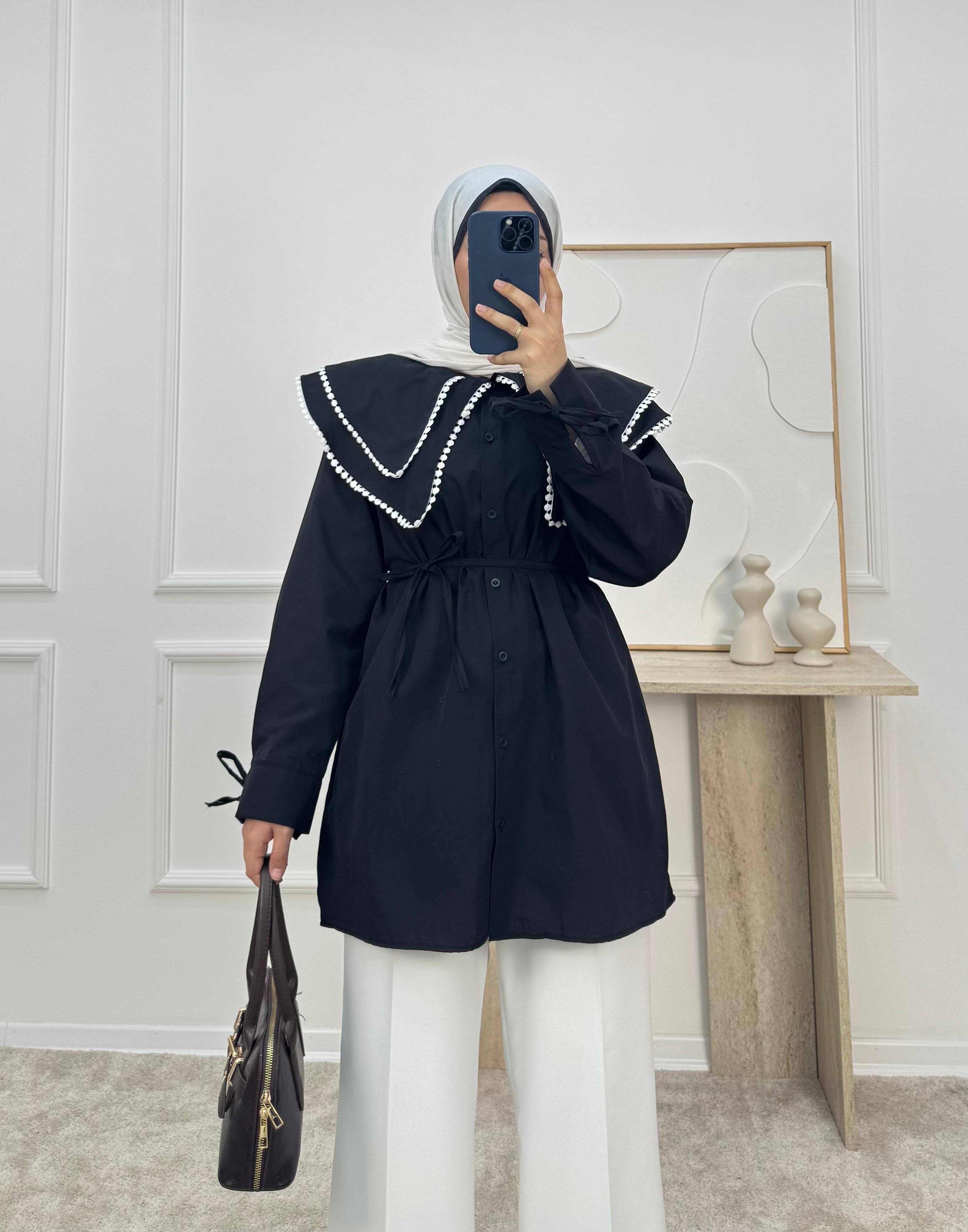 1158- terikoton kumaş bebe yaka tunik-siyah (1158)