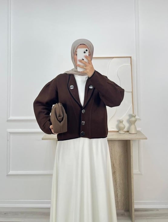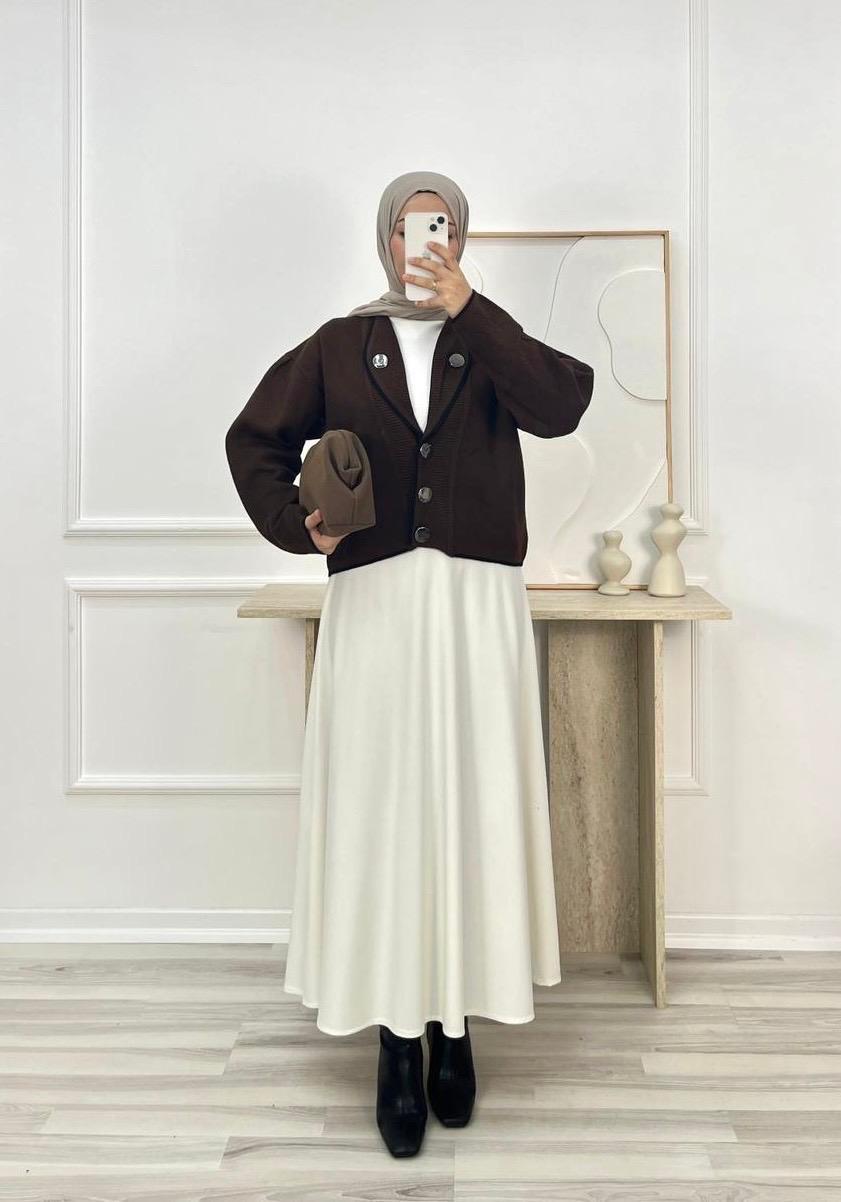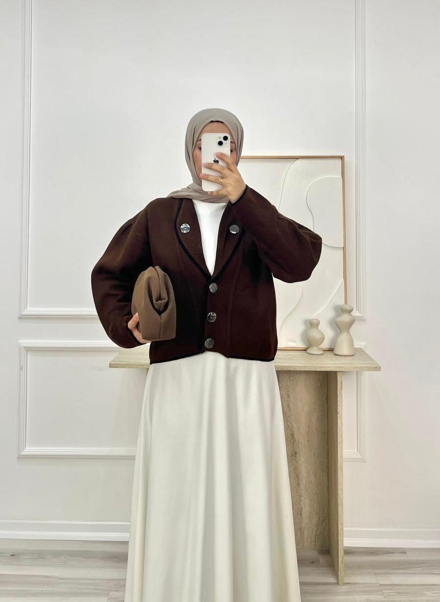 117-düğmeli çizgili triko hırka-acı kahve (117)