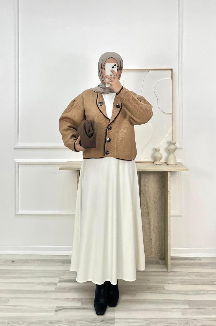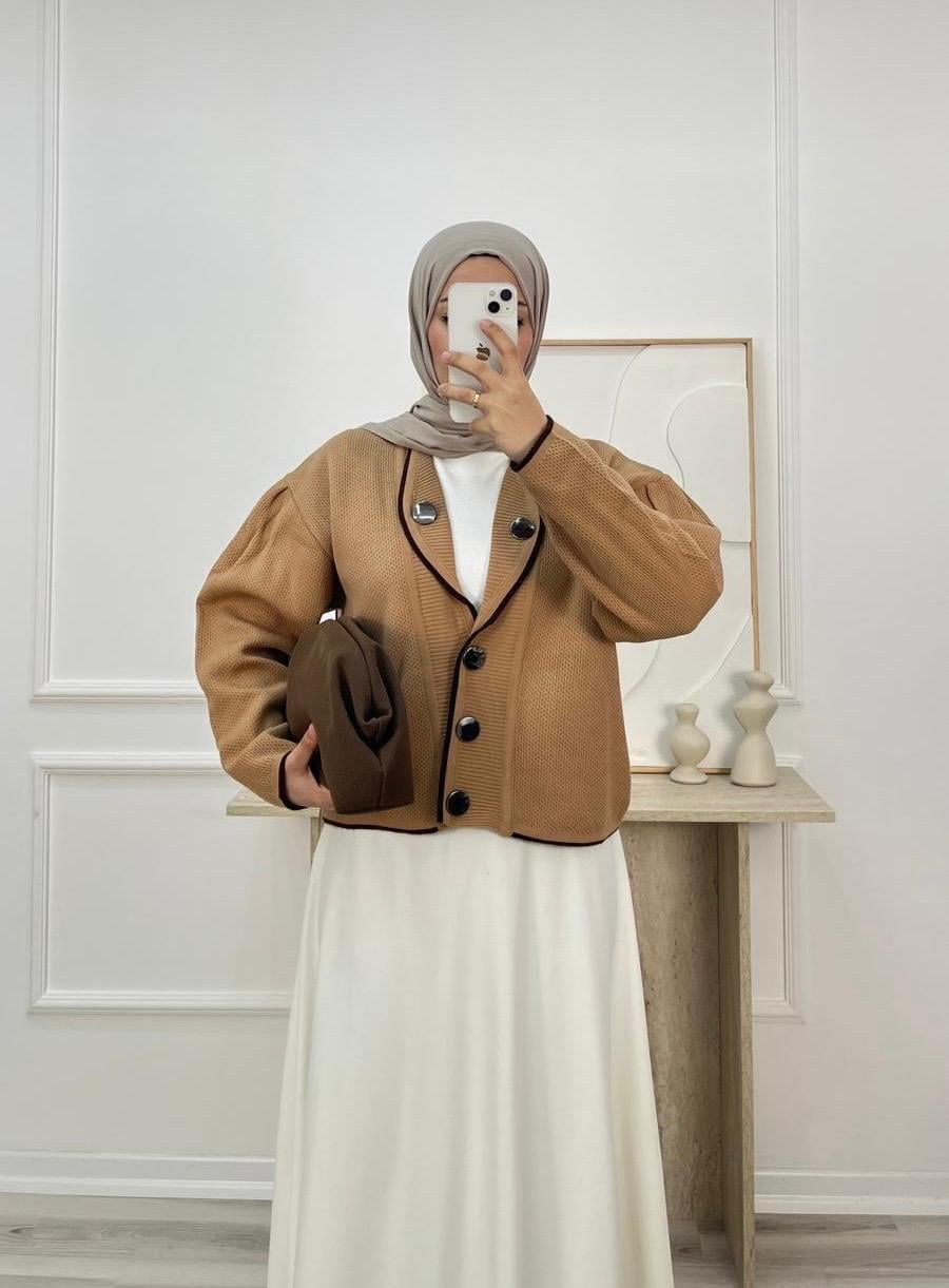 117-düğmeli çizgili triko hırka-sütlü kahve (117)