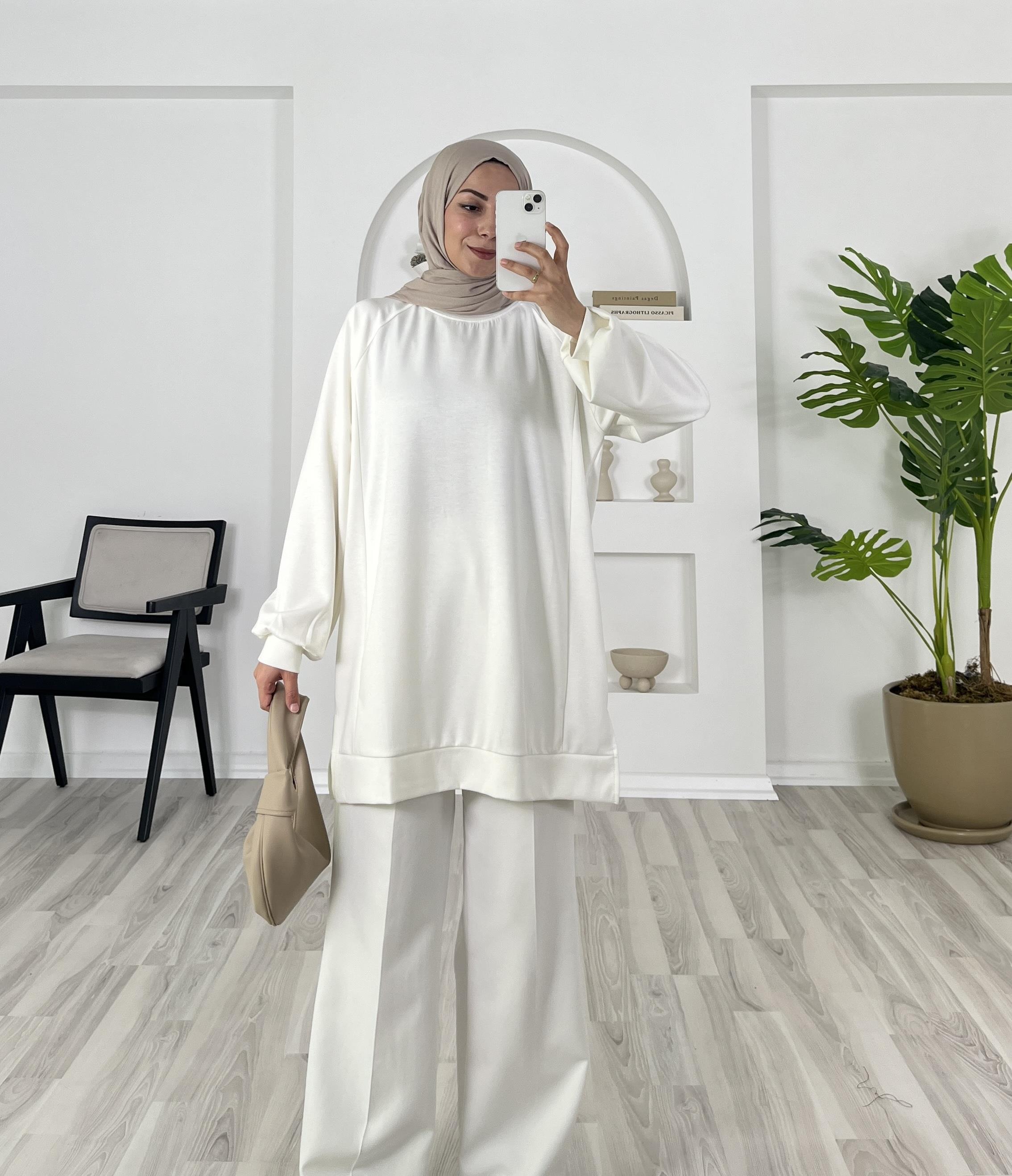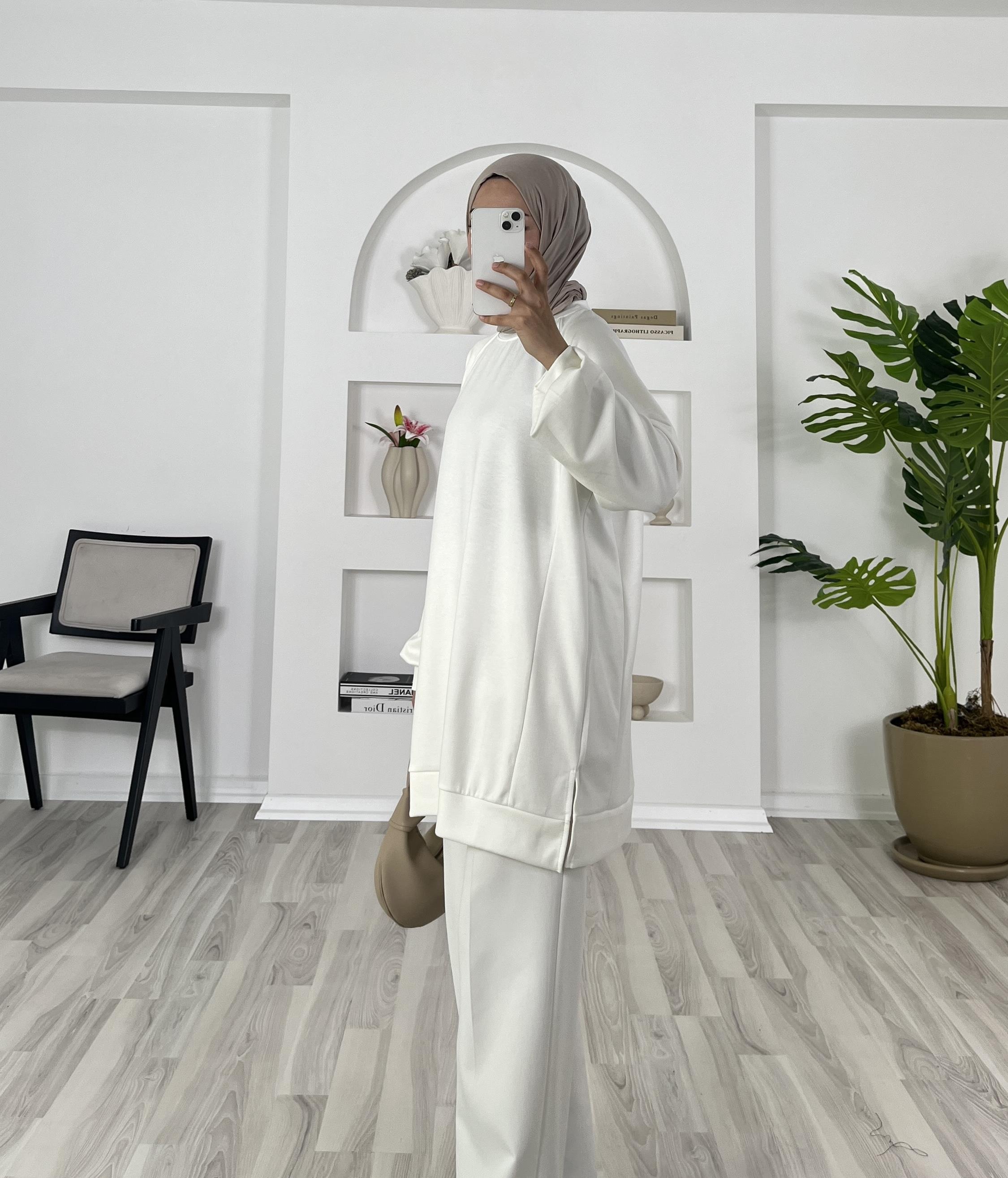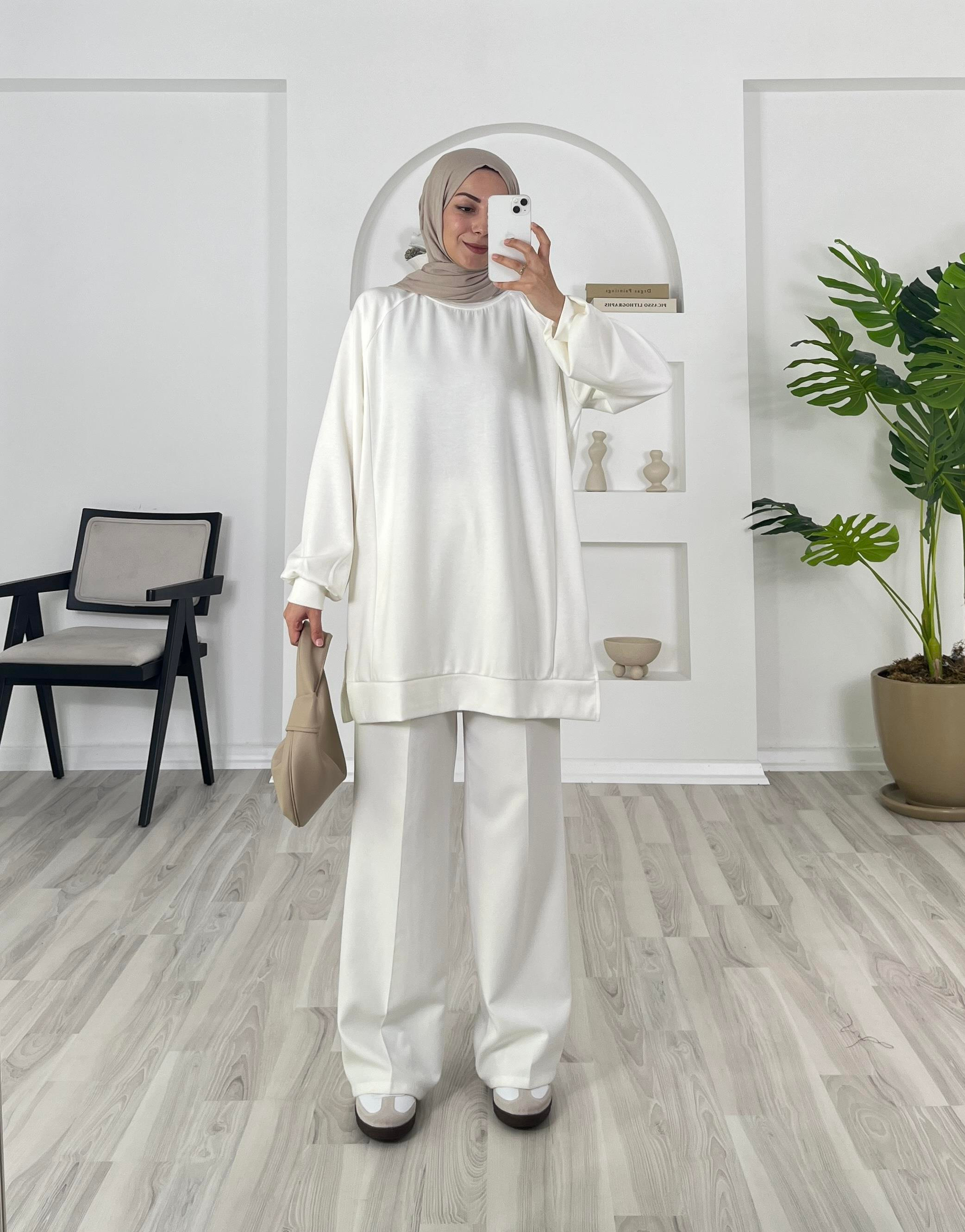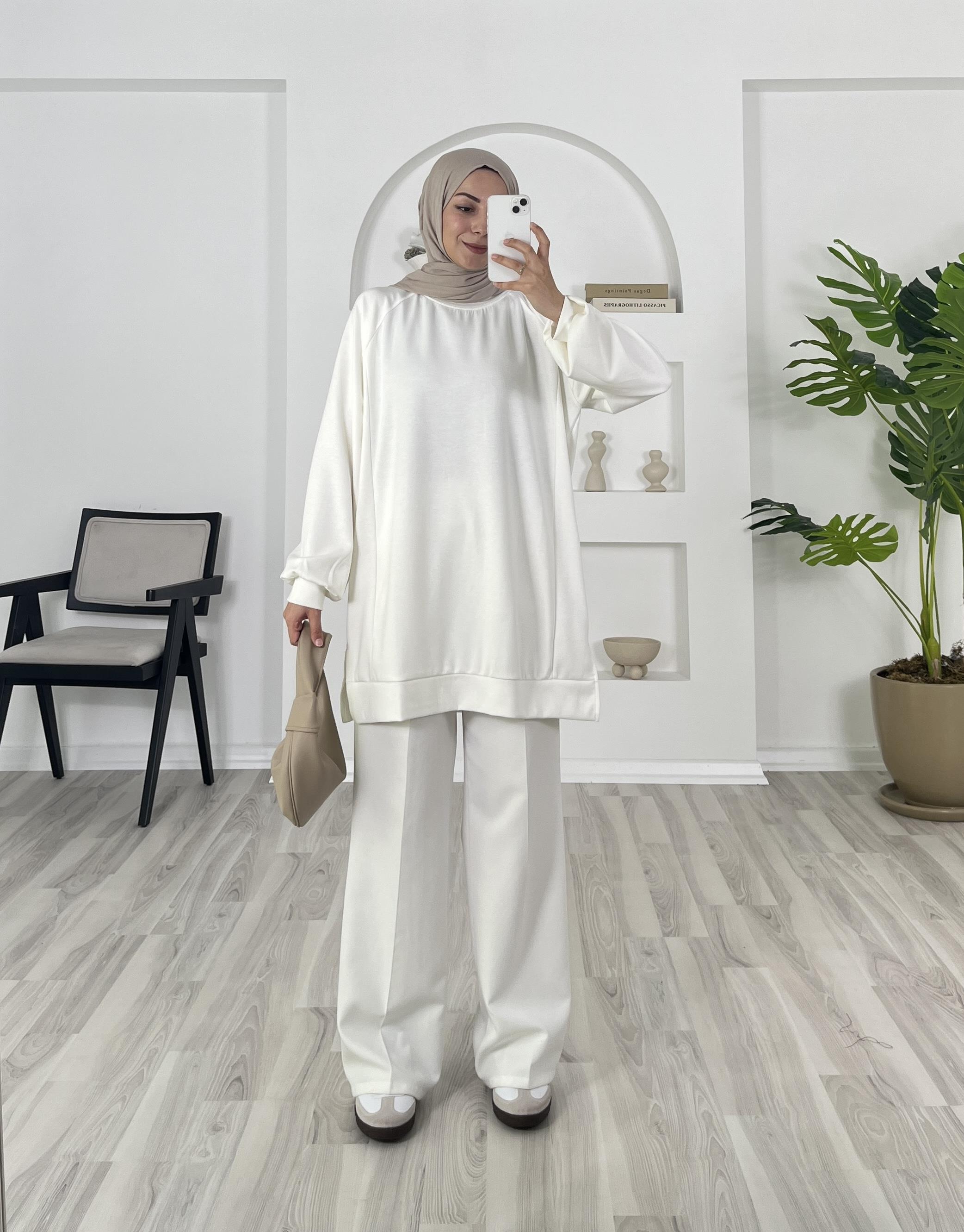 1193 - oysho kumaş yanları yırtmaçlı tunik - beyaz (1193)
