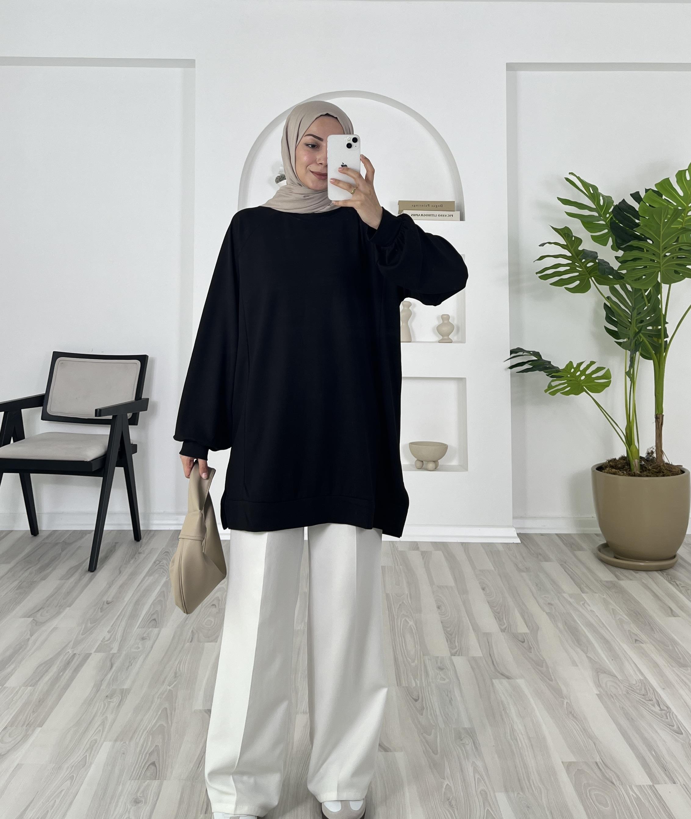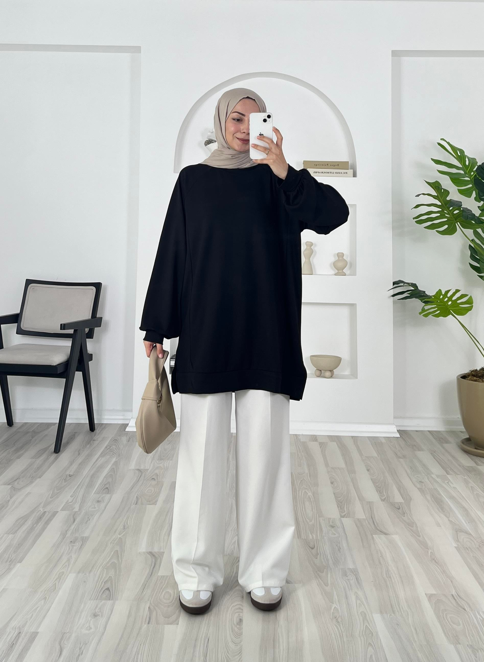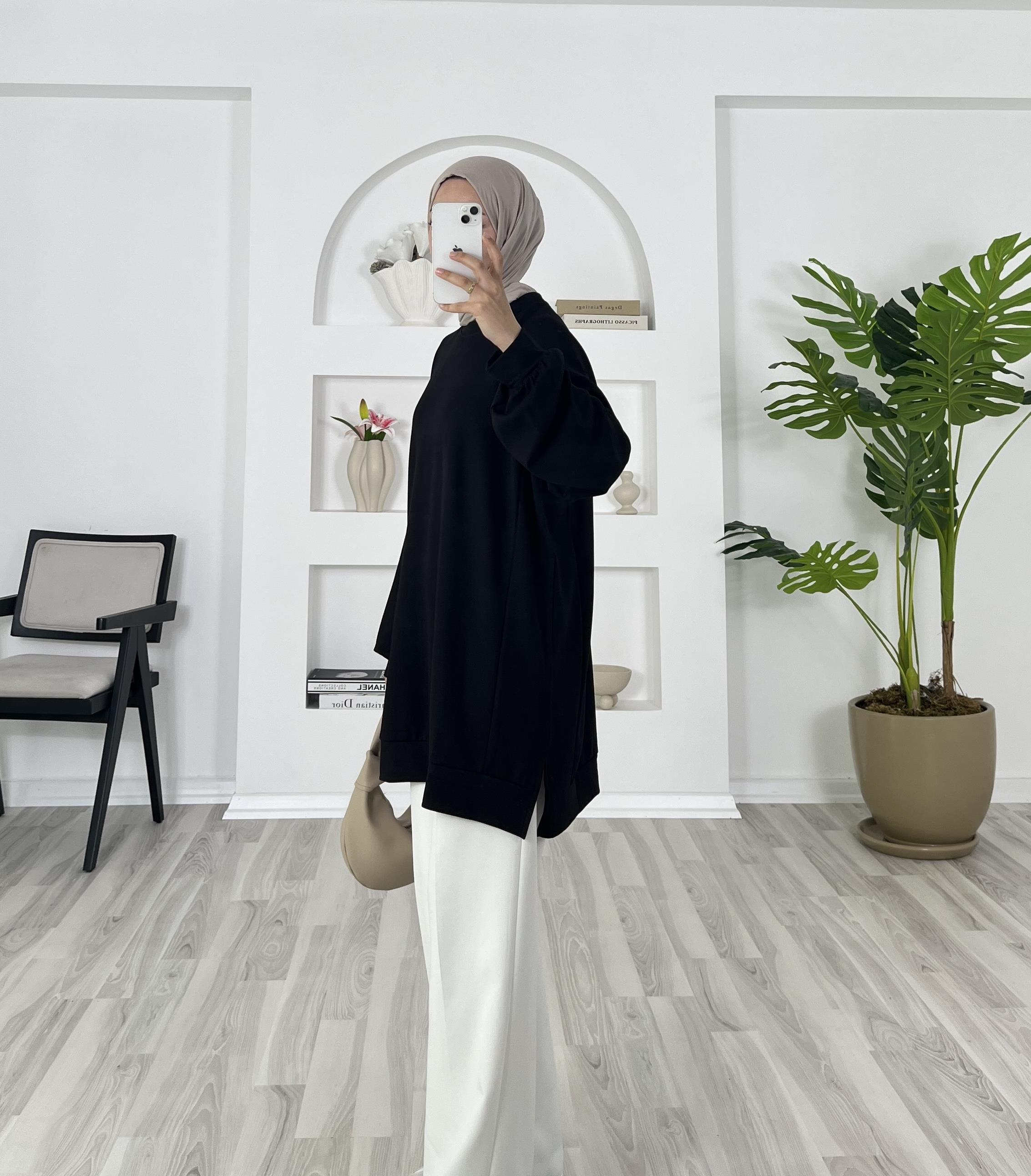 1193 - oysho kumaş yanları yırtmaçlı tunik - siyah (1193)
