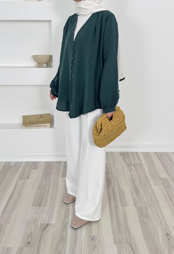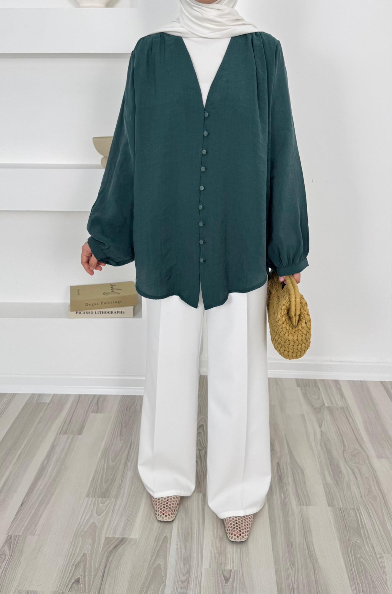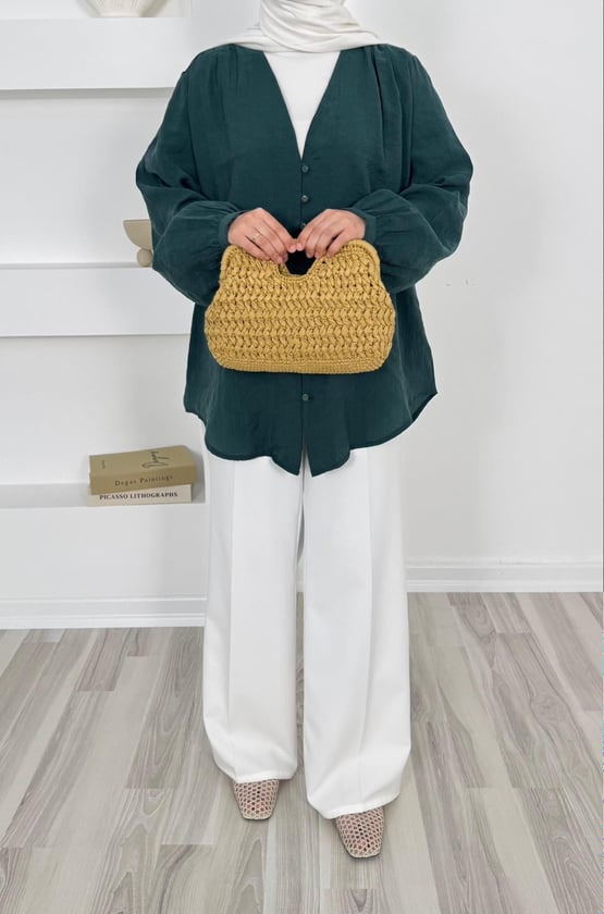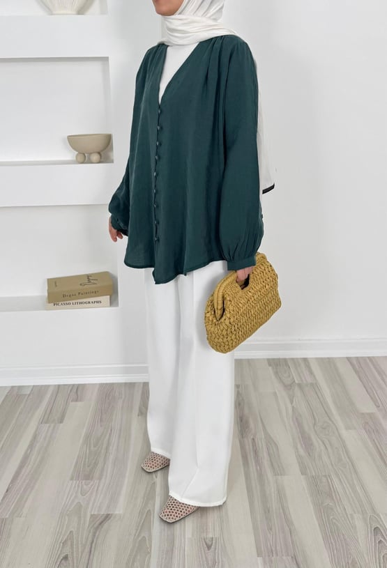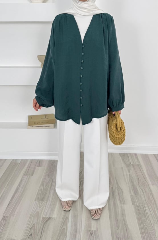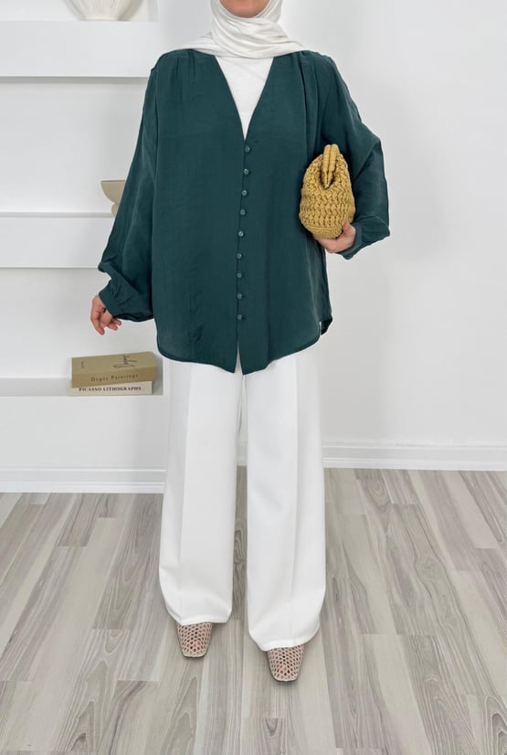 1200-modal cupra kumaş önü biyeli tunik-yeşil (1200)
