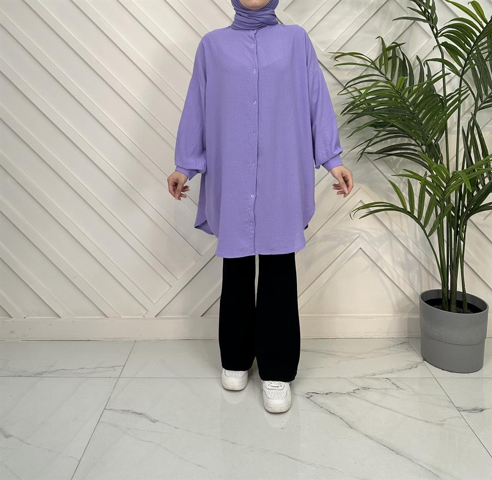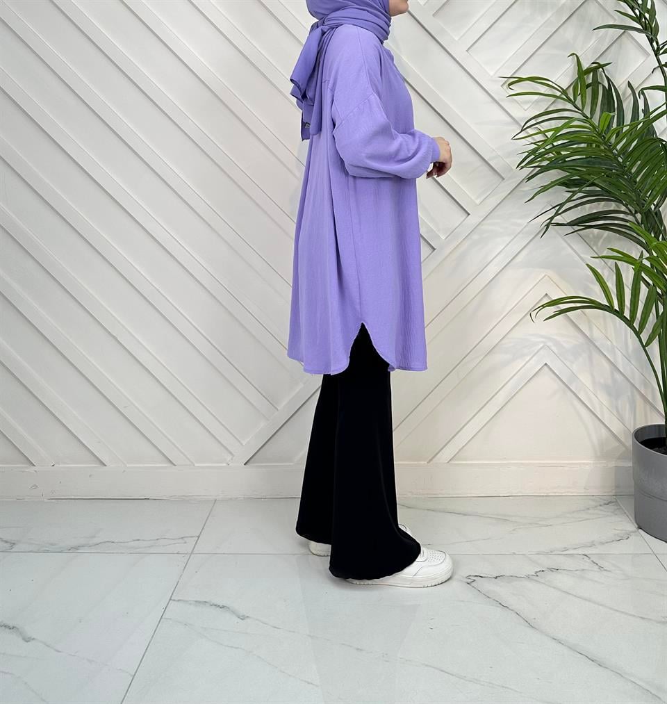 12037 M51+Q ayrobin kumaş boydan düğmeli tunik lila (12037 L97..)