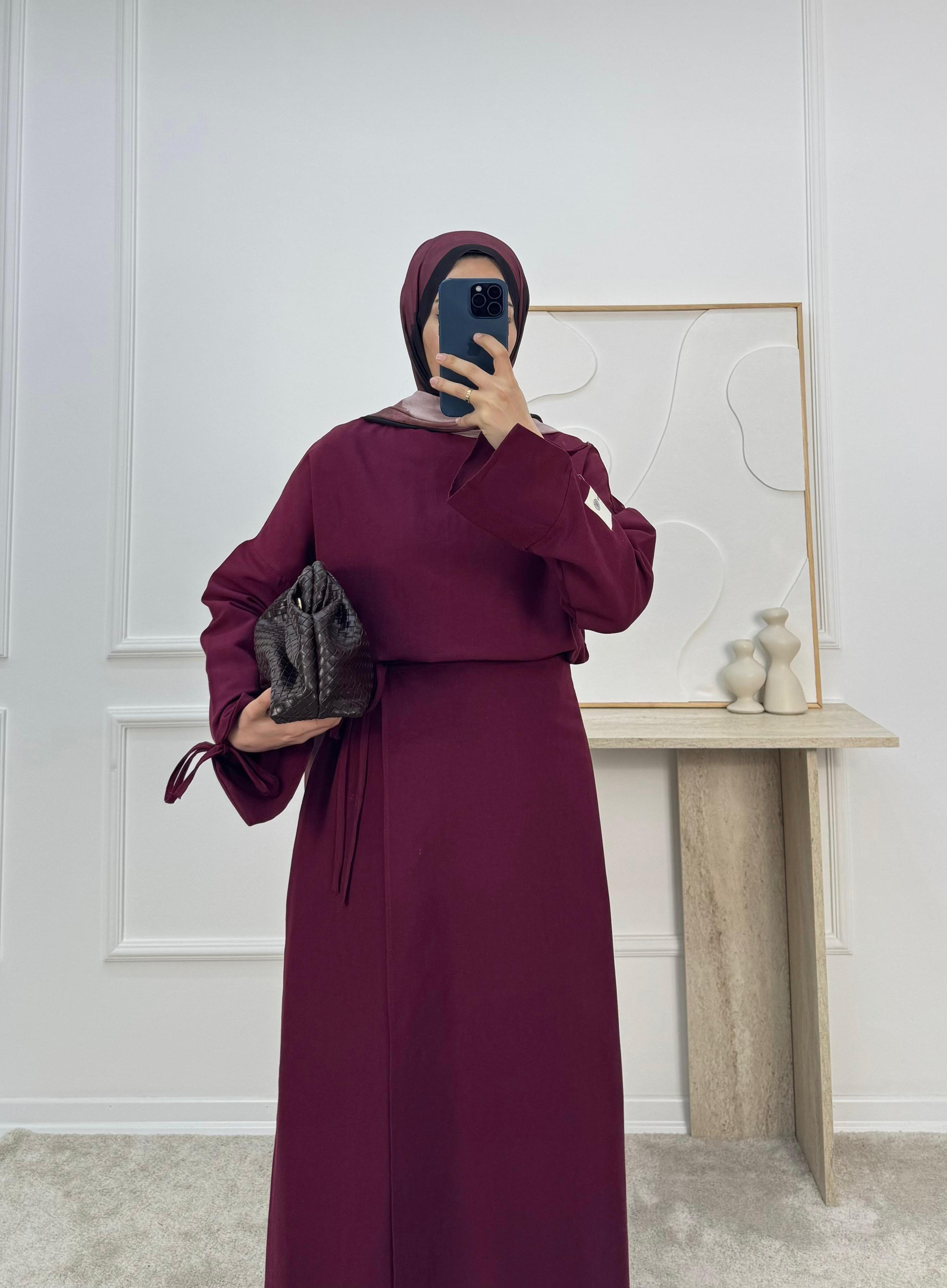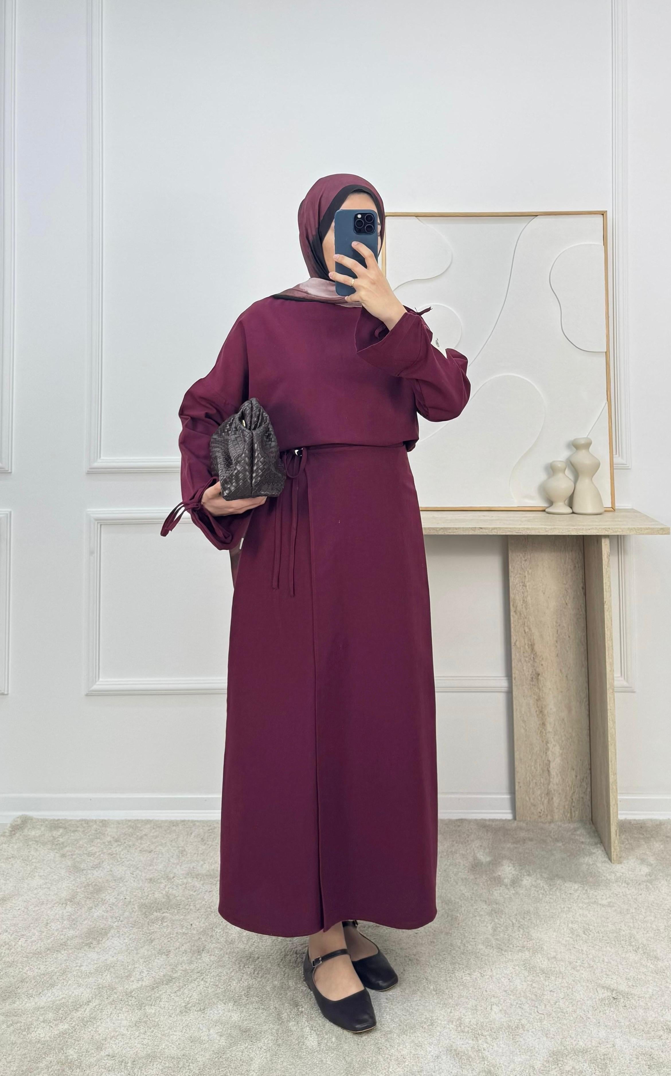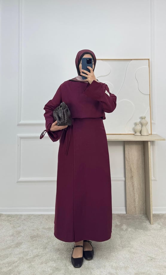 1306-keten kumaş etekli takım -bordo (1306)