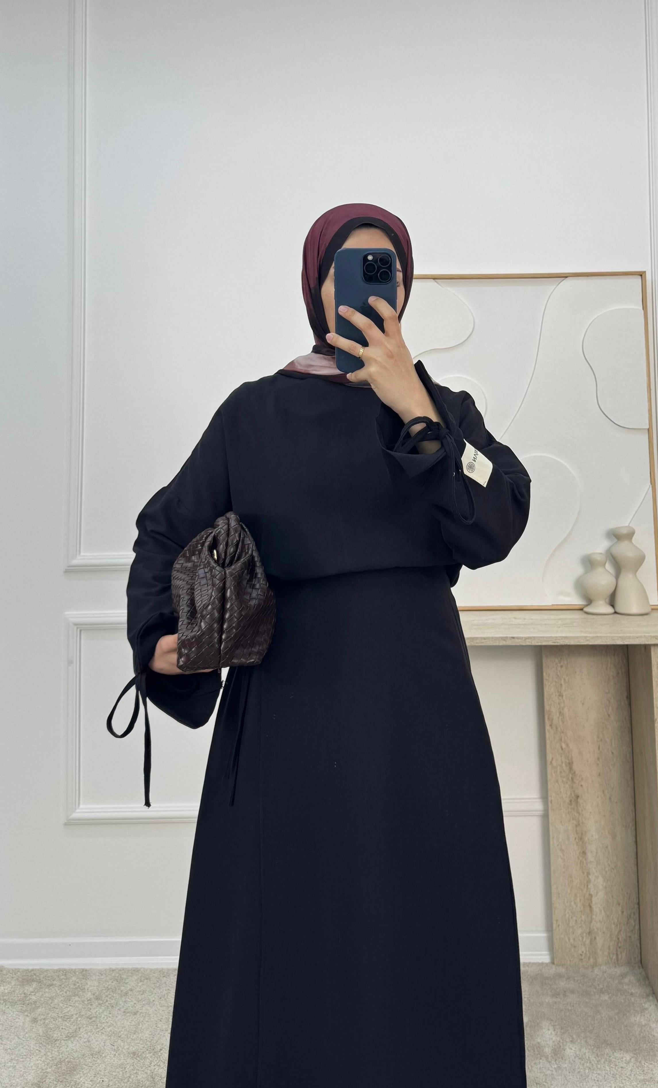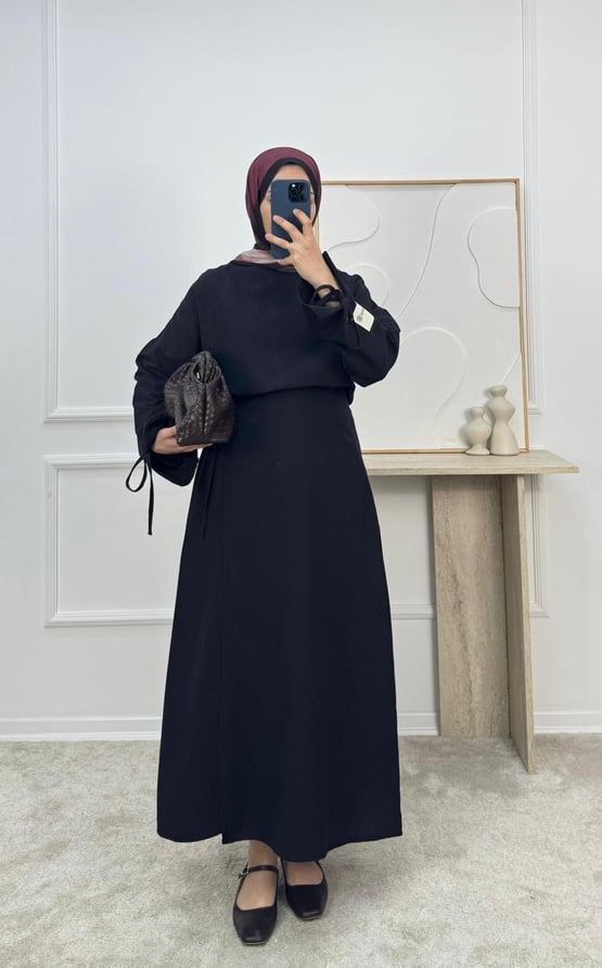 1306-keten kumaş etekli takım -siyah (1306)