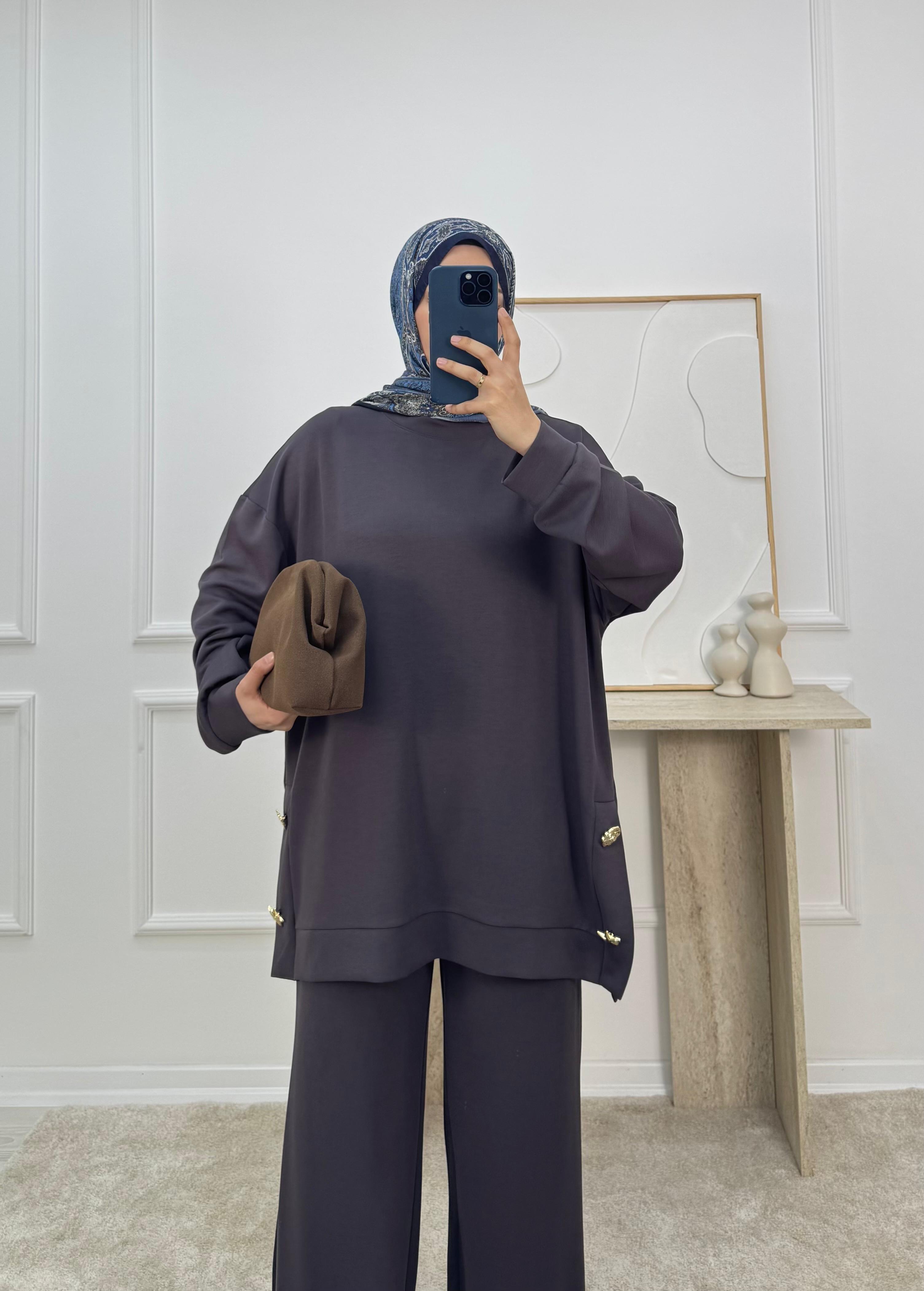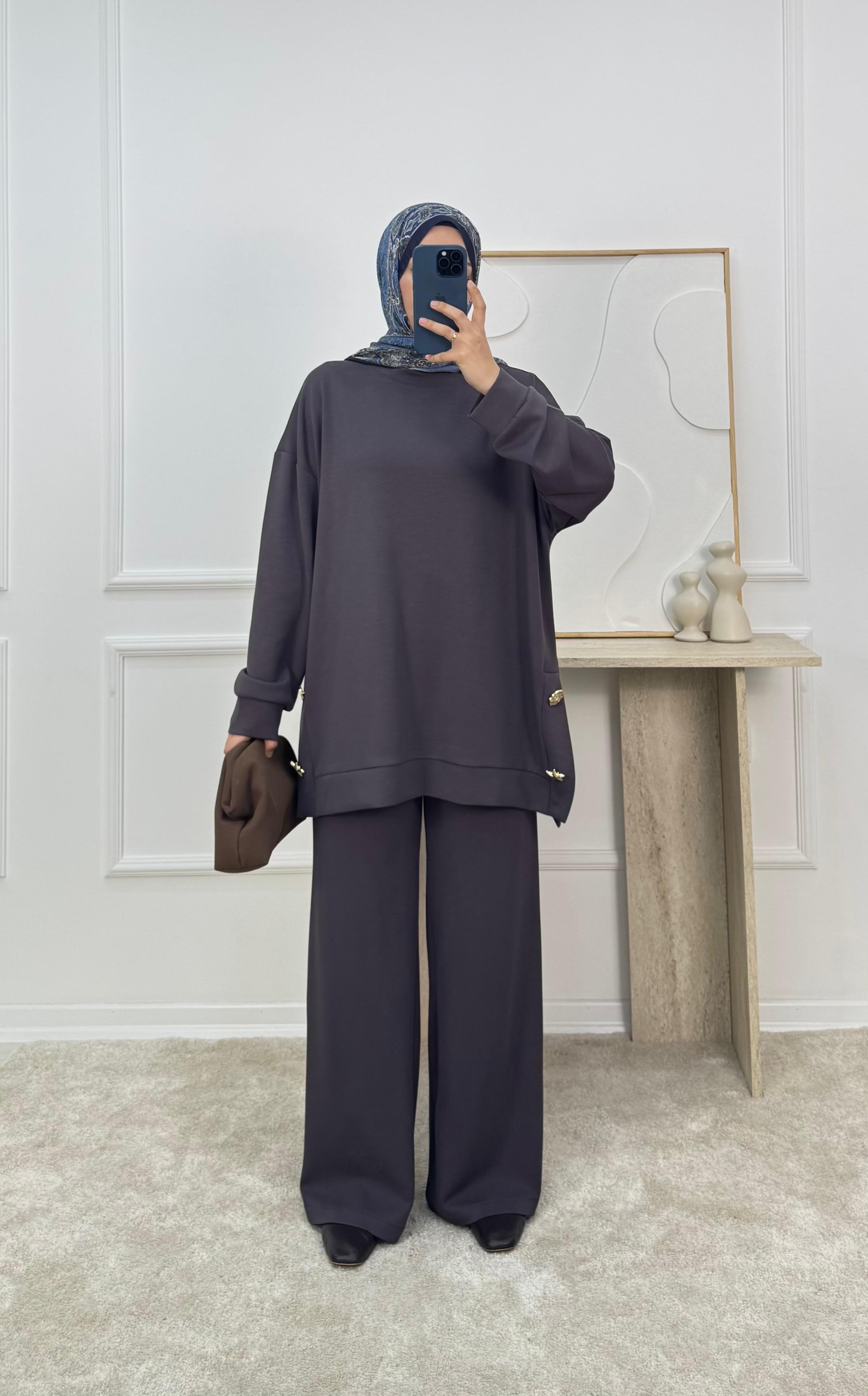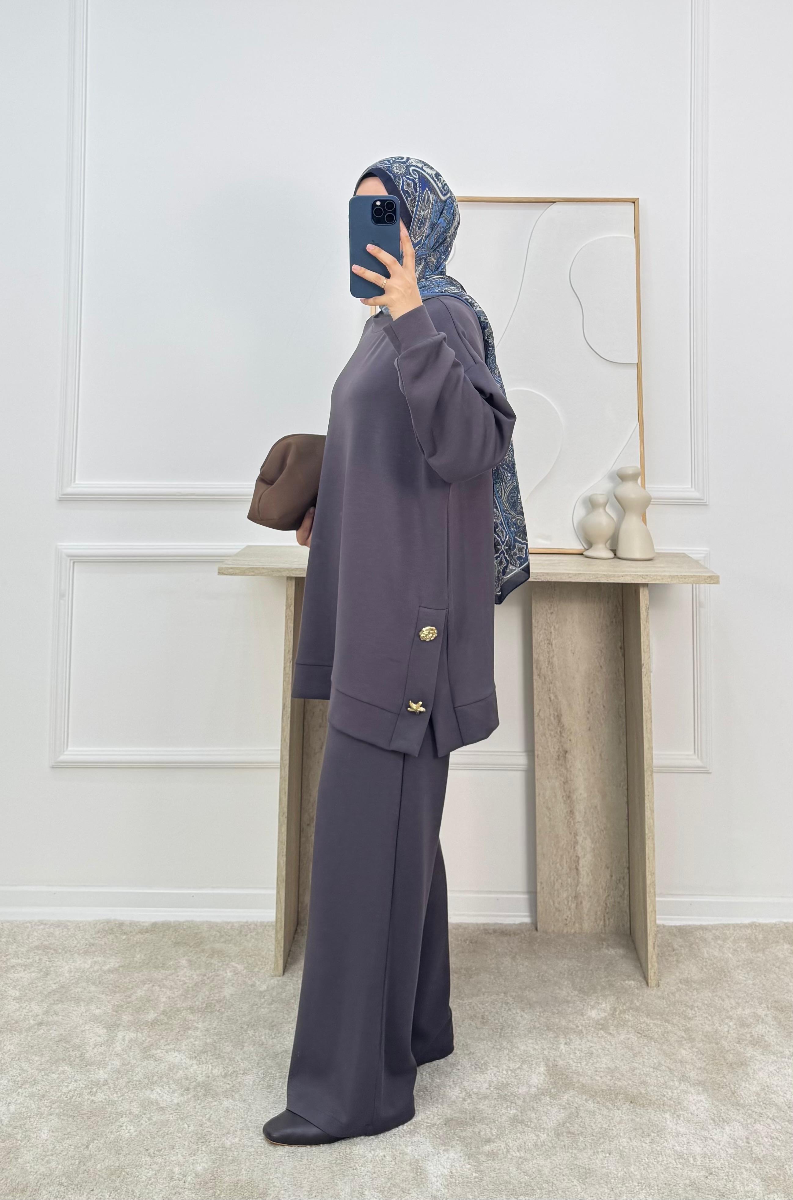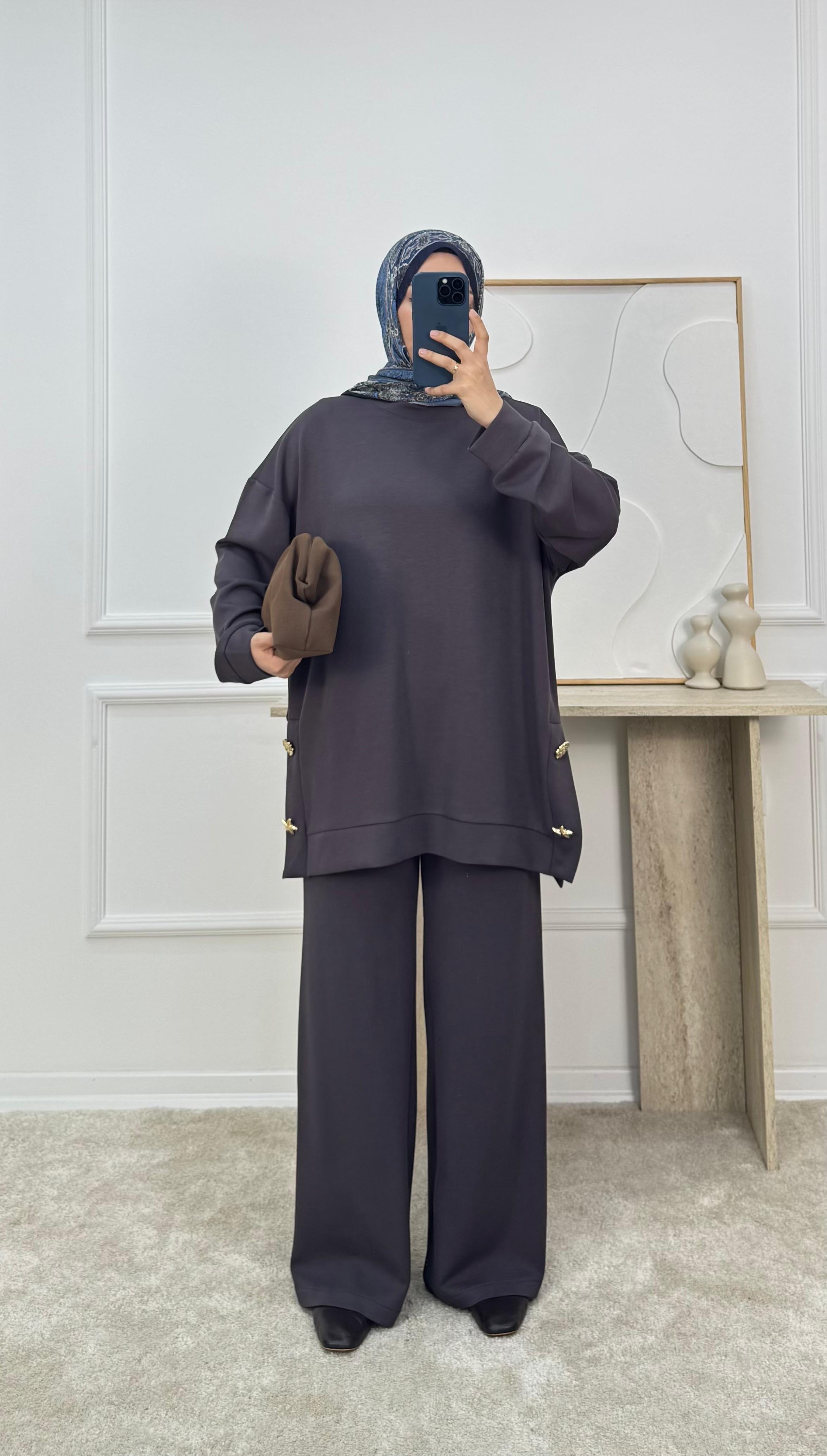 1310 -oysho kumaş pantolonlu takım - füme (1310)