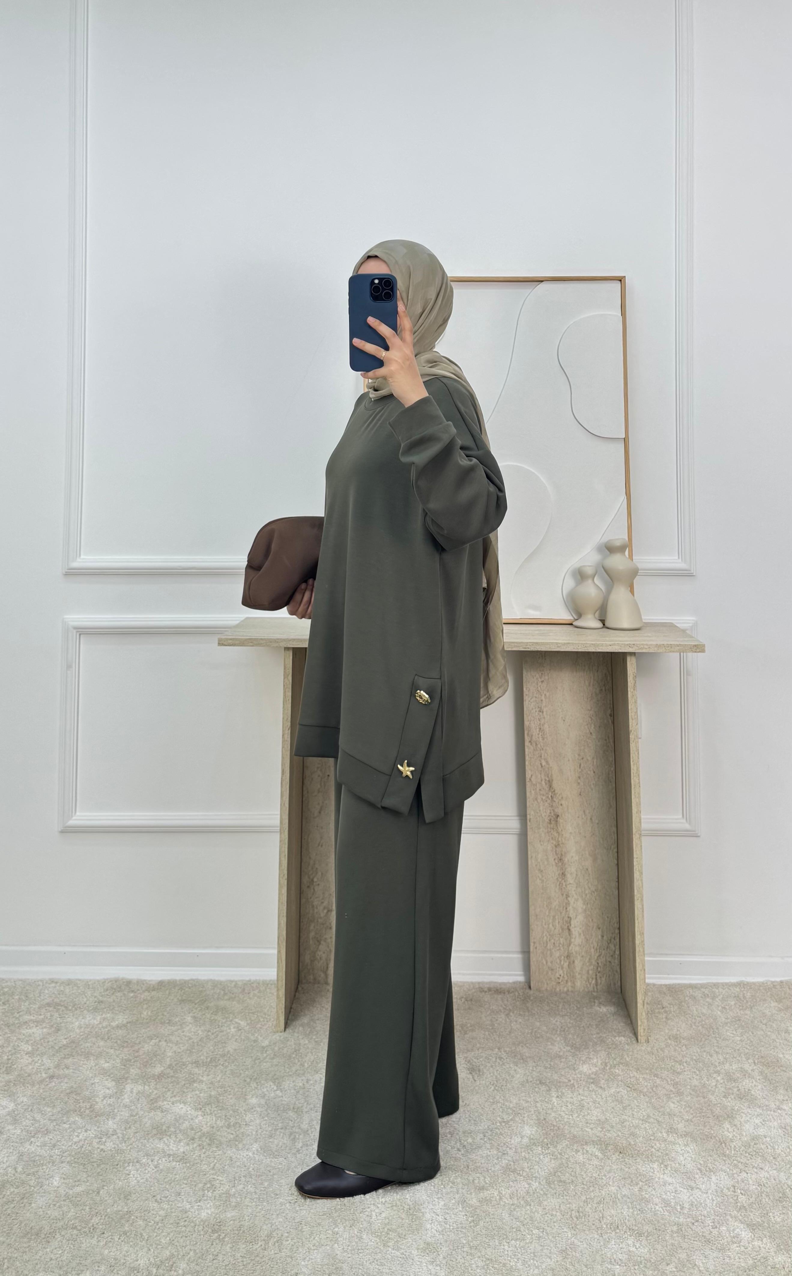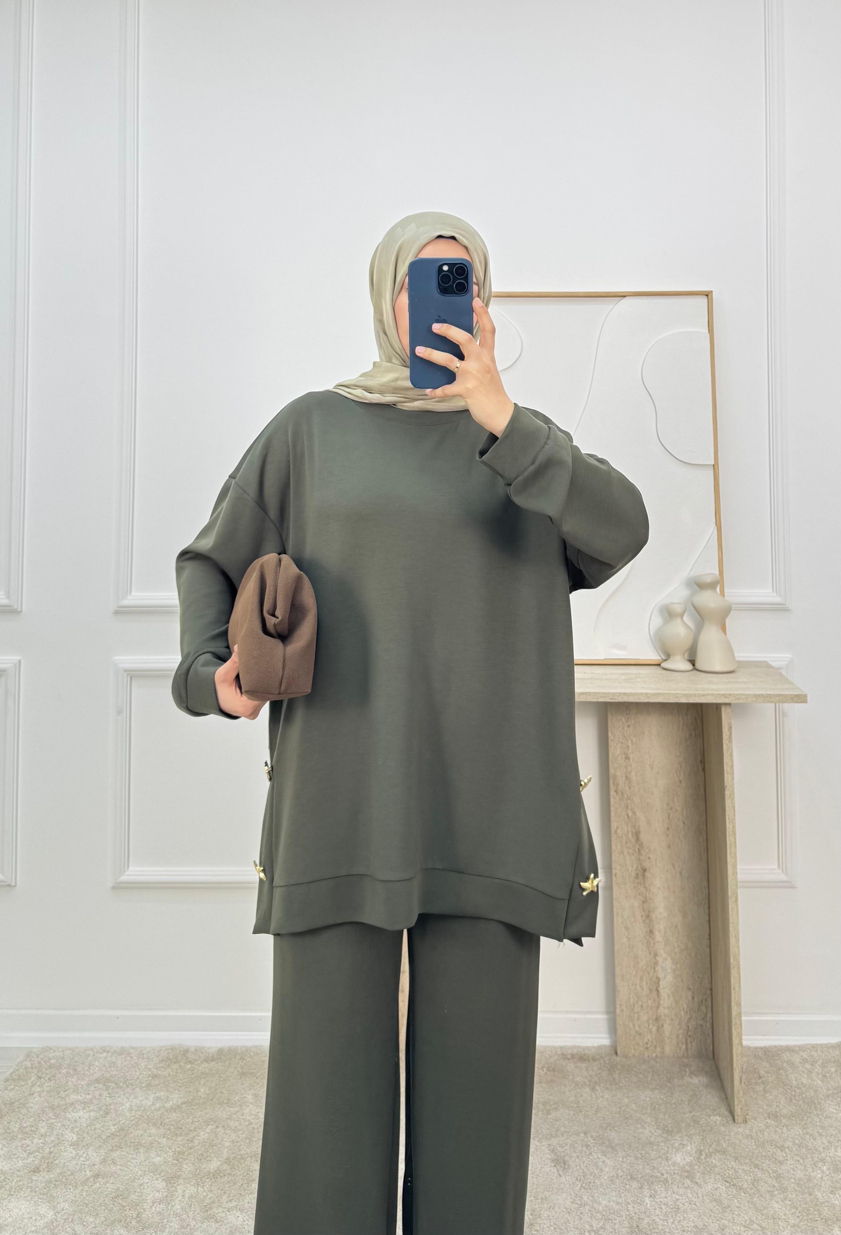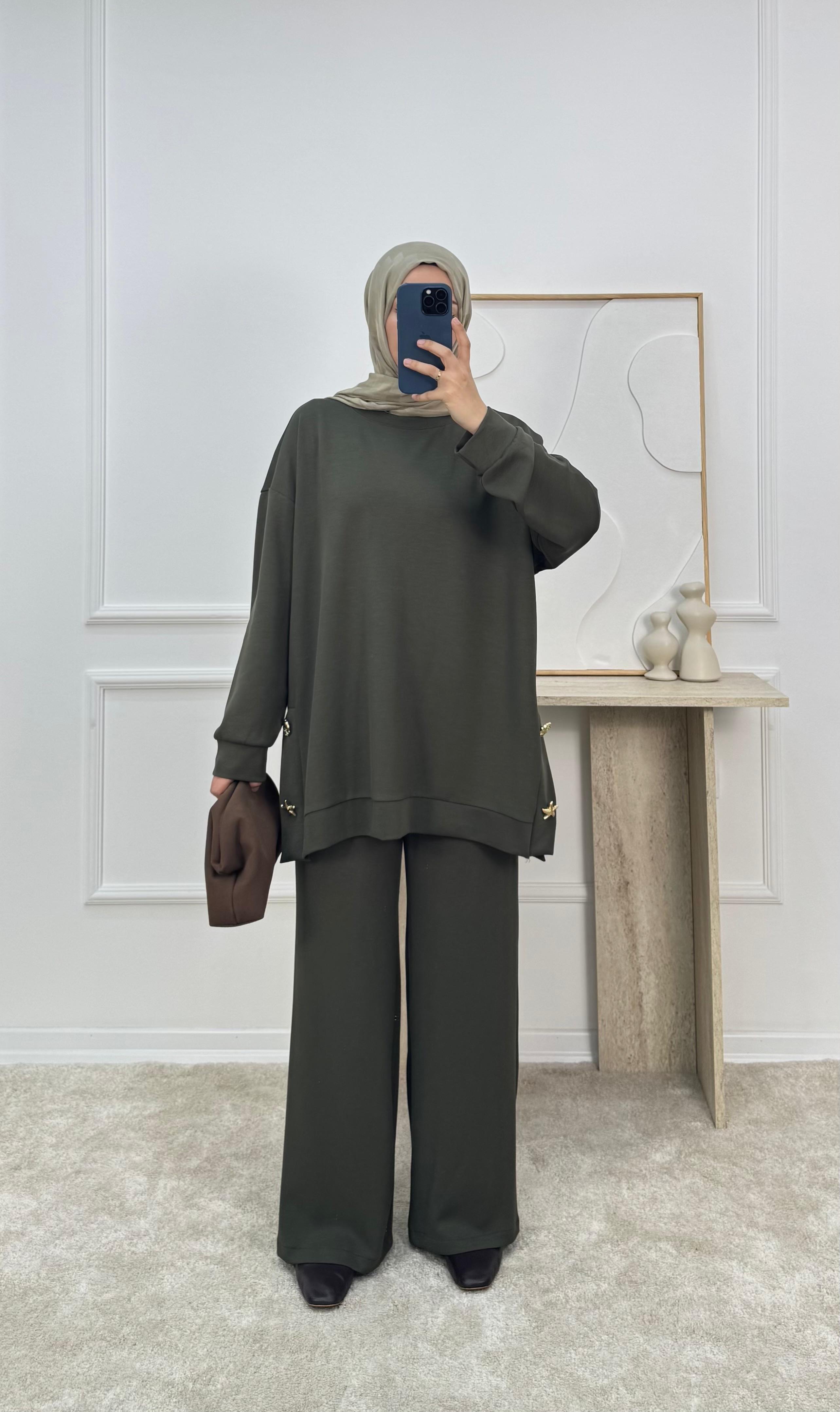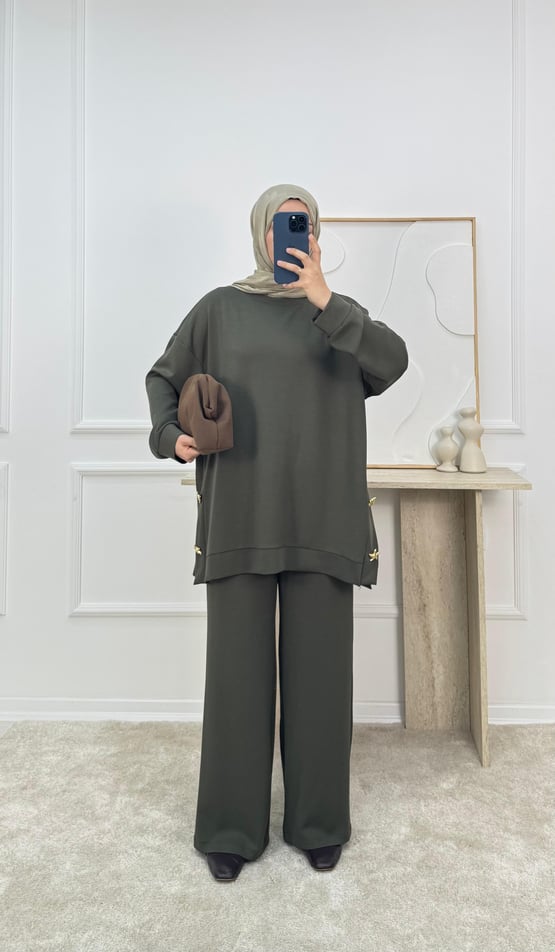 1310 -oysho kumaş pantolonlu takım - yeşil (1310)