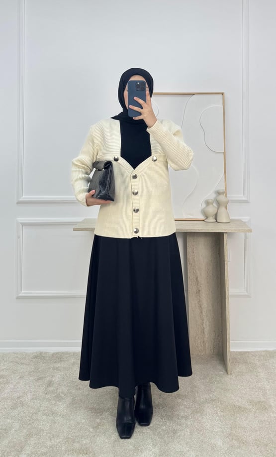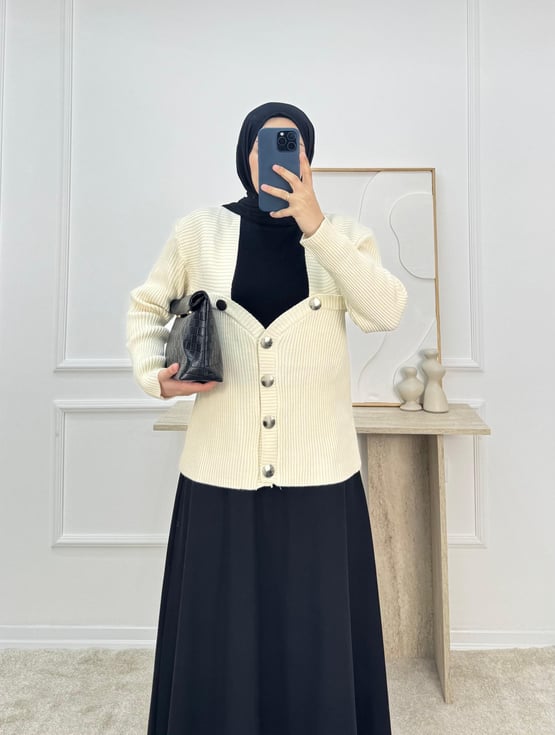 132-düğmeli triko hırka-krem (132)