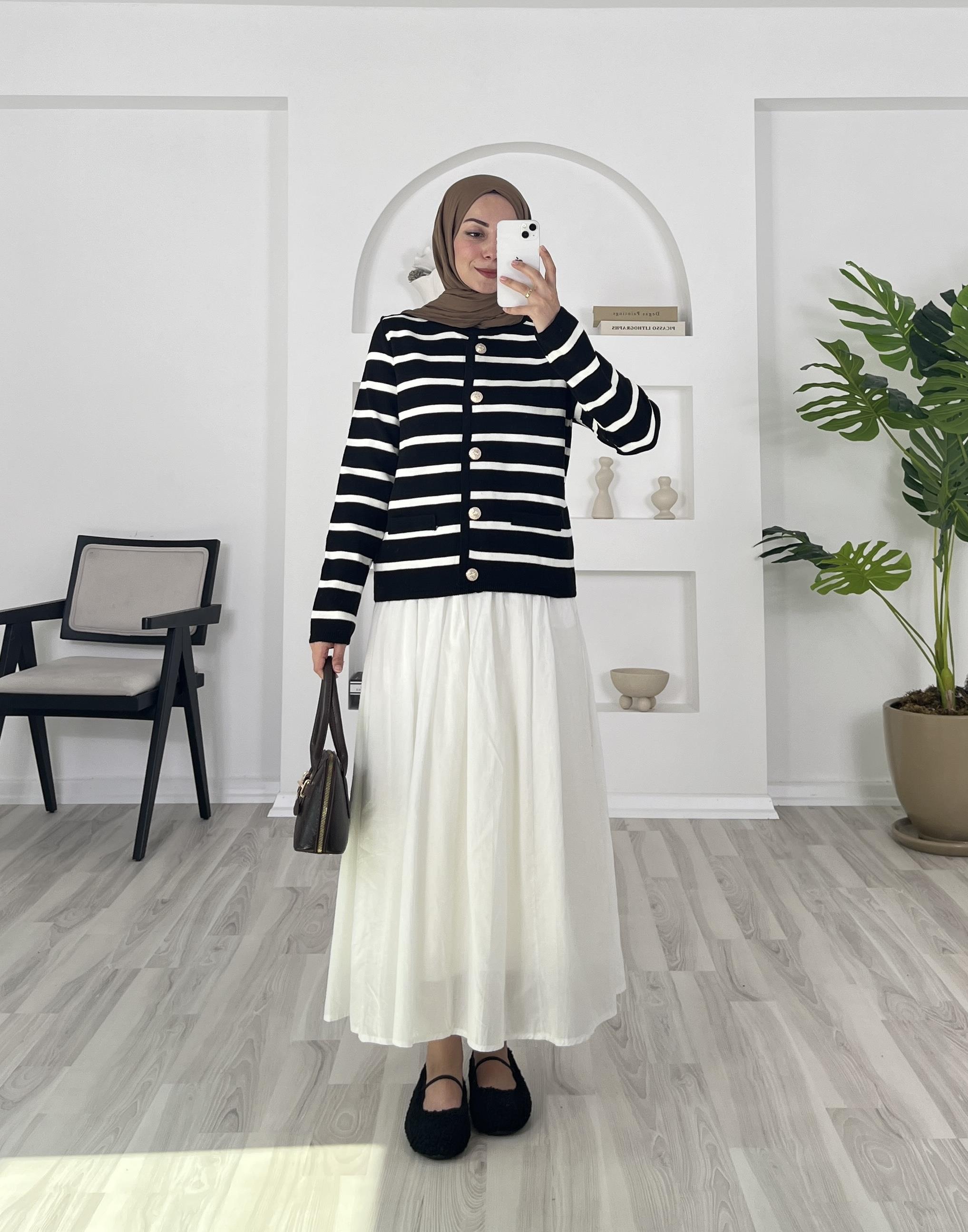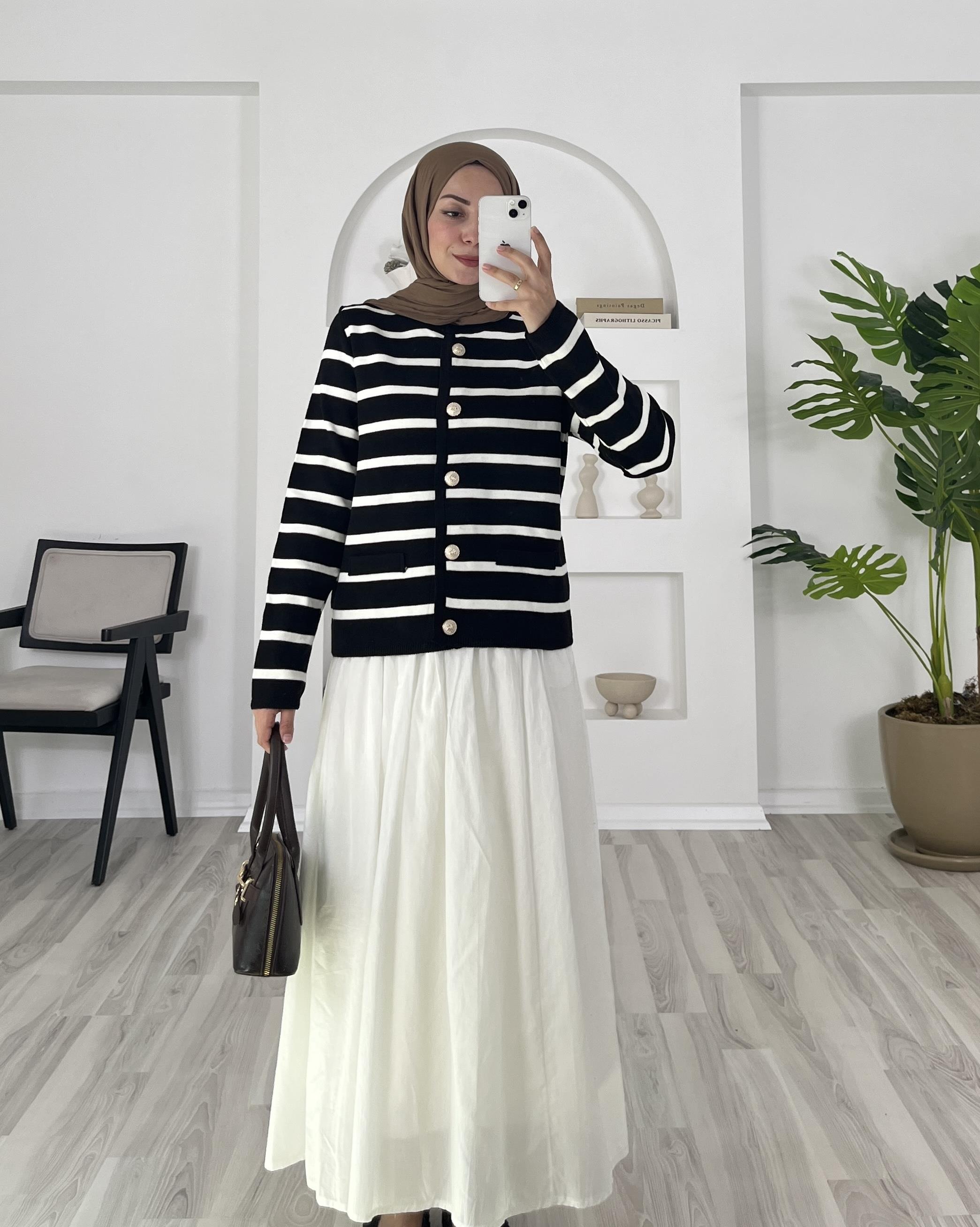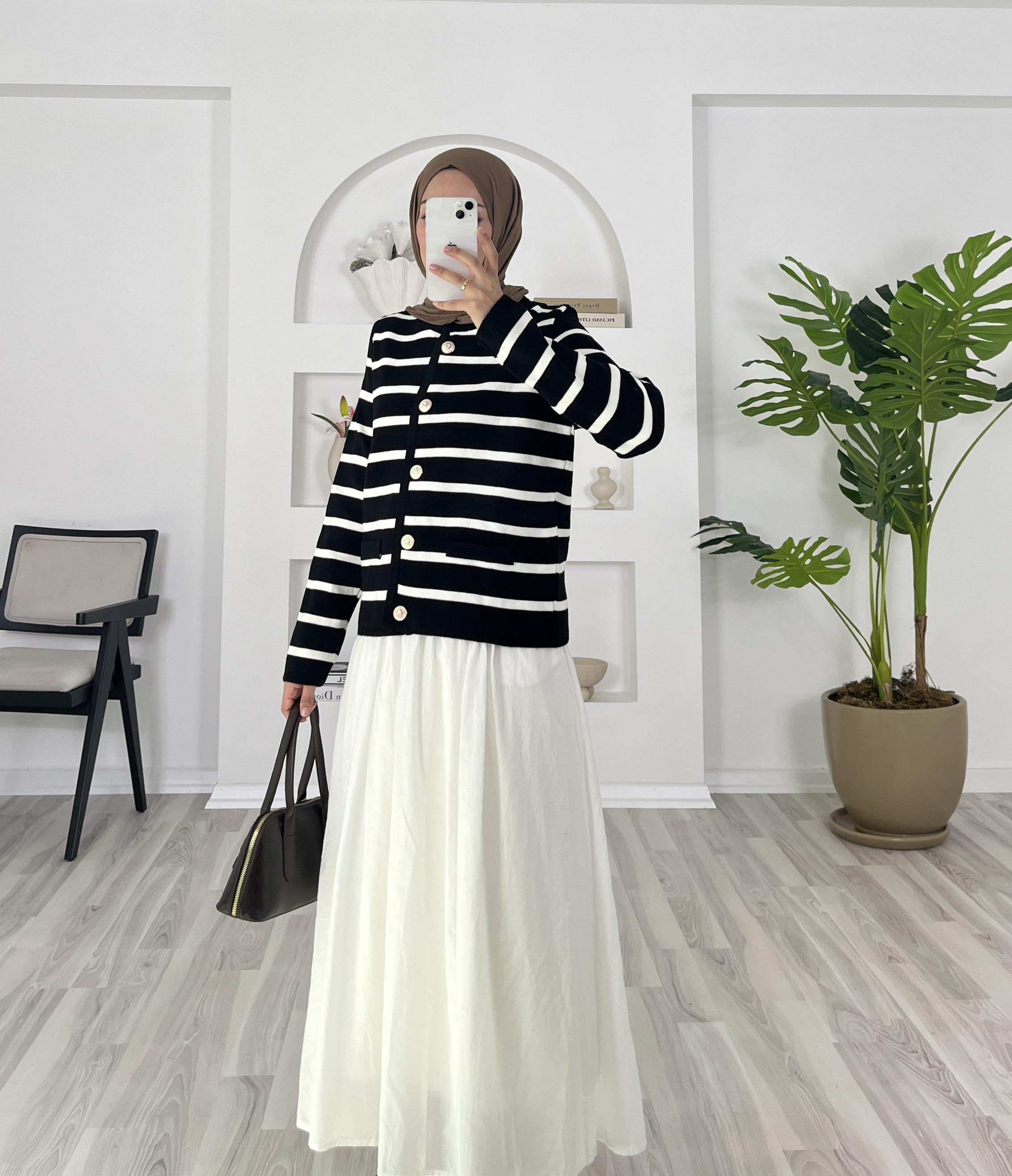 çizgili önü dügmeli triko hırka