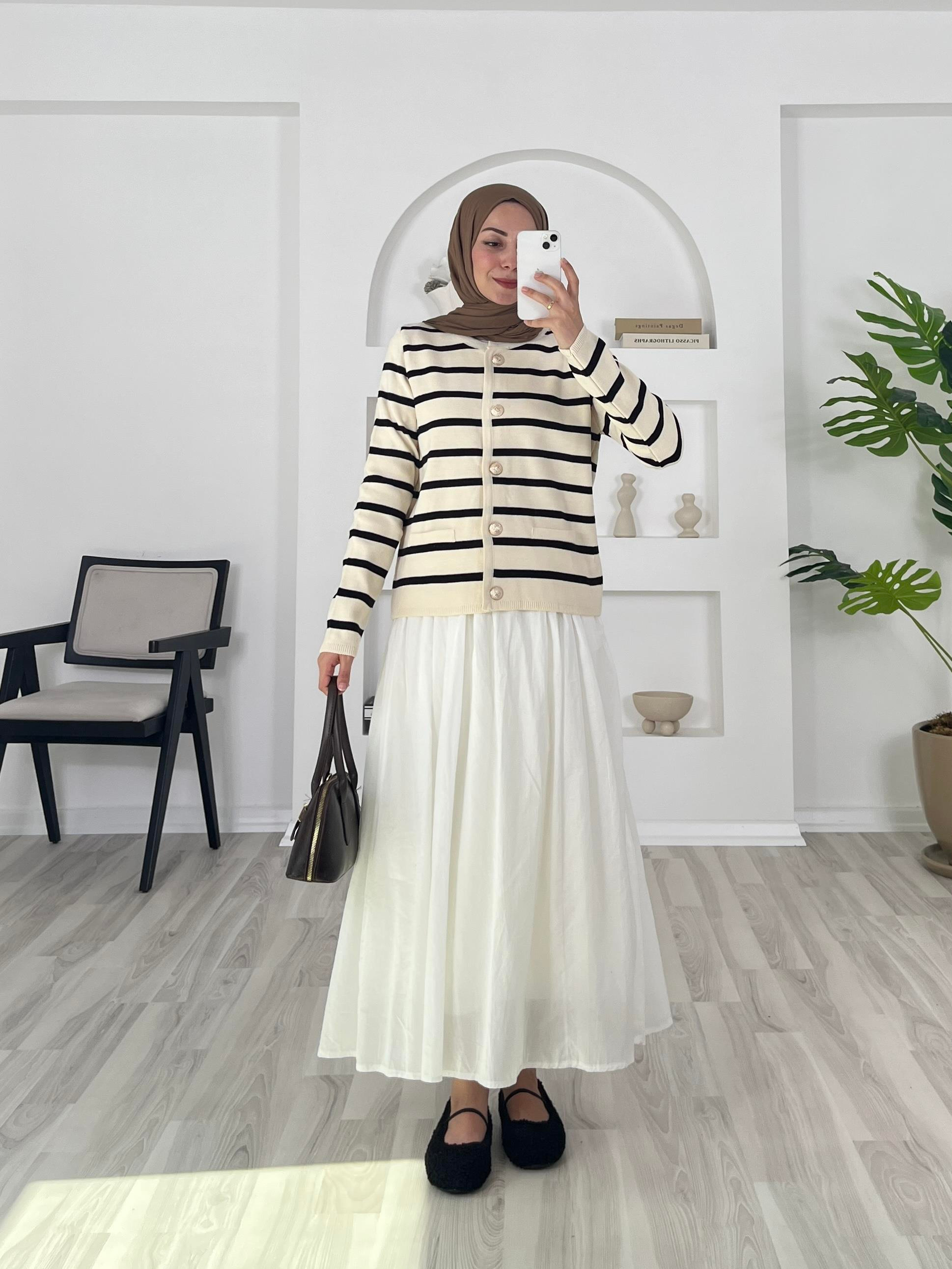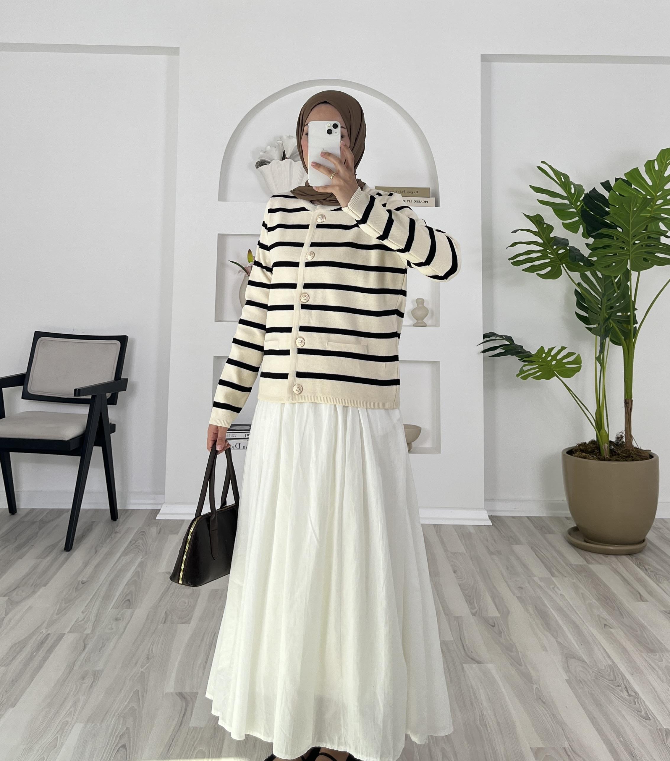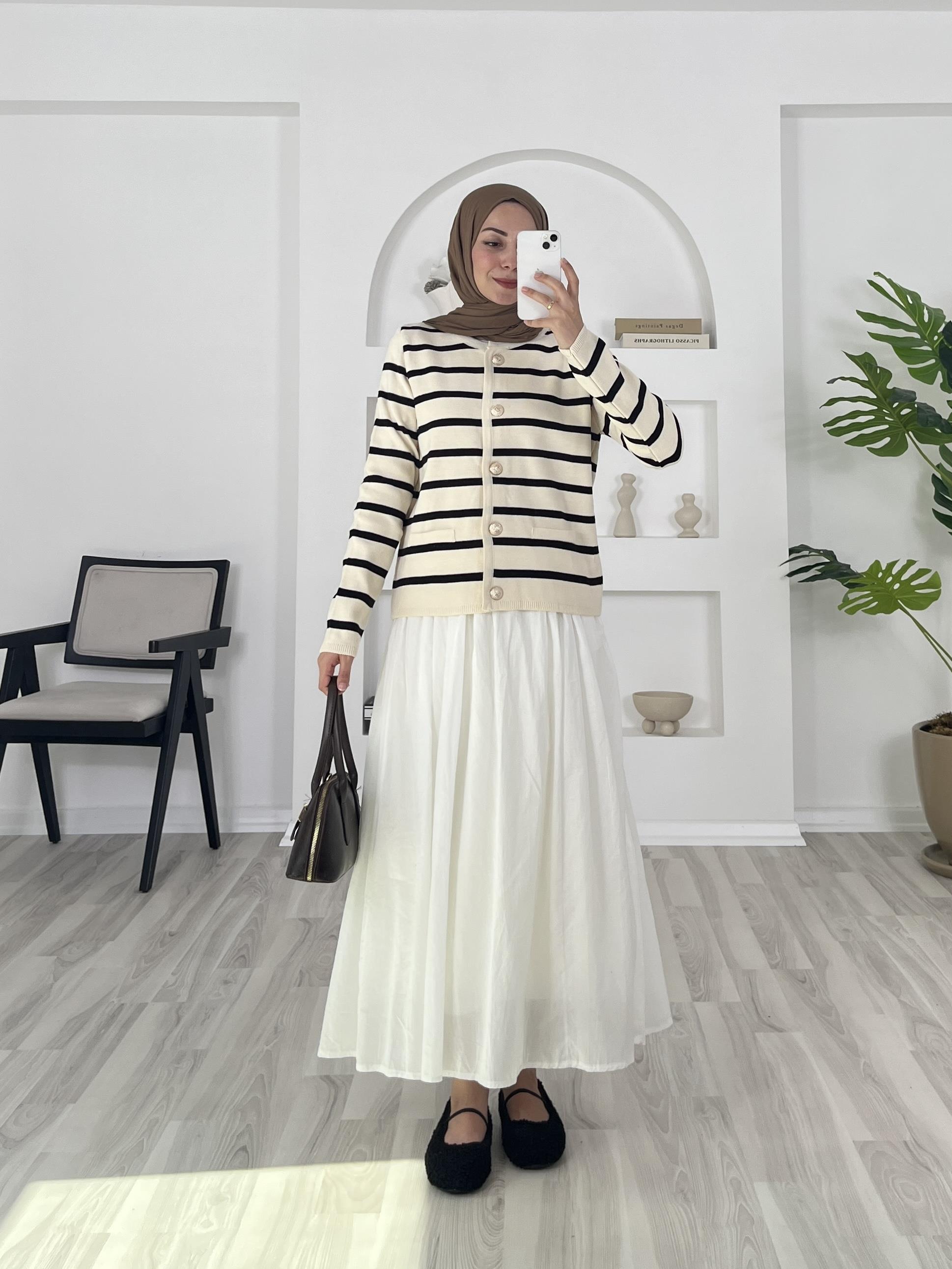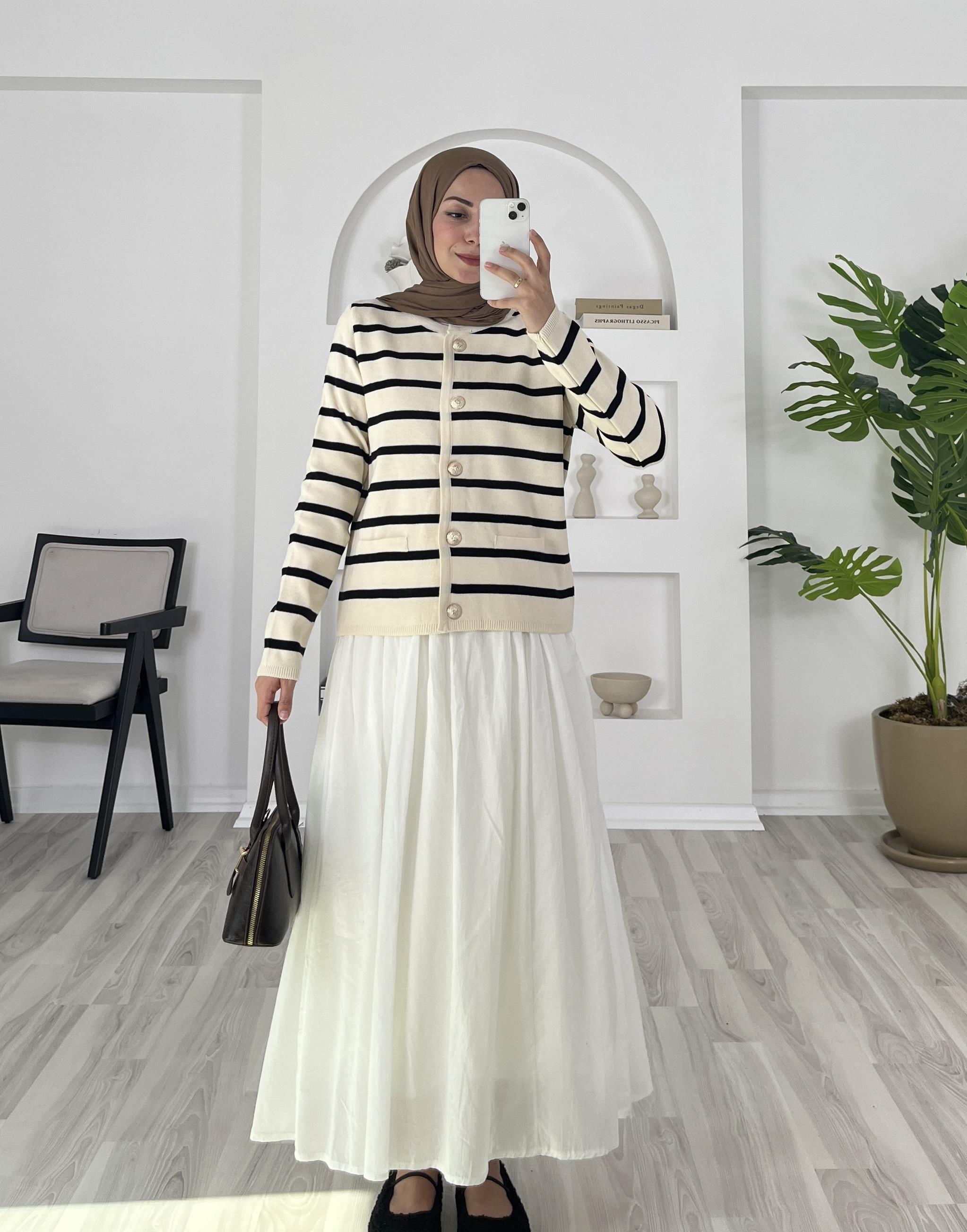 13206 - siyah çizgili önü dügmeli triko hırka - beyaz (13206)