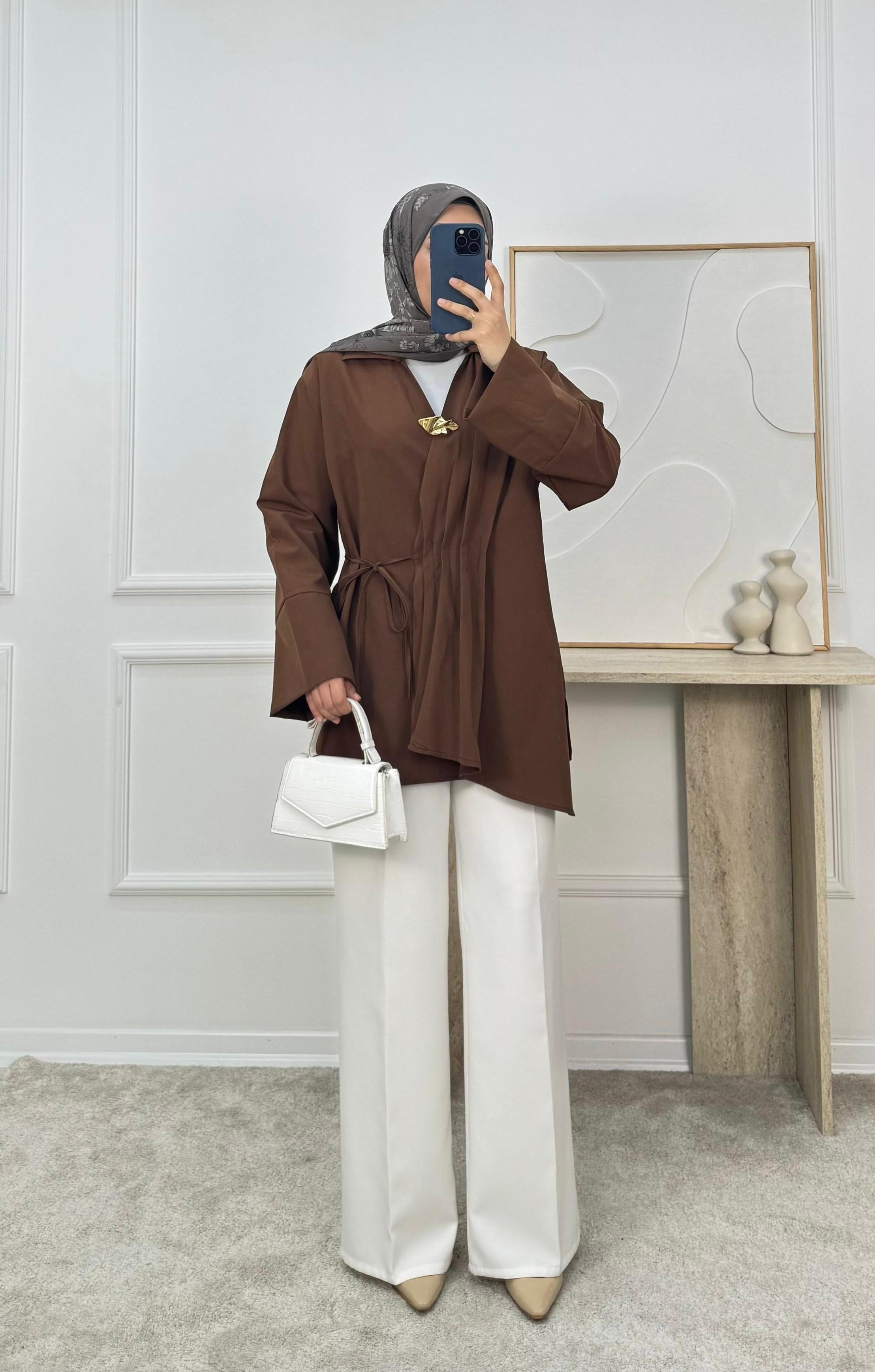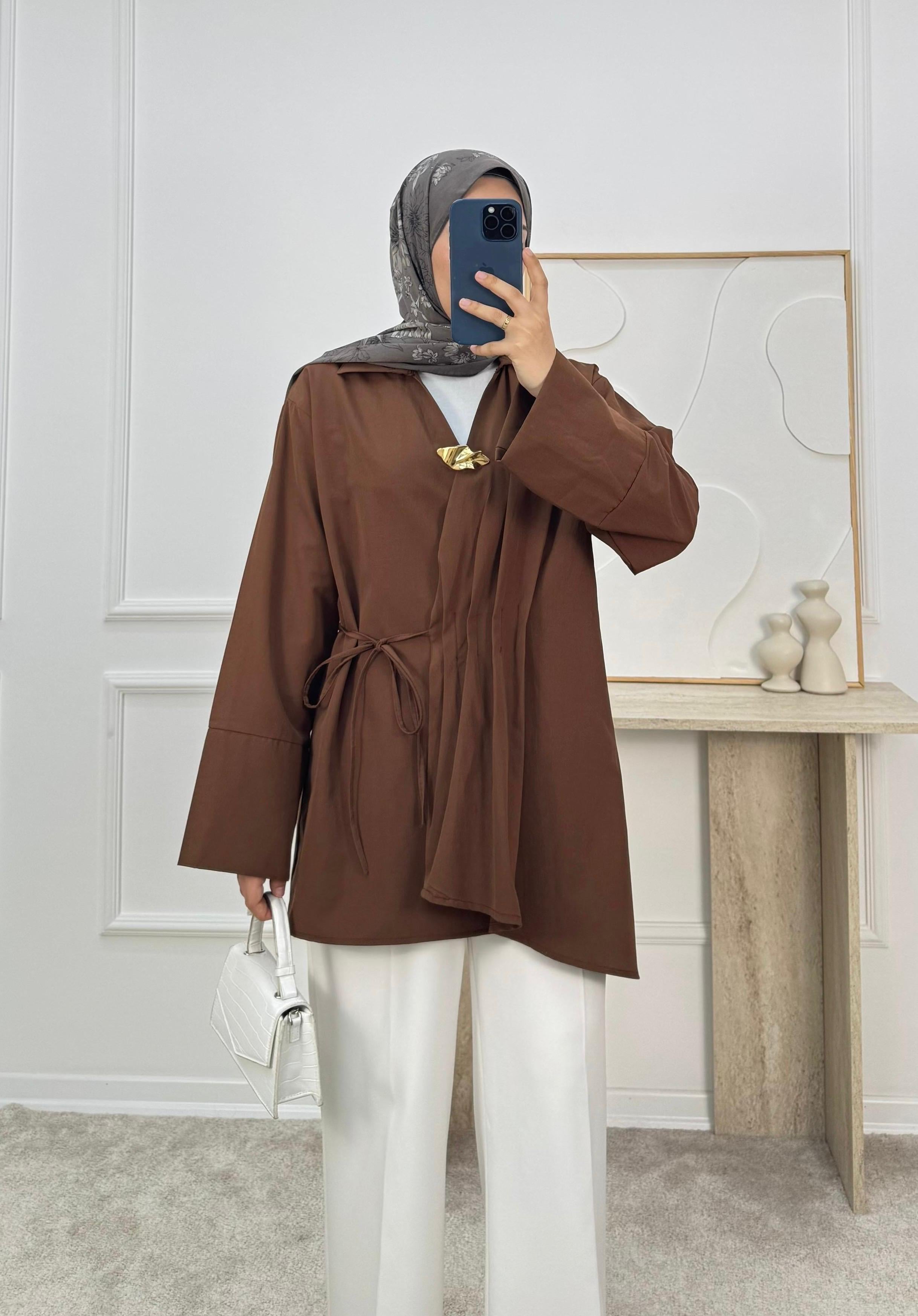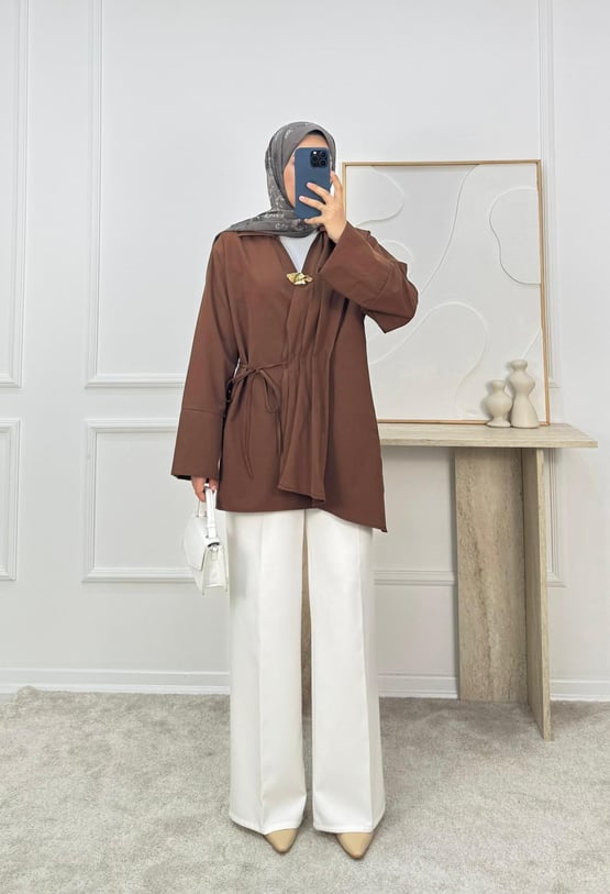 1326-terikoton kumaş bağlamalı kimona-kahve (1326)