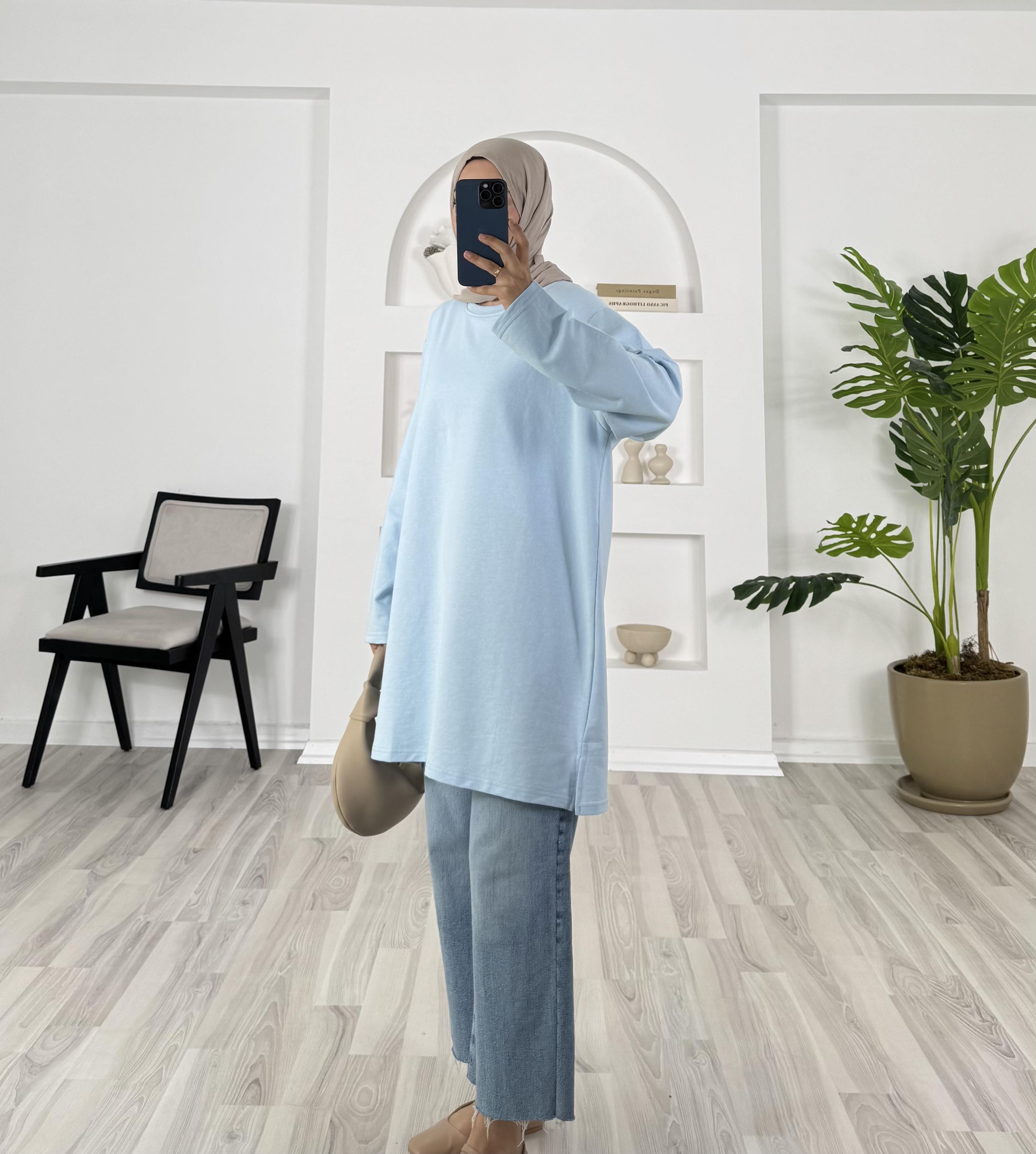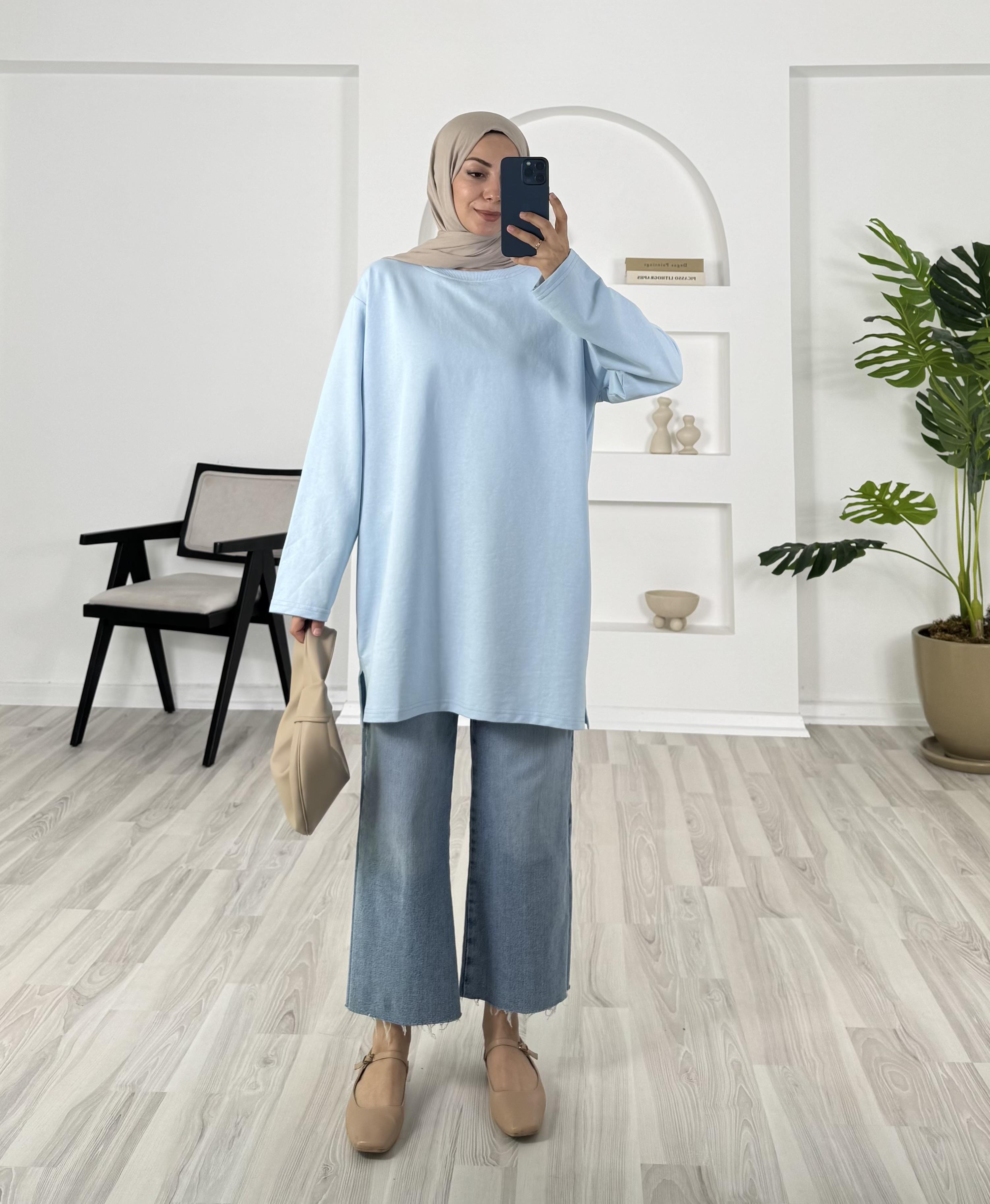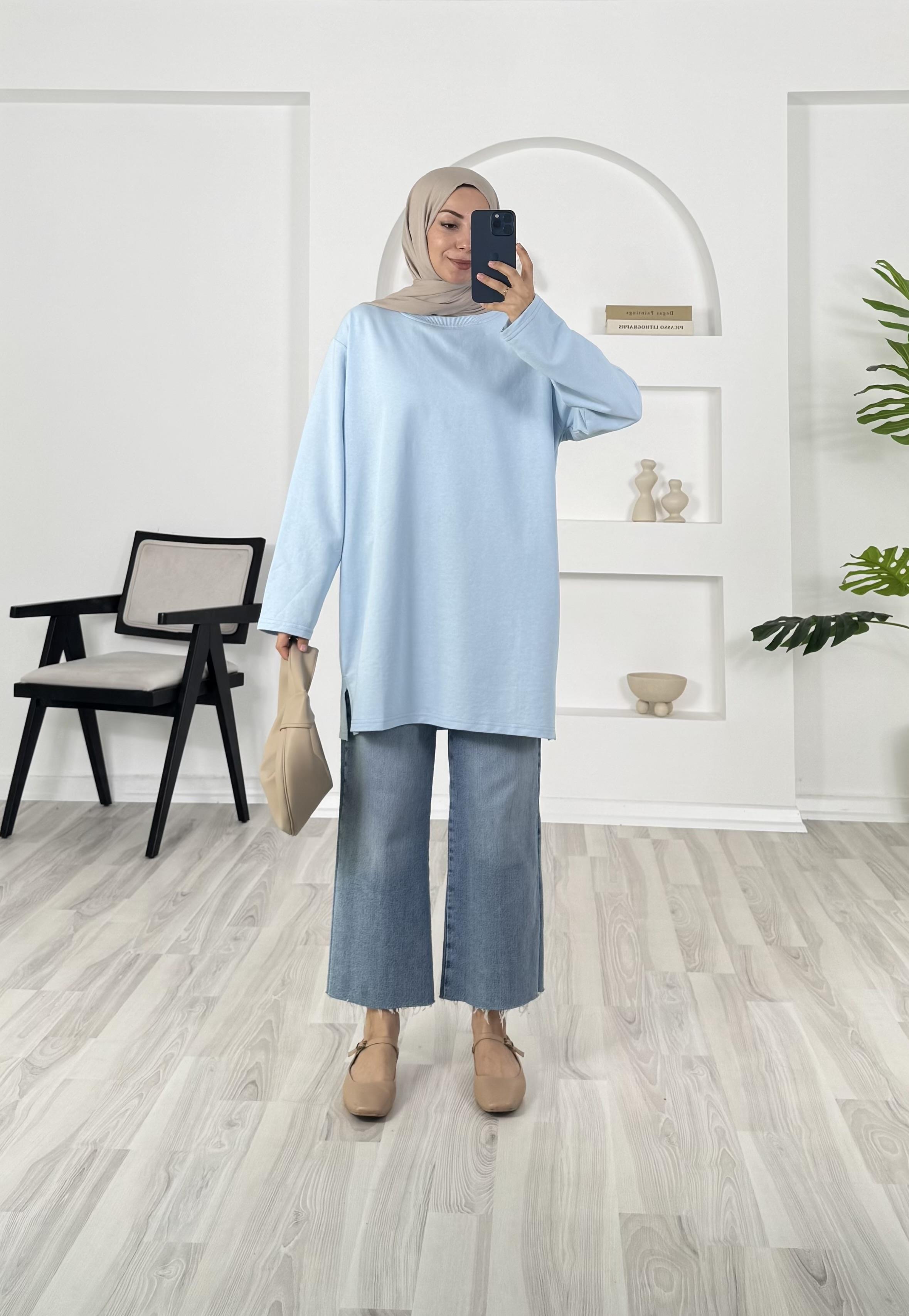 1327 - iki iplik kumaş düz model tunik - bebe mavi (1327)