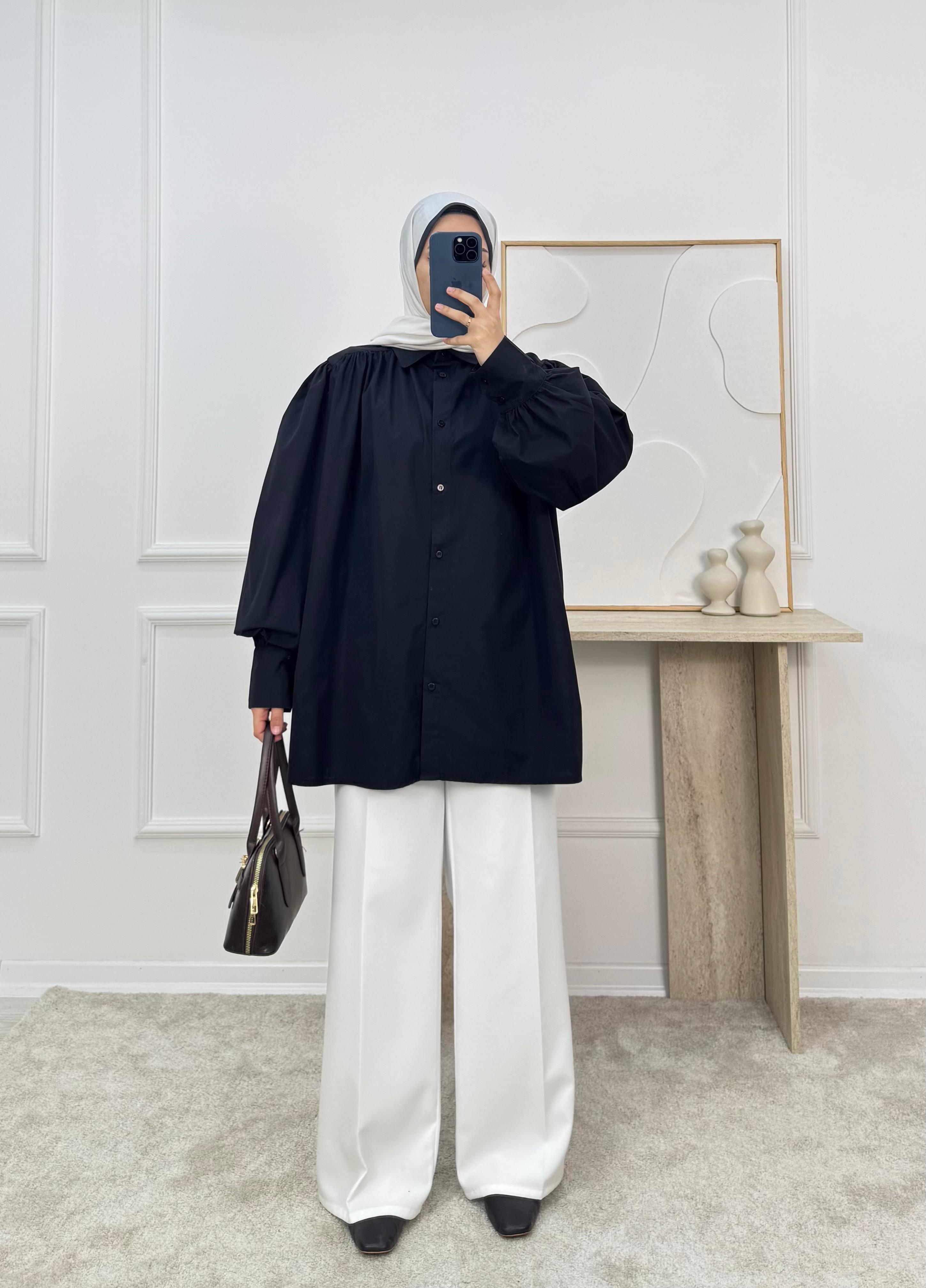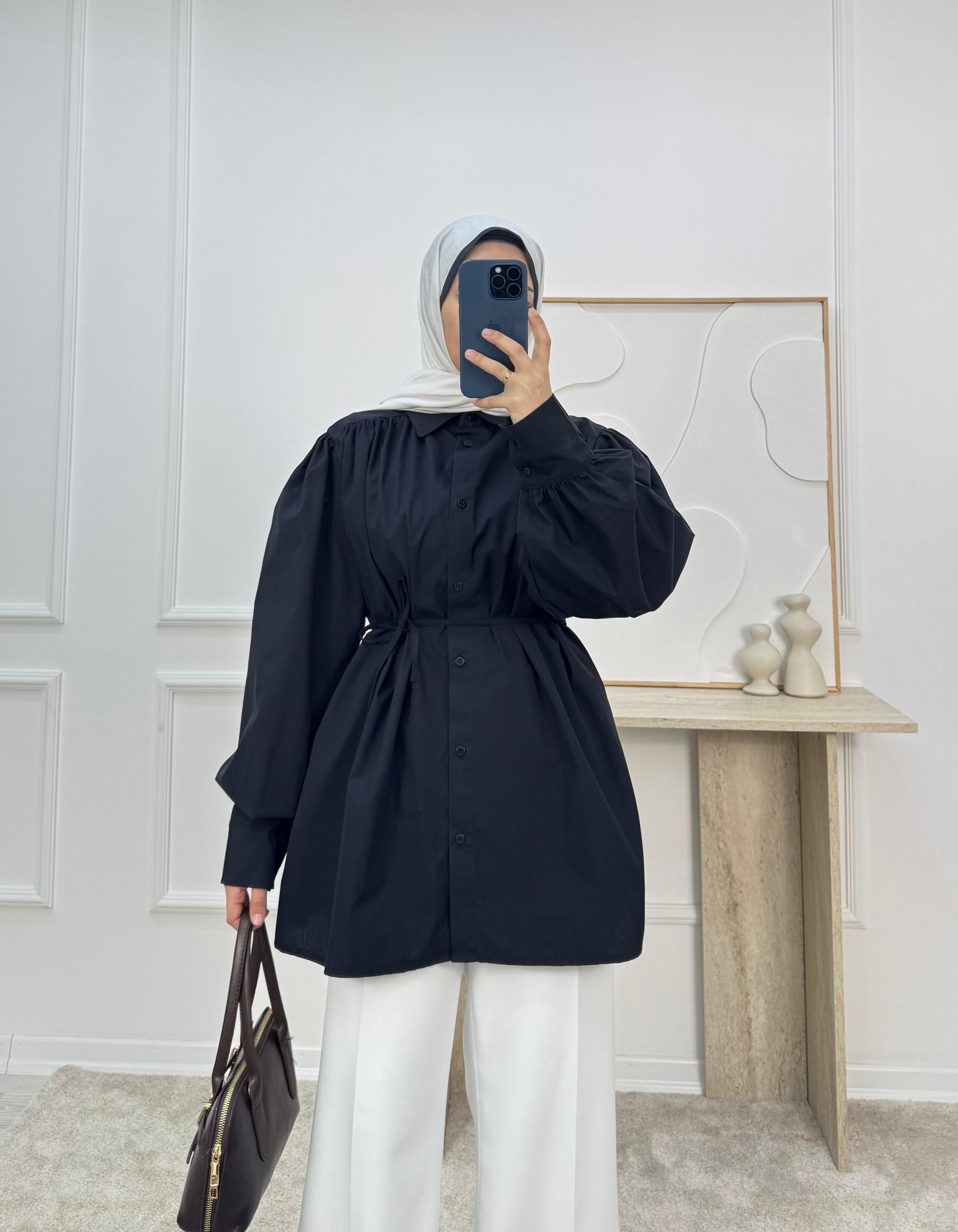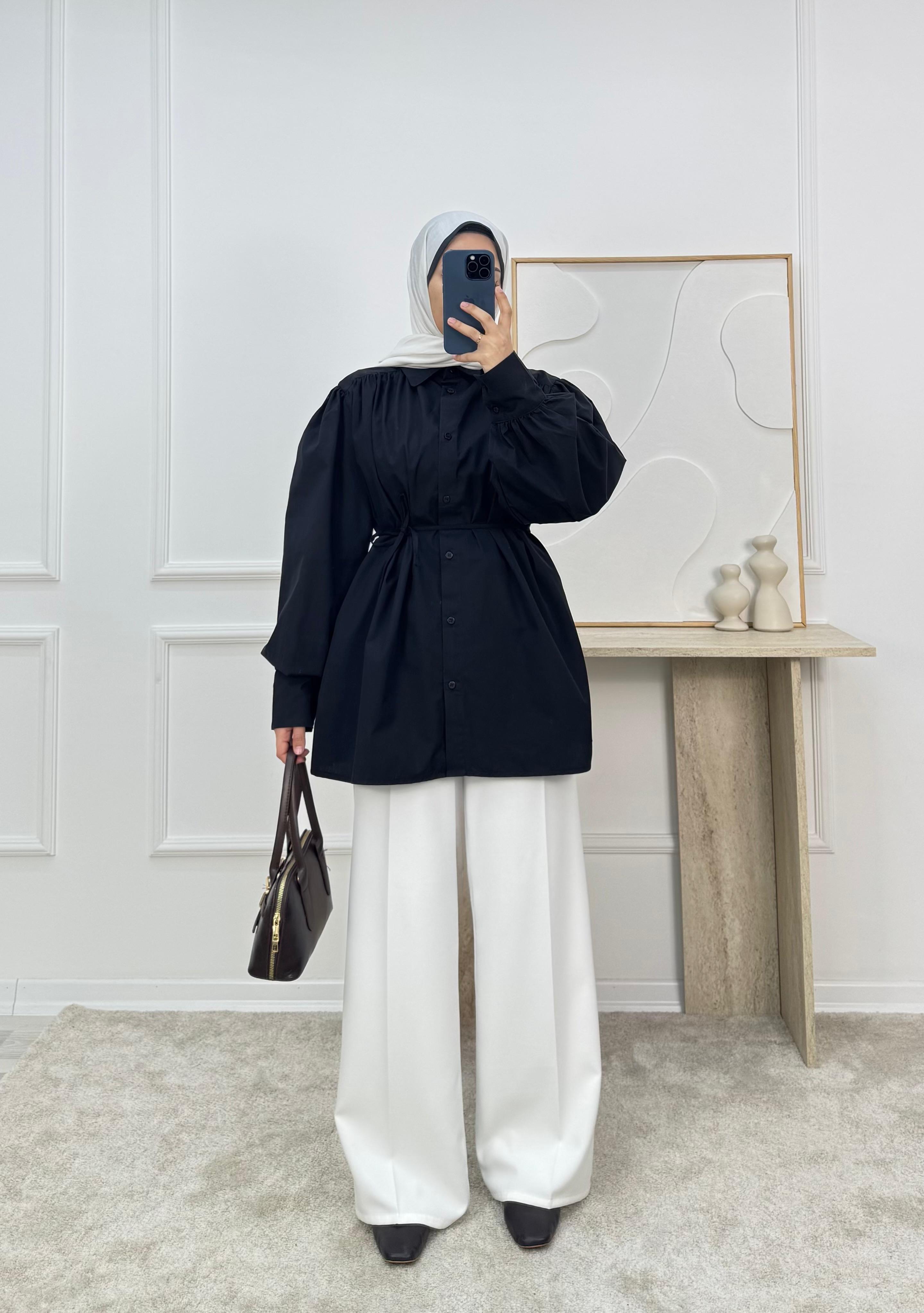 1338-terikoton kumaş kuşaklı tunik-siyah (1338)