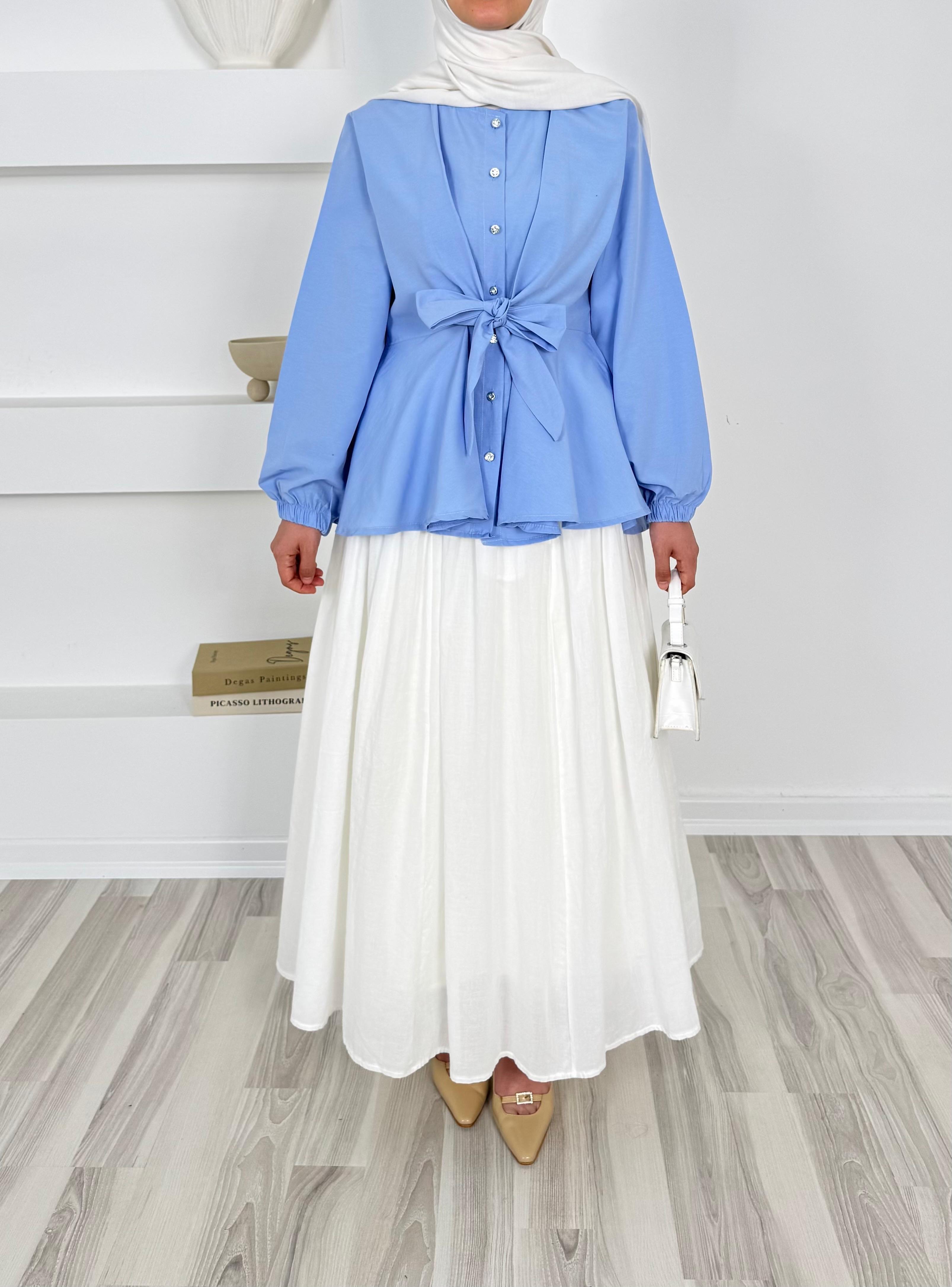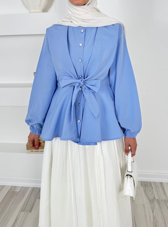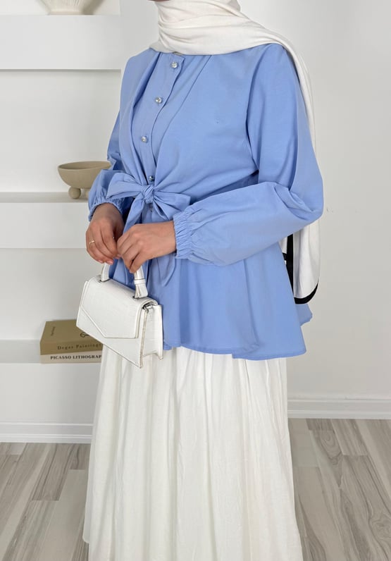 1342-poplin kumaş önden bağlamalı düğmeli tunik-mavi (1342)