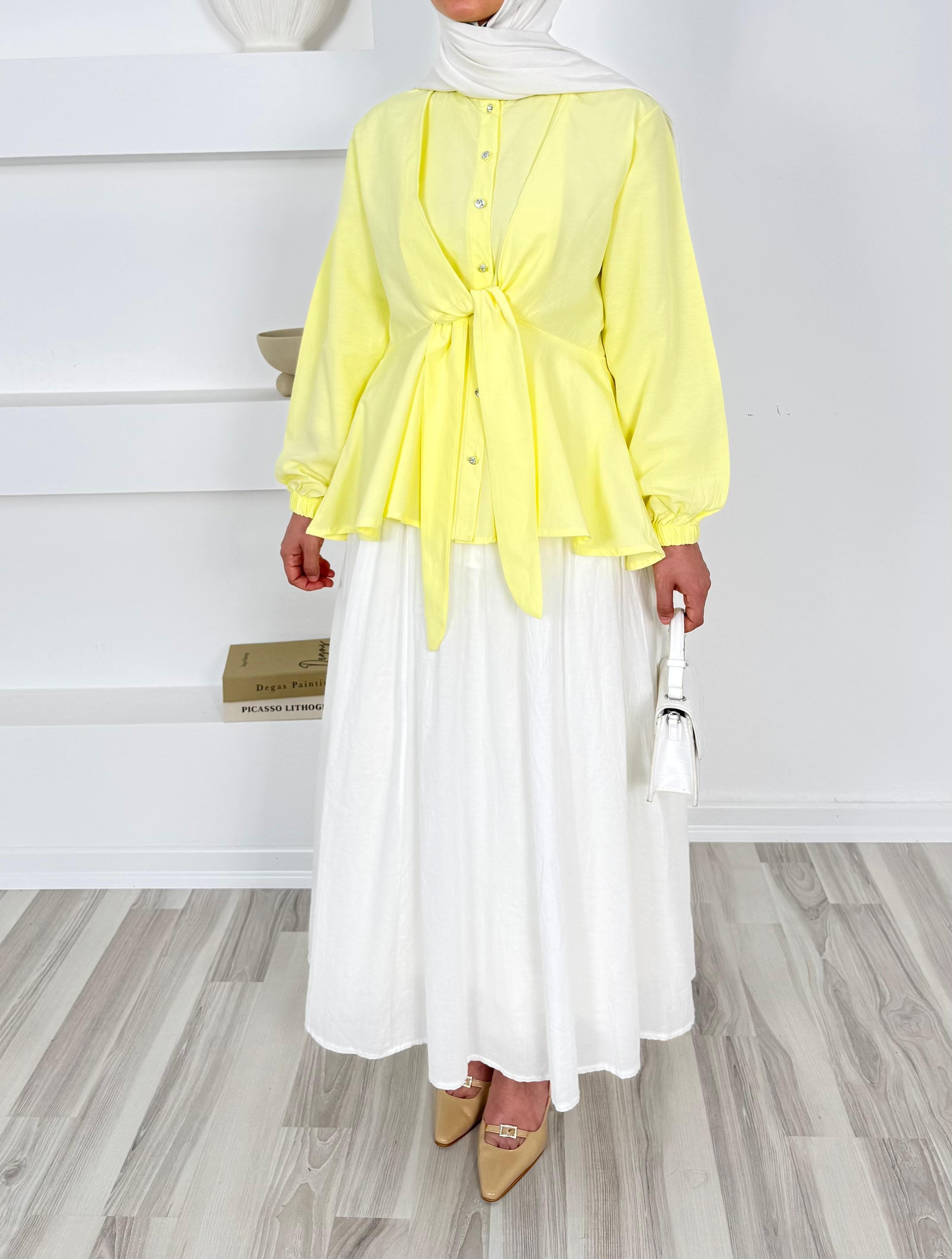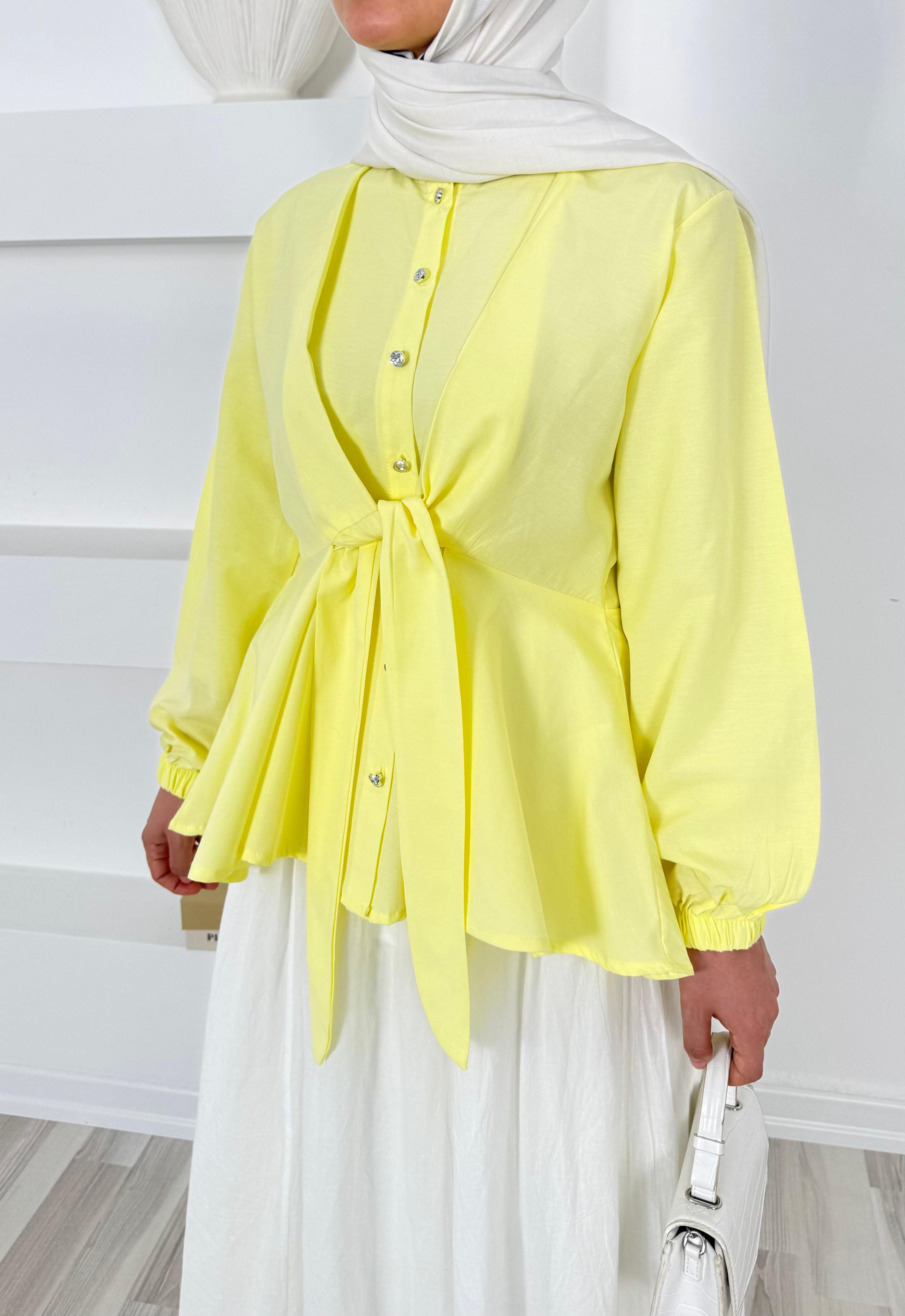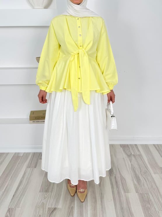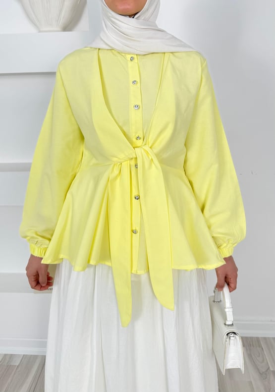 1342-poplin kumaş önden bağlamalı düğmeli tunik-sarı (1342)