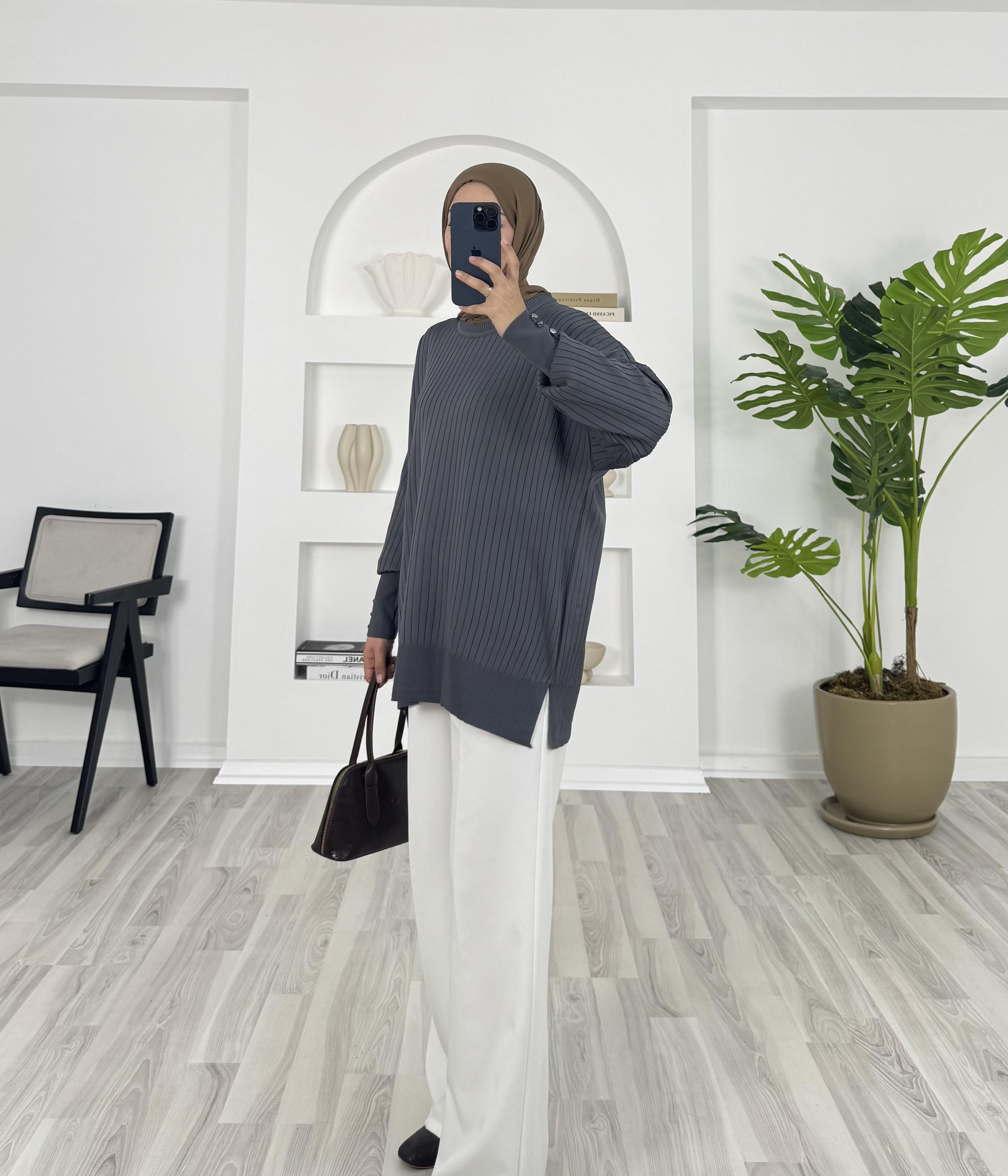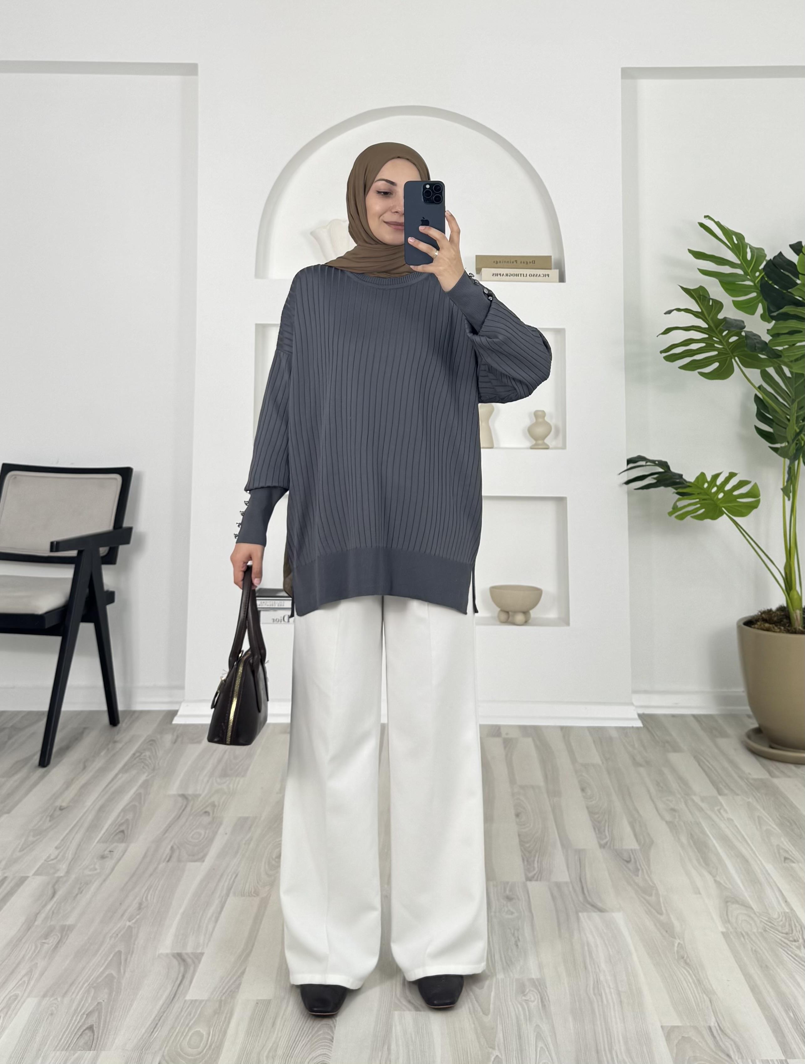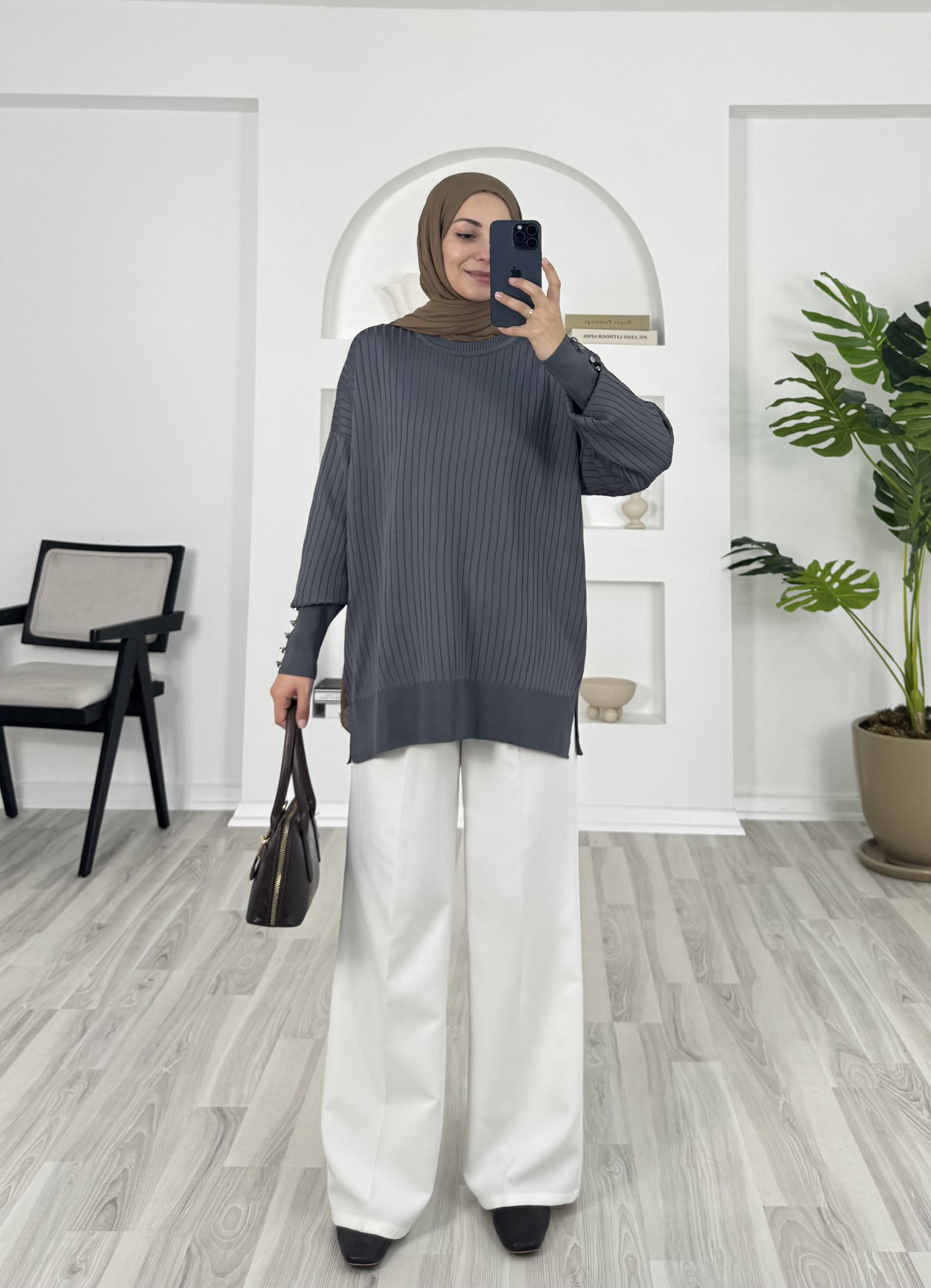 13620 - soguk iplik kumaş kolları dügme detaylı triko - gri (13620)