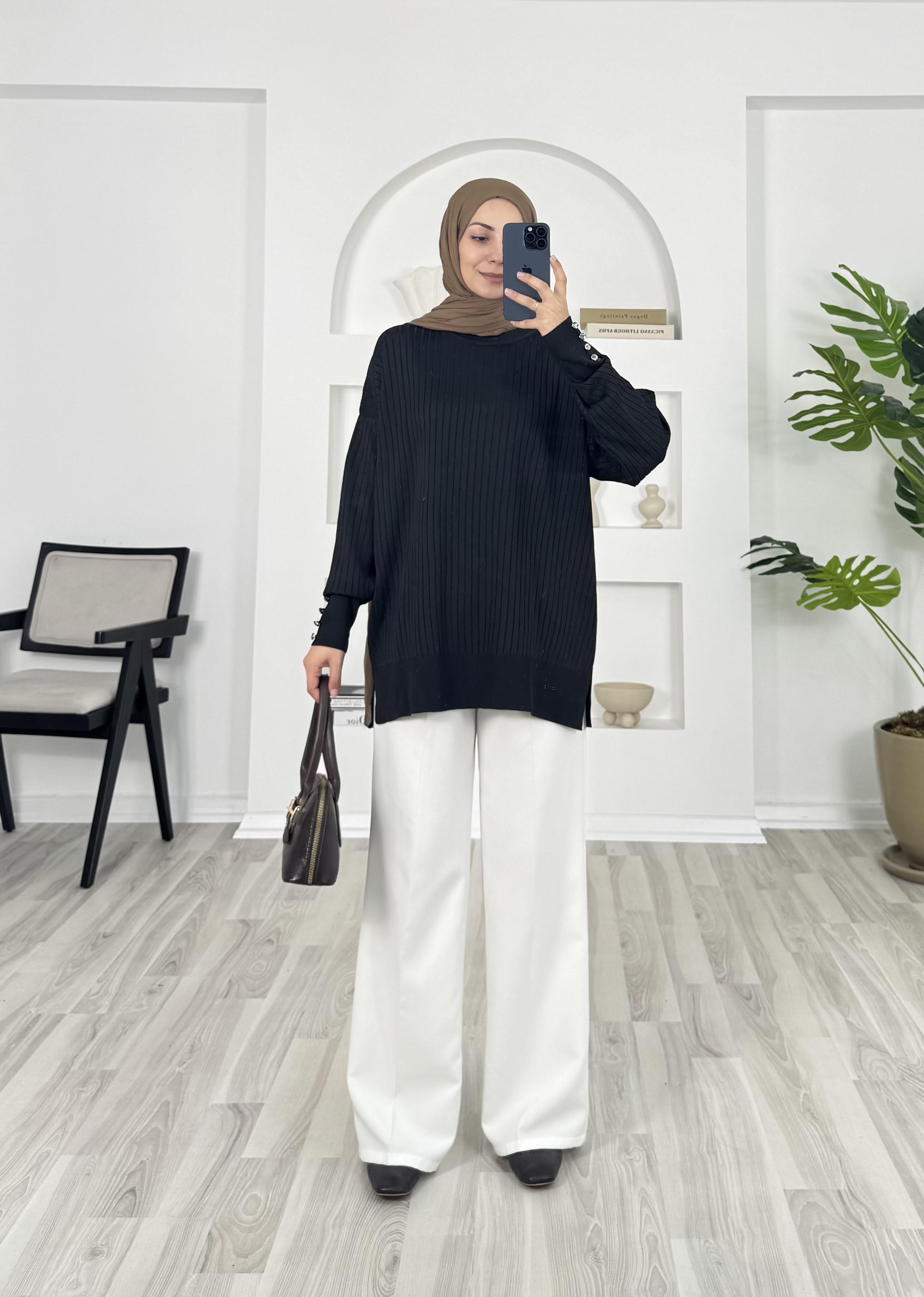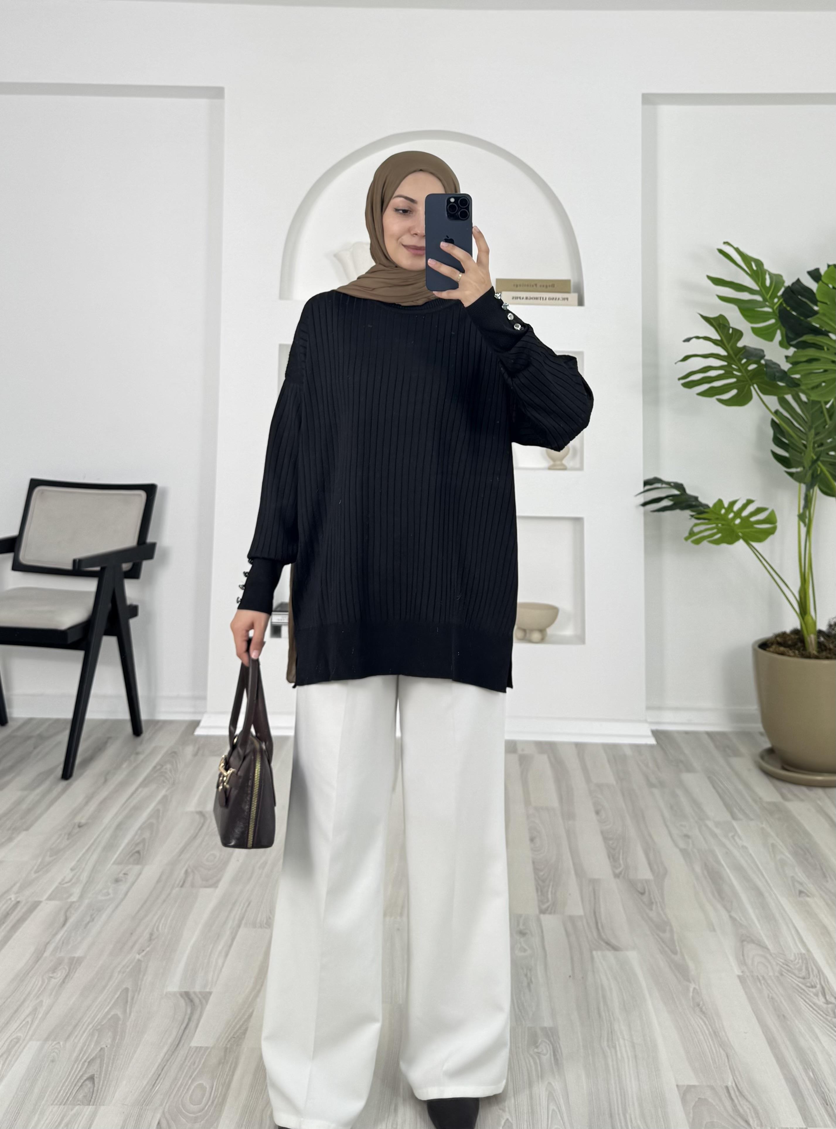 13620 - soguk iplik kumaş kolları dügme detaylı triko - siyah (13620)