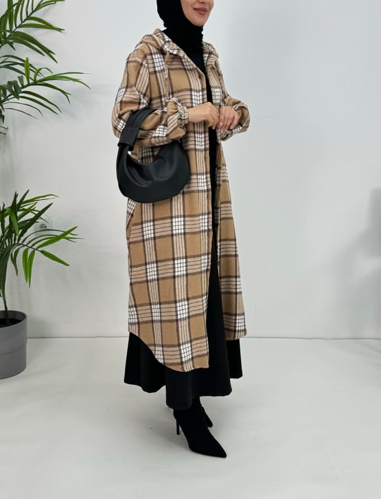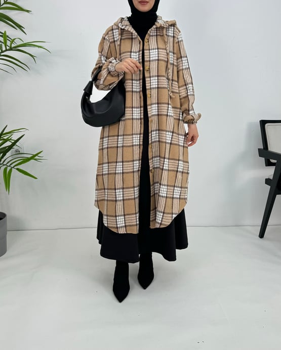 1373 - Kapüşonlu Uzun Oduncu Gömlek Sütlü Kahve (1373)