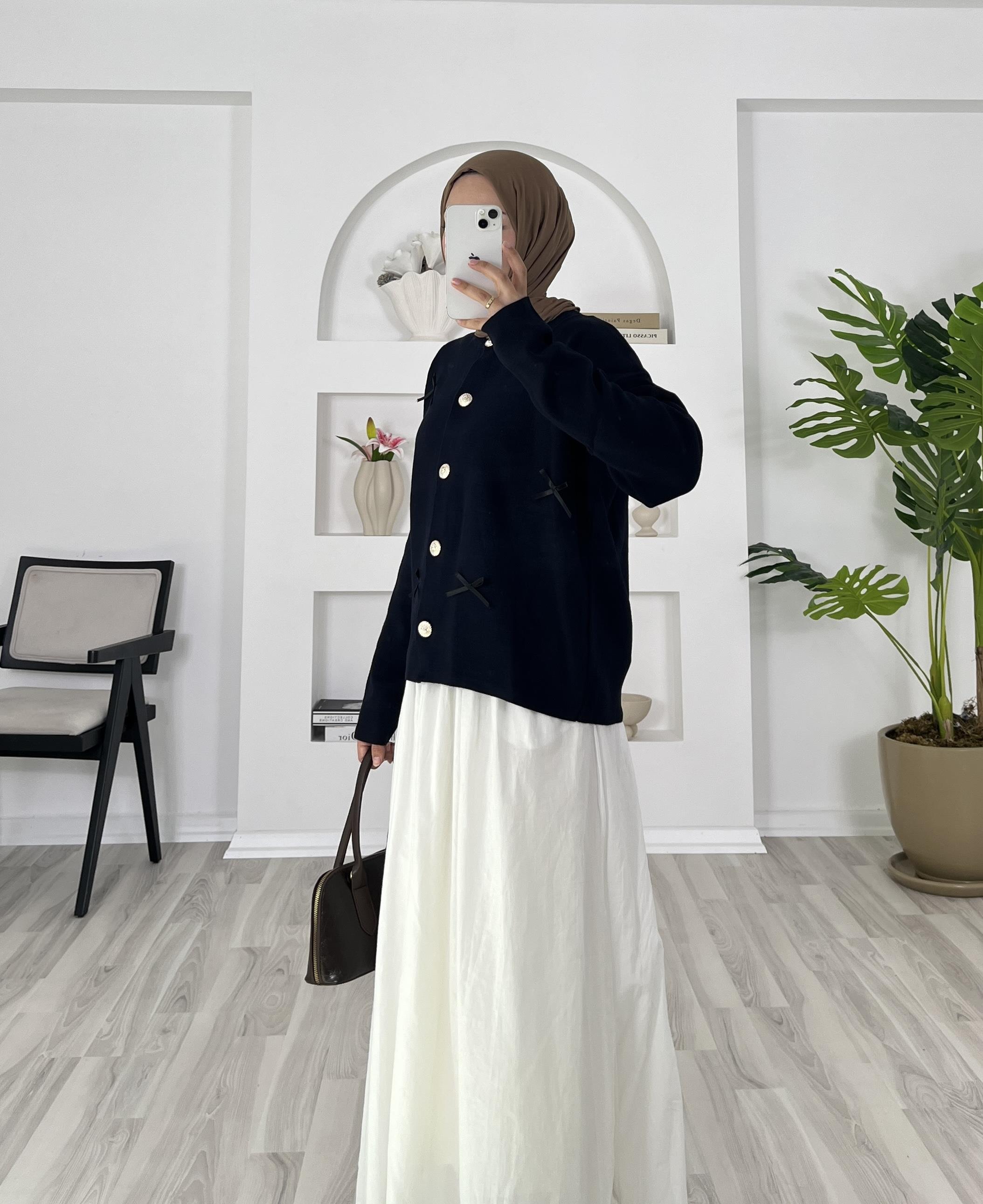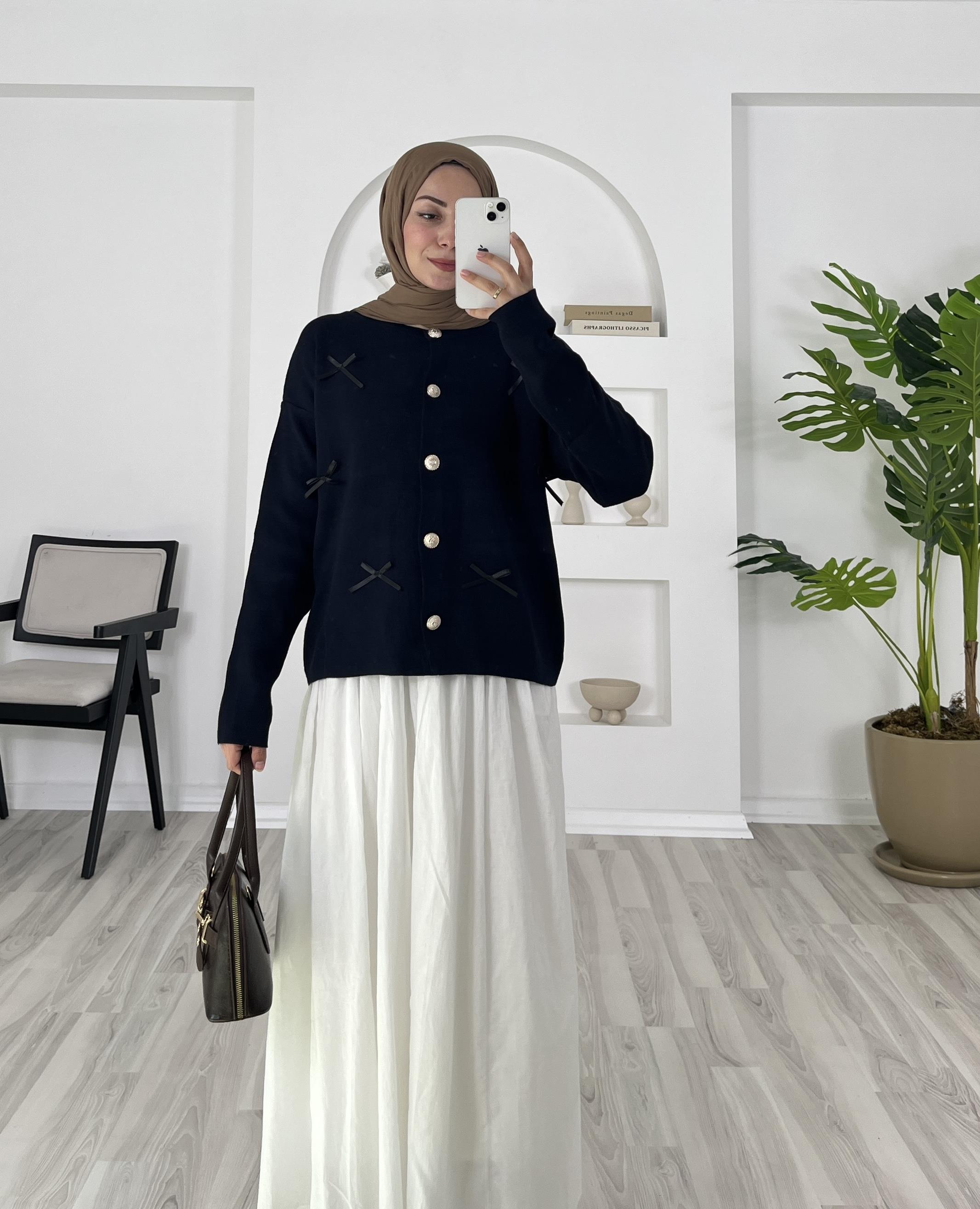 fiyonk detaylı önü dügmeli triko hırka