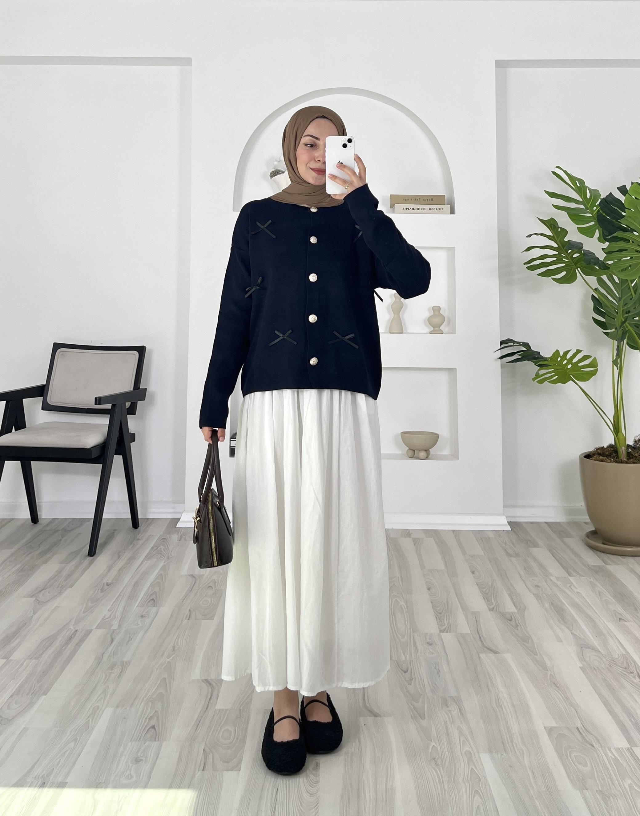 1396 - fiyonk detaylı önü dügmeli triko hırka - lacivert (1396)