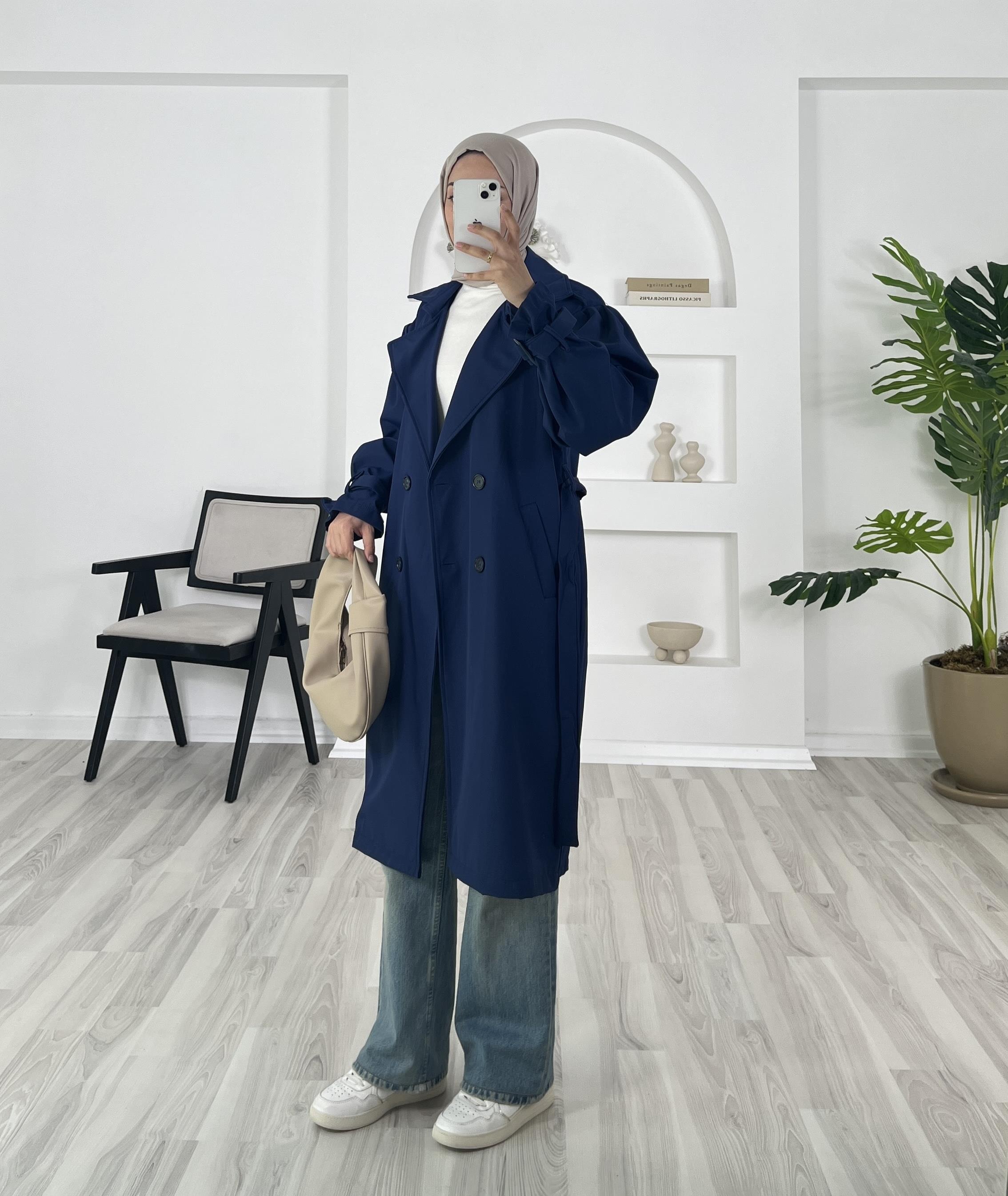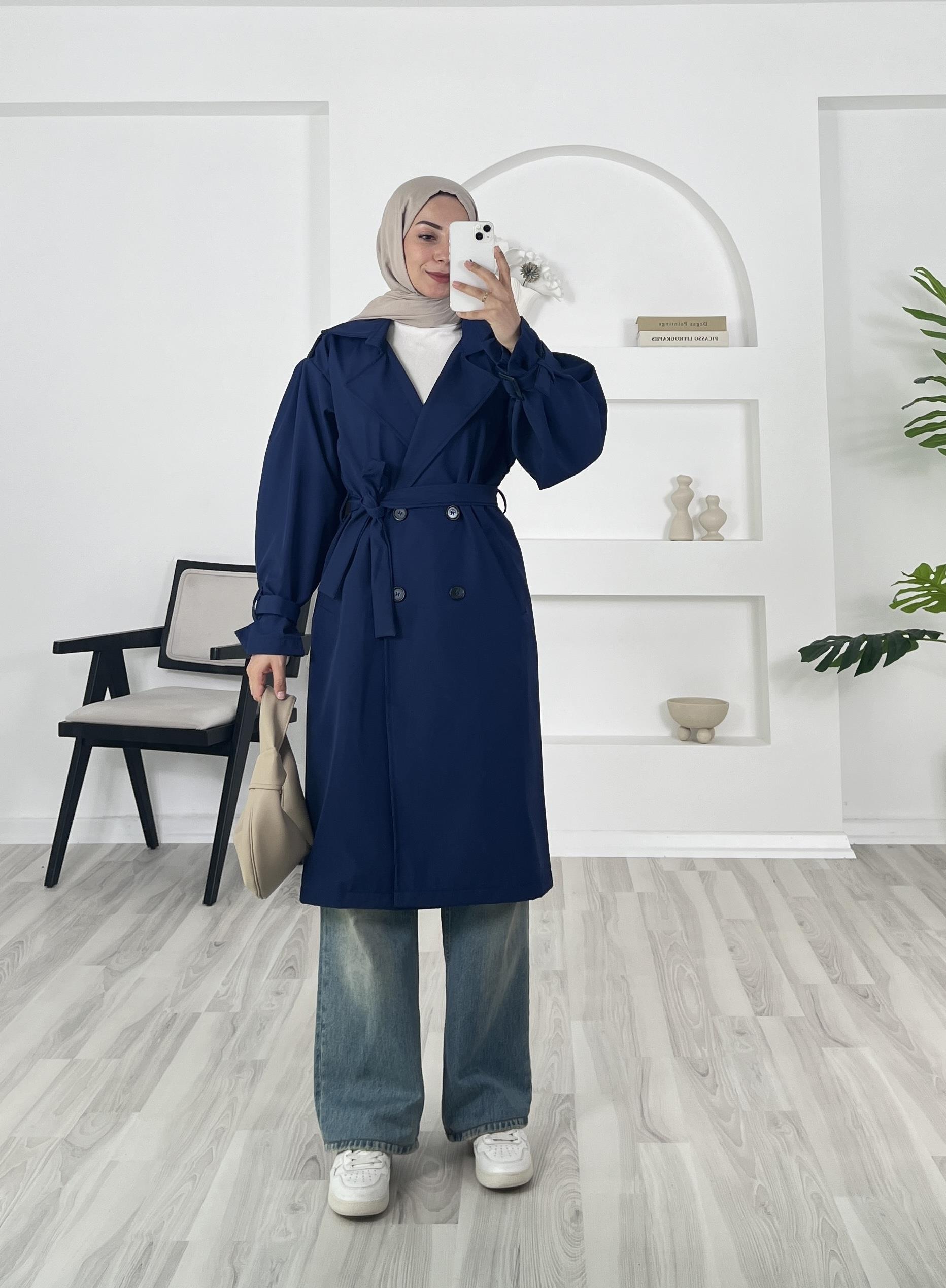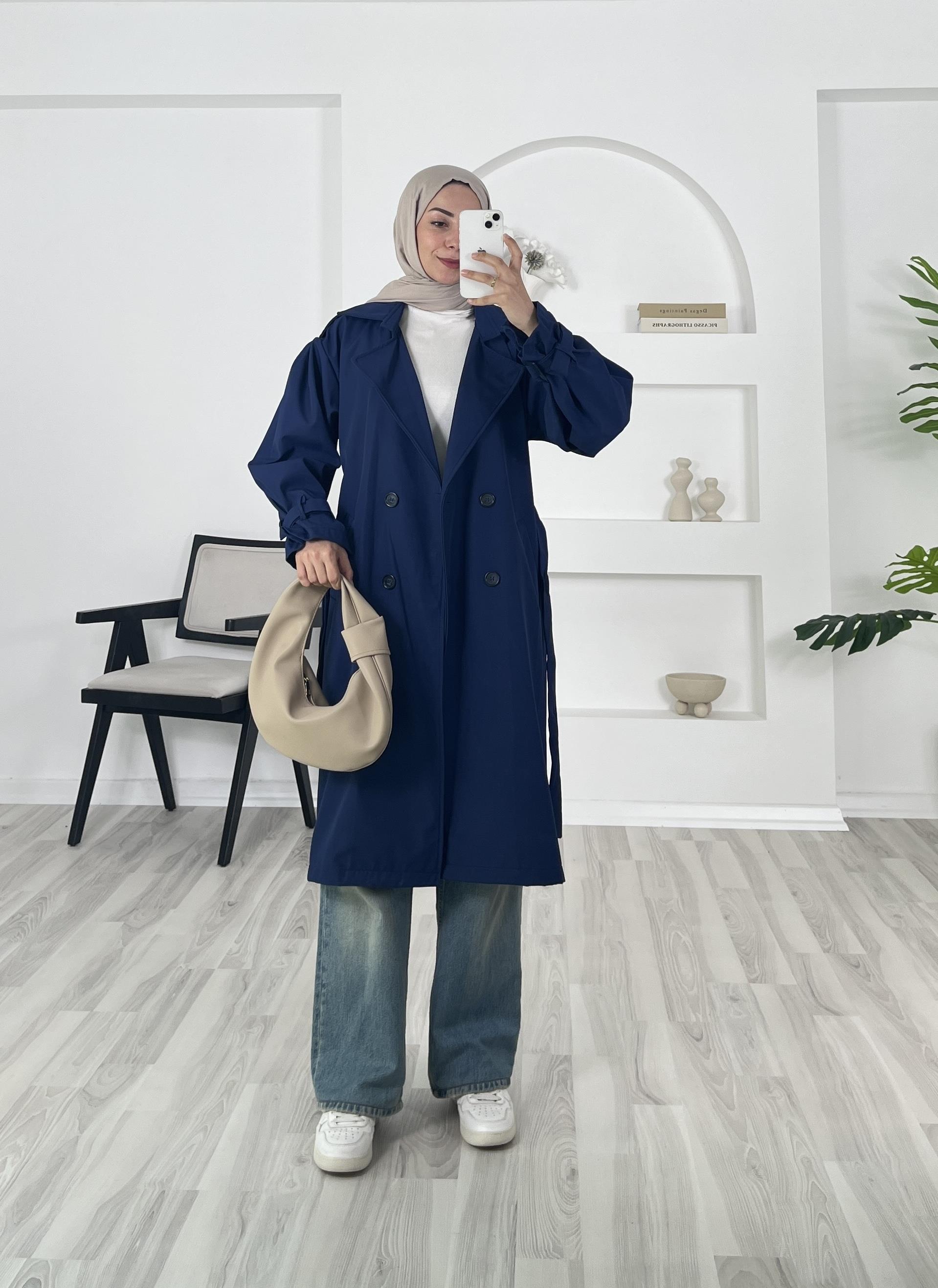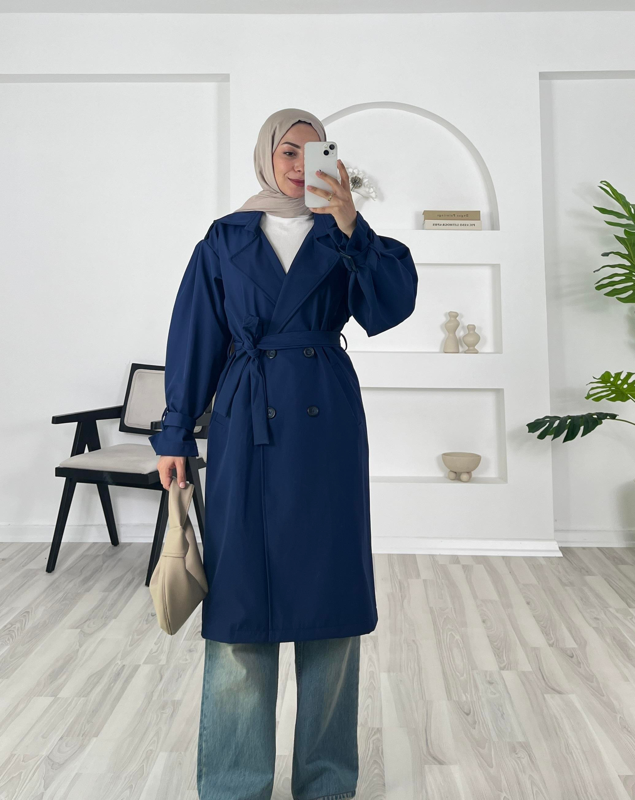 kolları kemer detaylı trenç