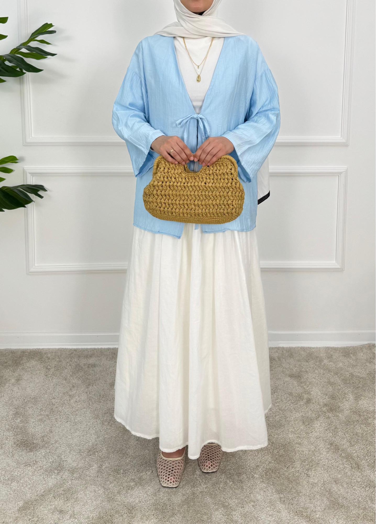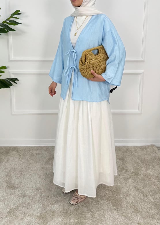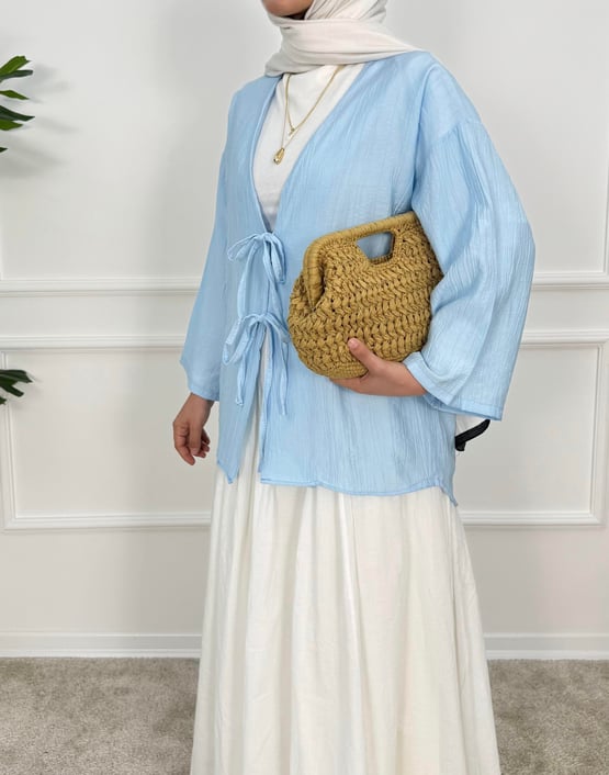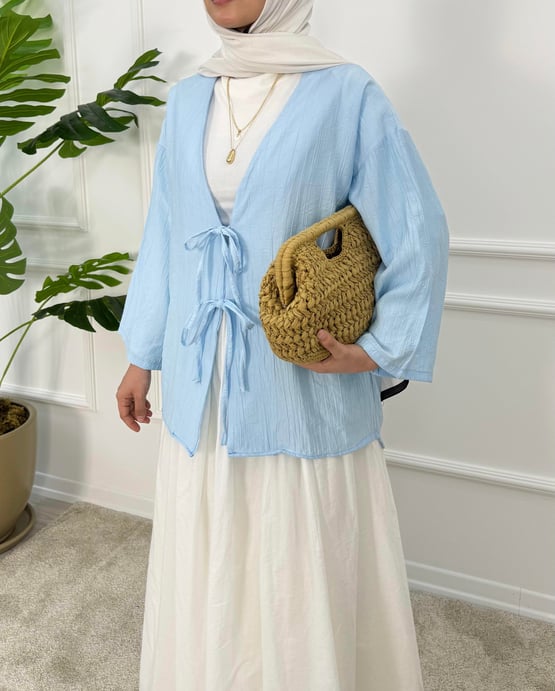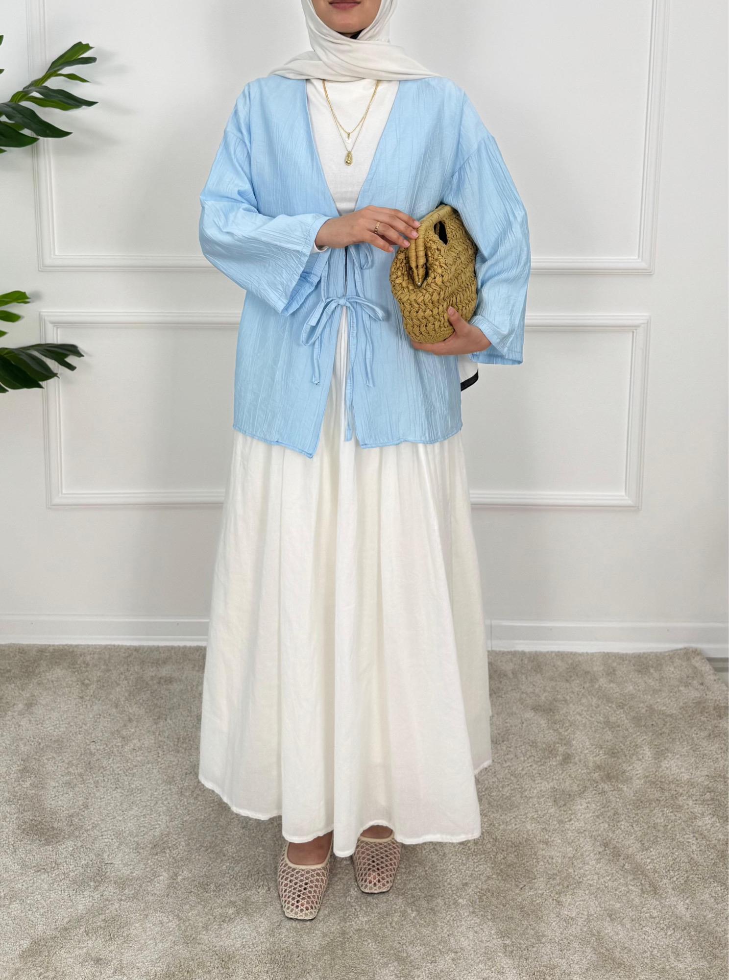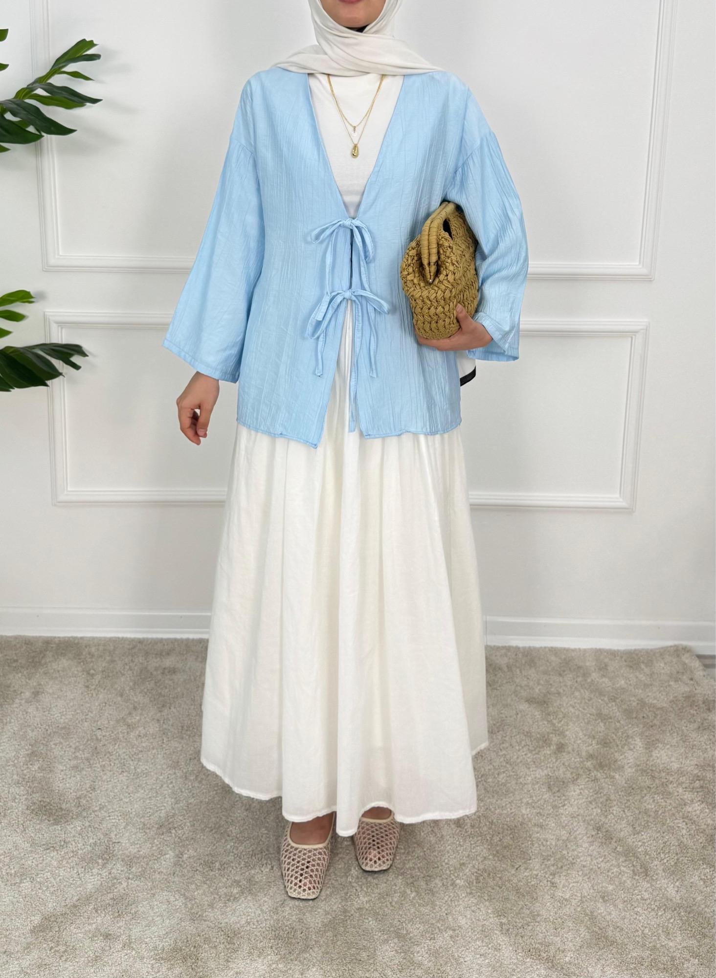 1413- çilek kumaş bağlamalı kimona -mavi (1413)