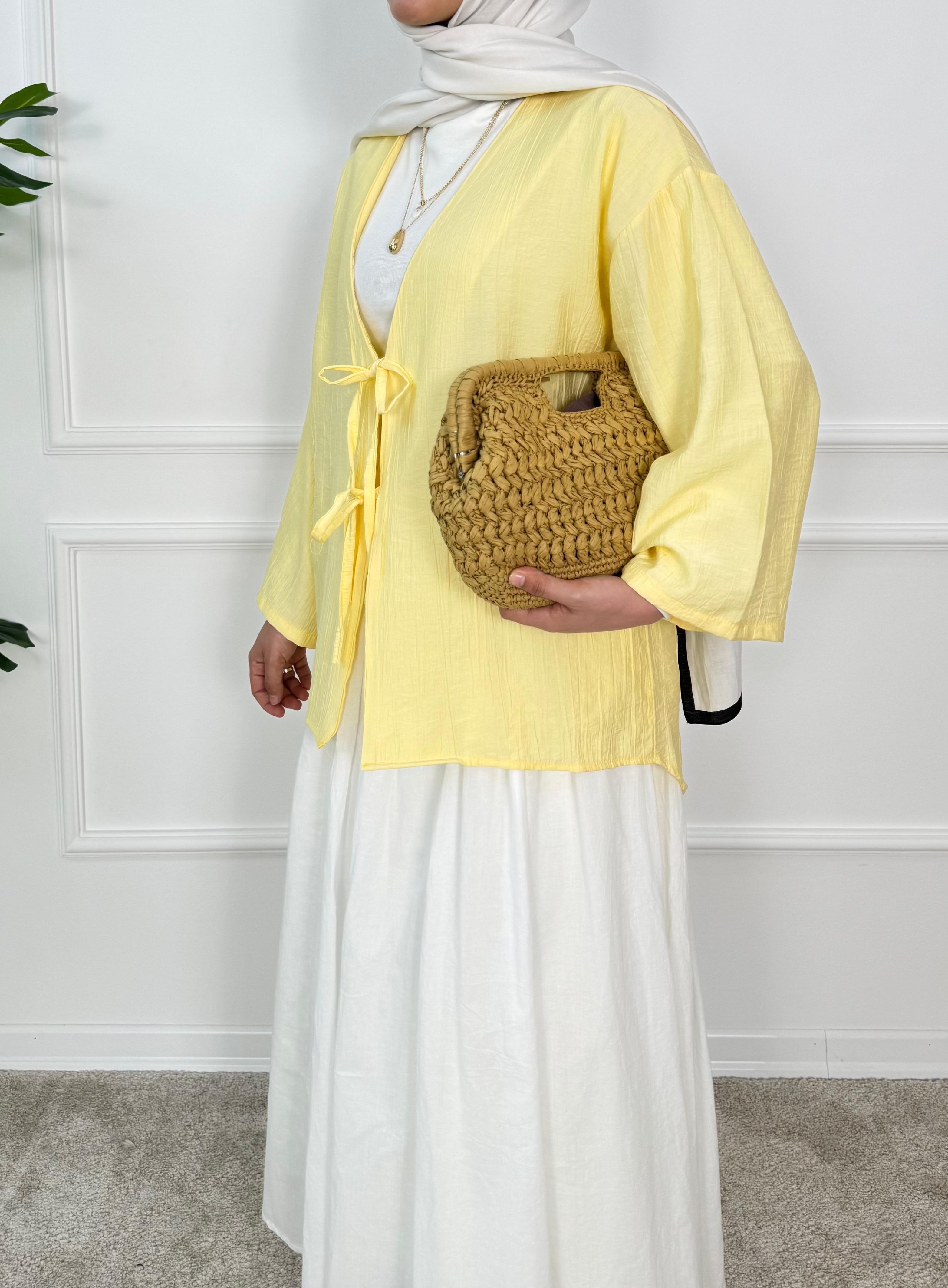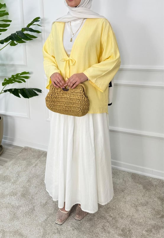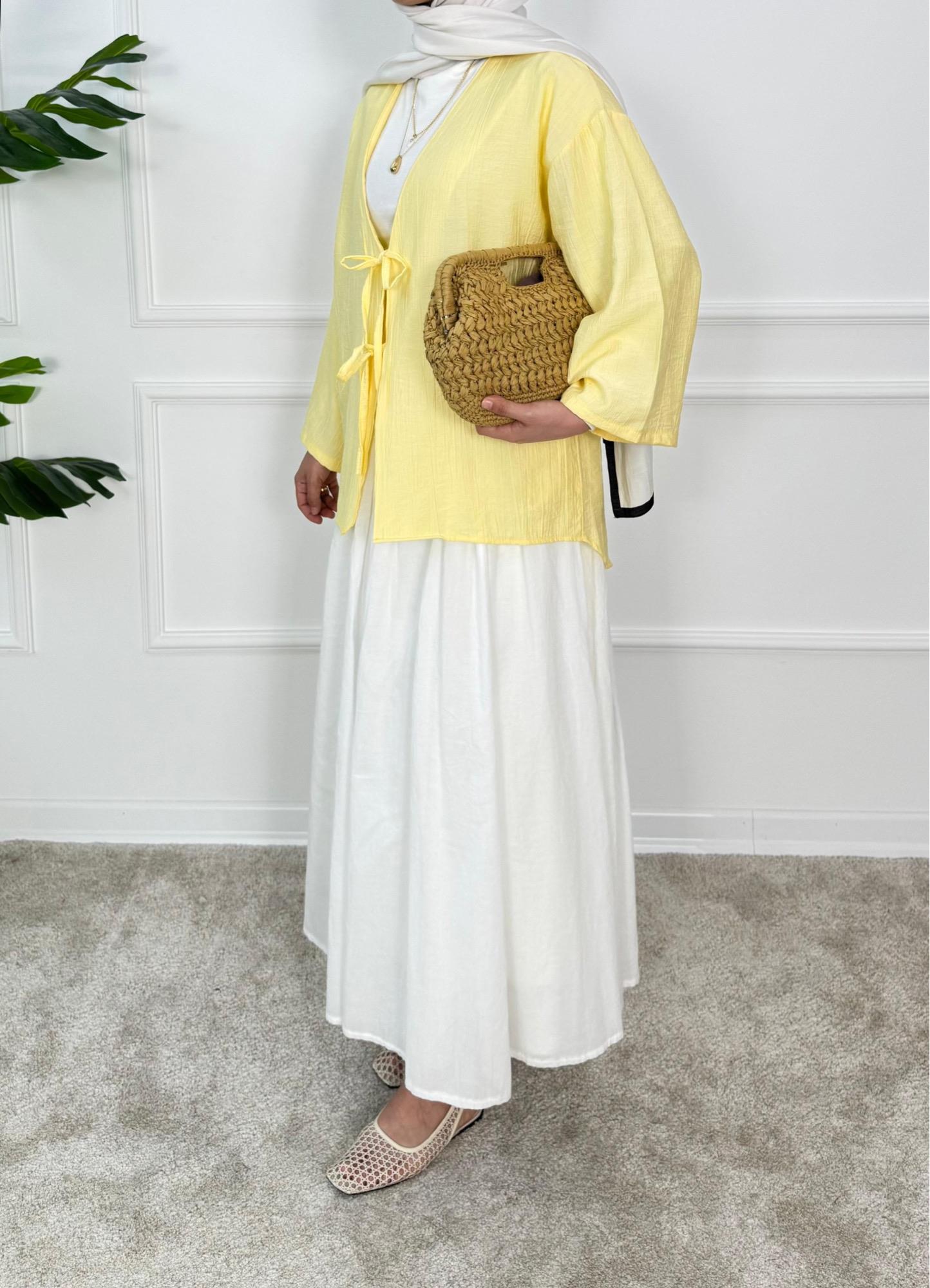 1413- çilek kumaş bağlamalı kimona -sarı (1413)