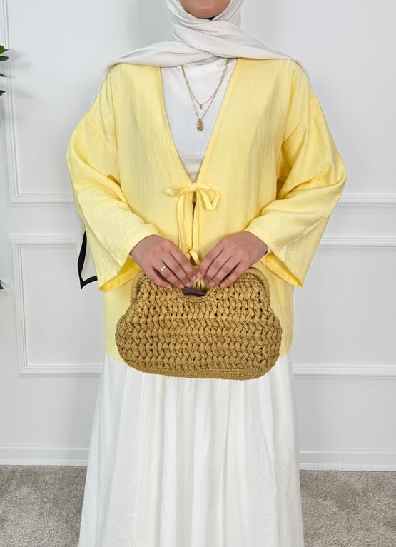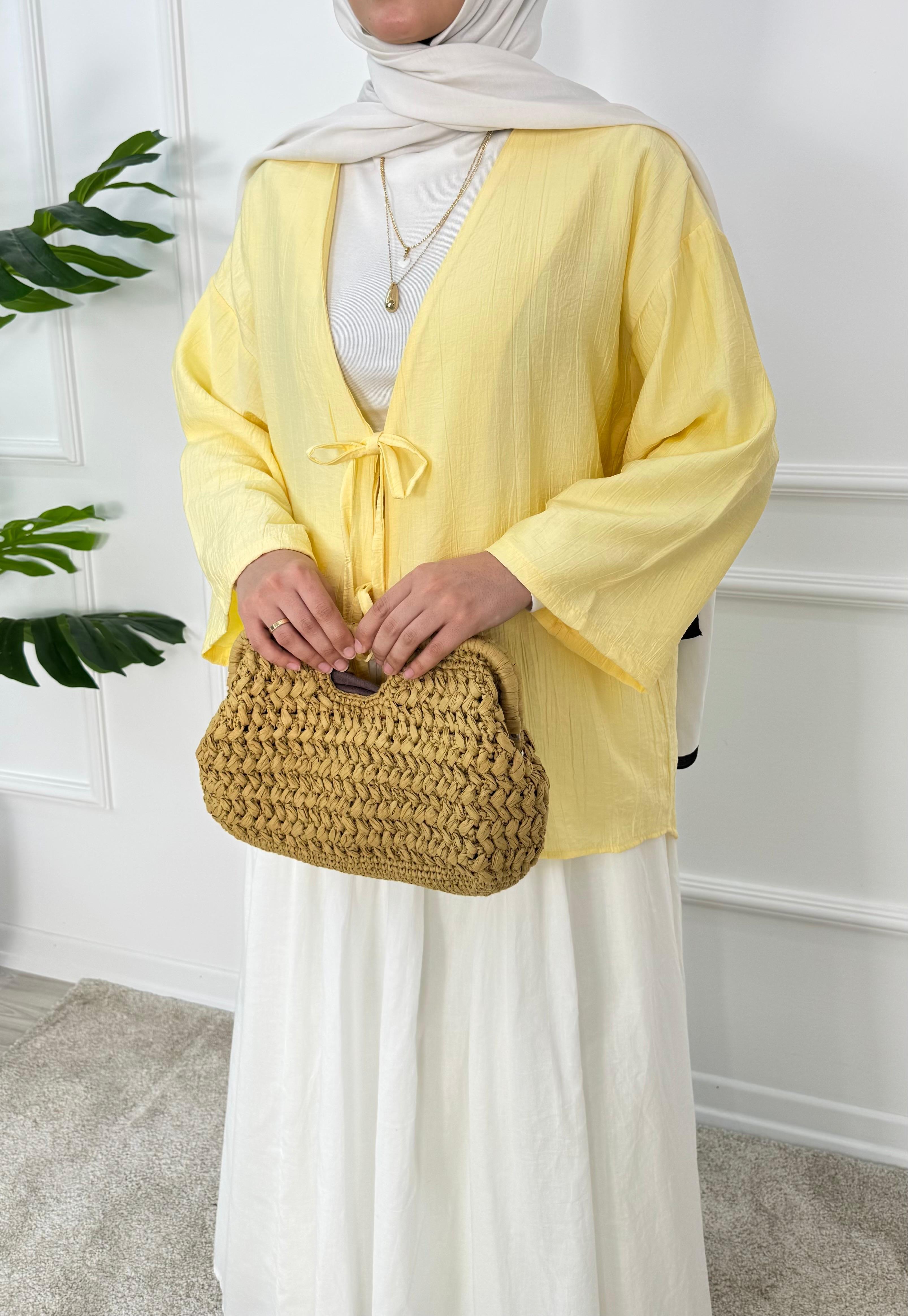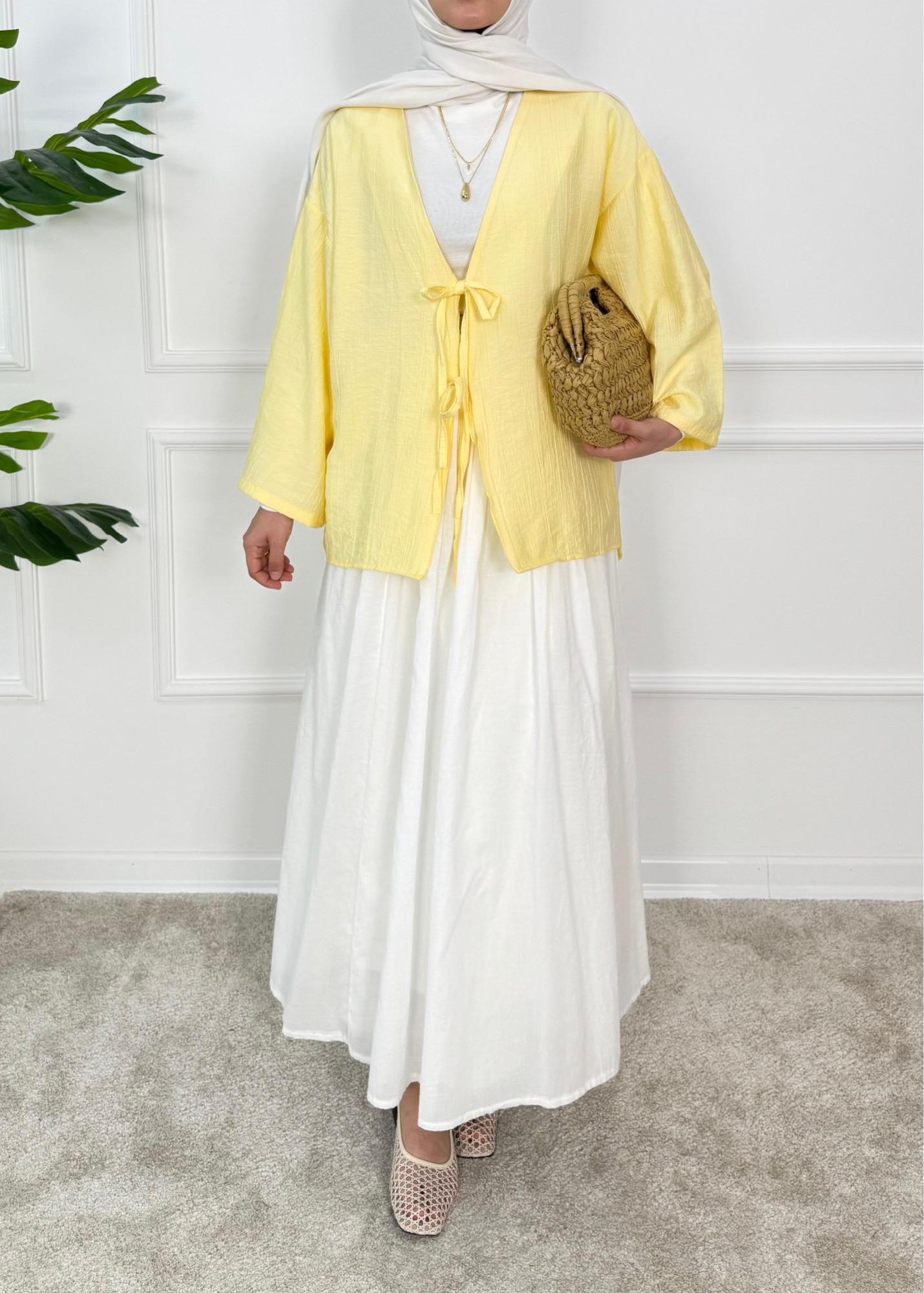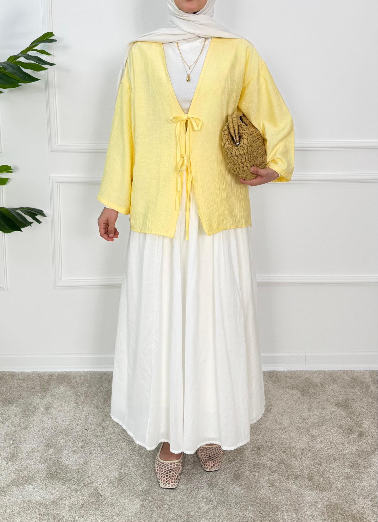 1413- çilek kumaş bağlamalı kimona -sarı (1413)